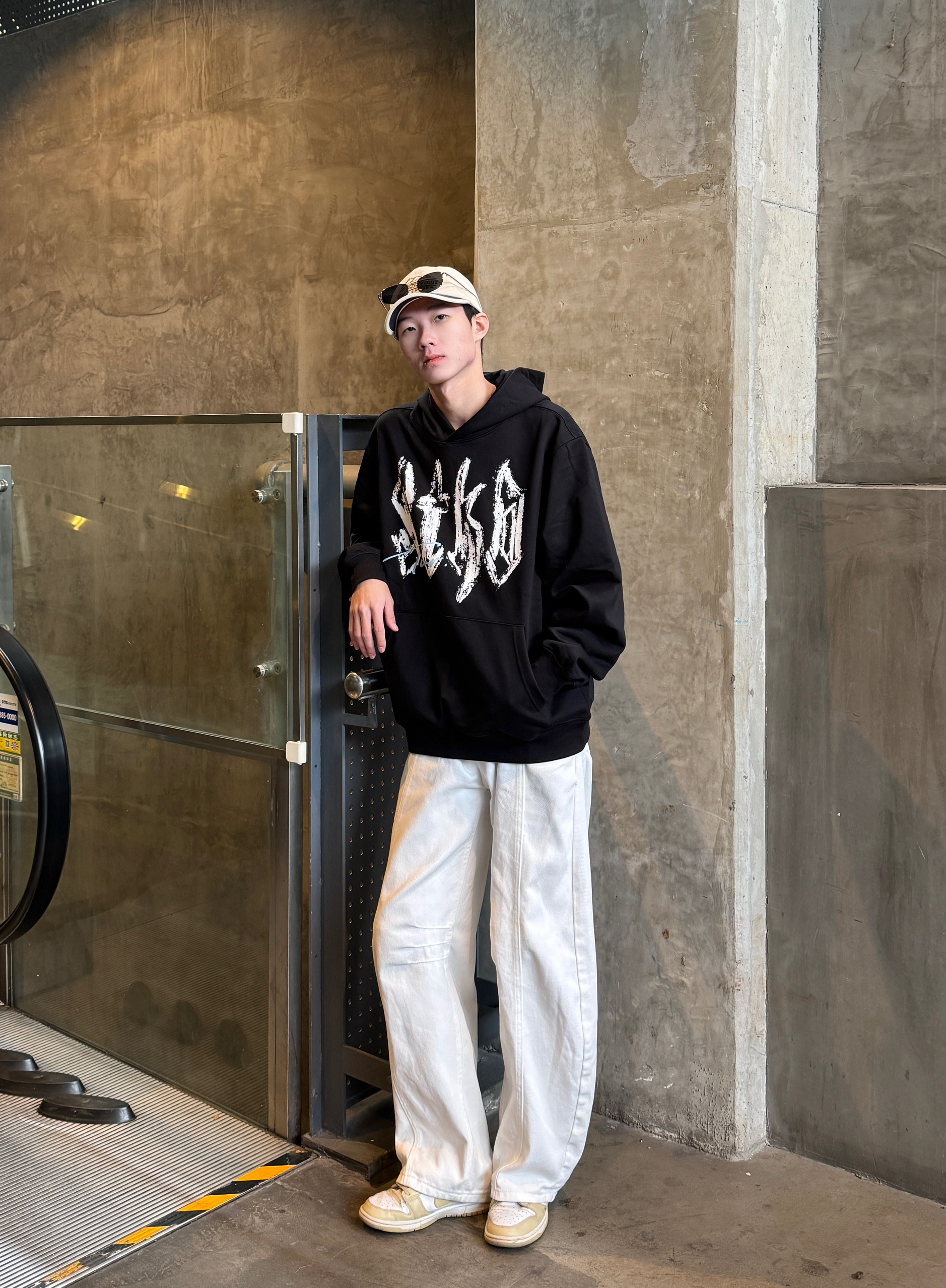这身是经典黑白配的清爽打开方式 白色棒球帽和黑色连帽卫衣形成对比 帽子一戴随性又有型🆒 下身是白色弯刀阔腿裤 流畅的剪裁让整套搭配多了几分飘逸感 整体廓形松弛但不拖沓 黑白分明,清爽又耐看~