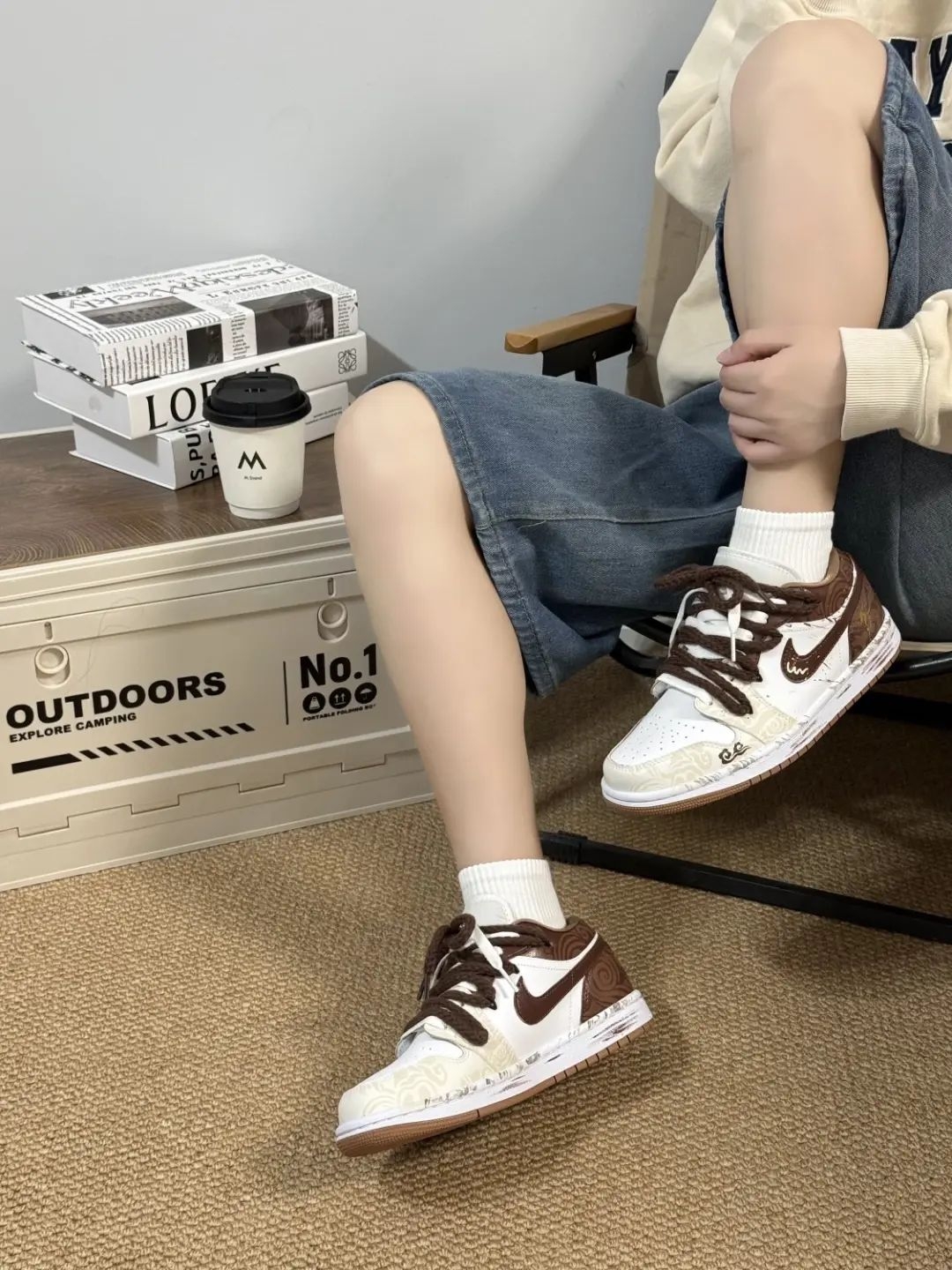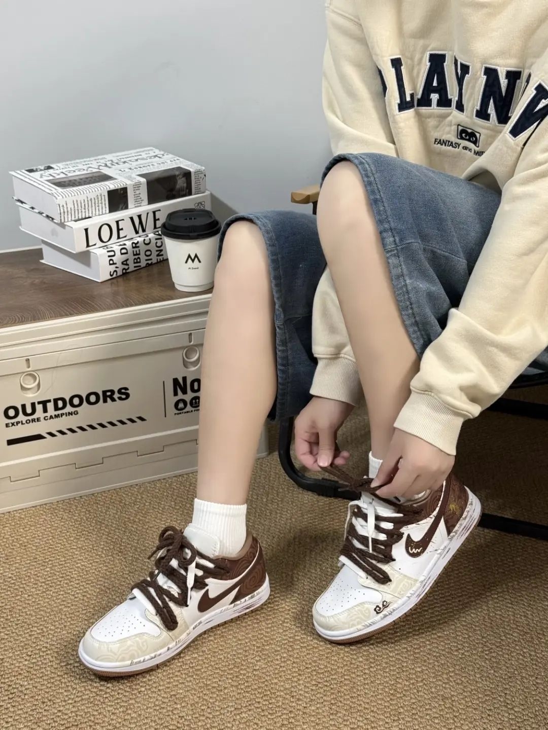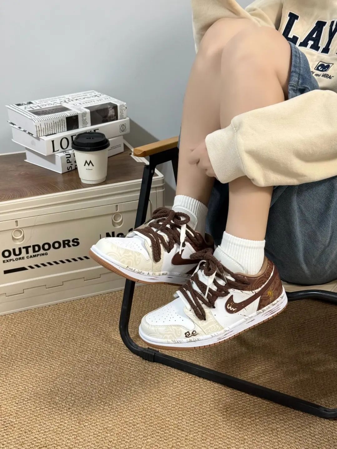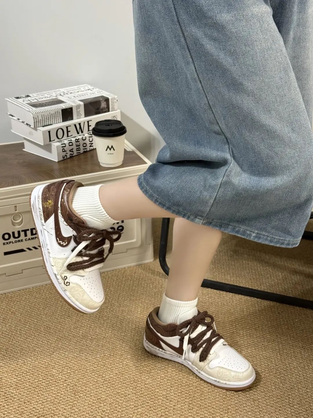 家人们,我真的会谢!新入的这双棕白定制鞋直接戳中我的心巴💘简直就是神仙配色啊 配色是温柔的奶白拼巧克力棕,还带点花纹设计,看着就很有质感,搭牛仔裤、运动裤都妥妥的👌随便穿穿都吼吼看 上脚也舒服,我感觉不磨脚,鞋底不硬,走久了也不感到脚酸🦶鞋型也很秀气,不会显脚大,对宽脚蛮有好的✌️