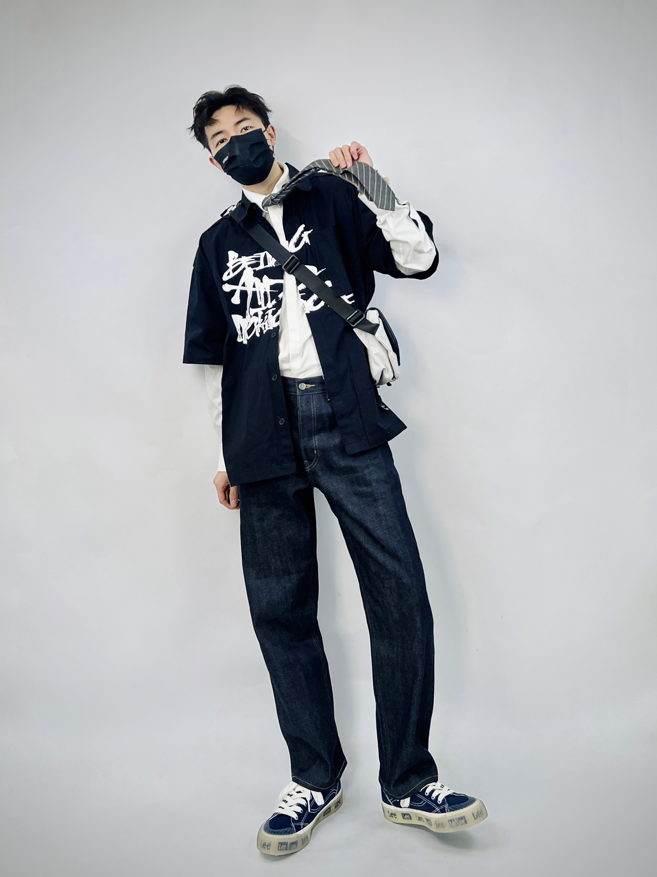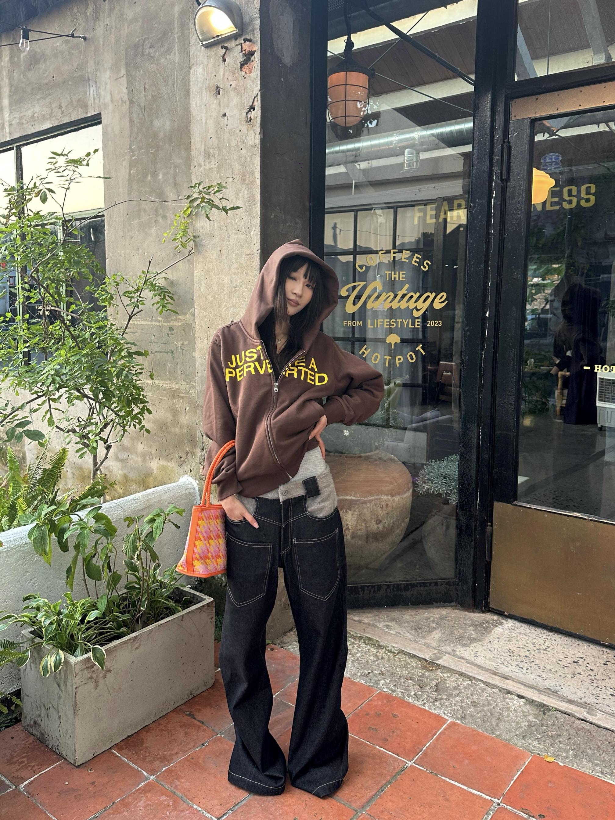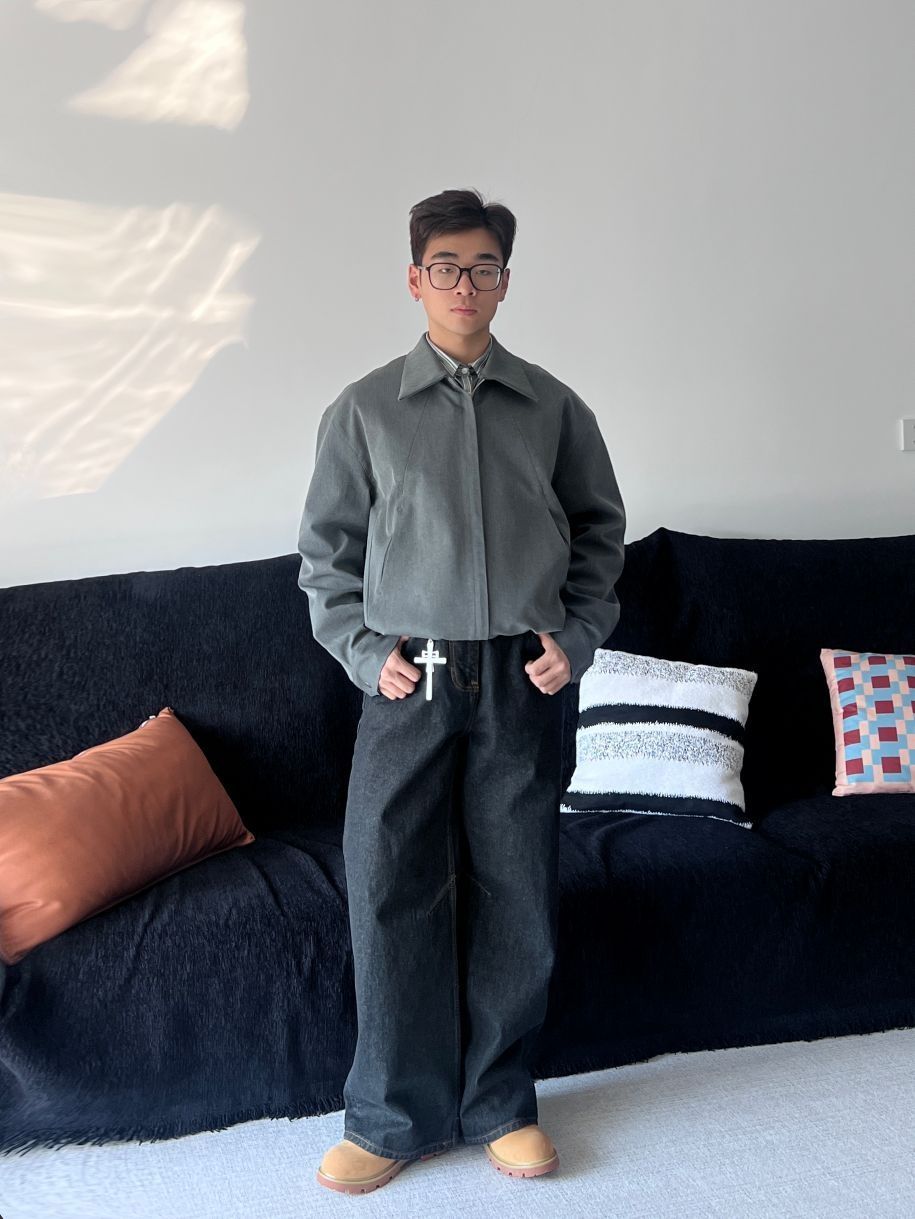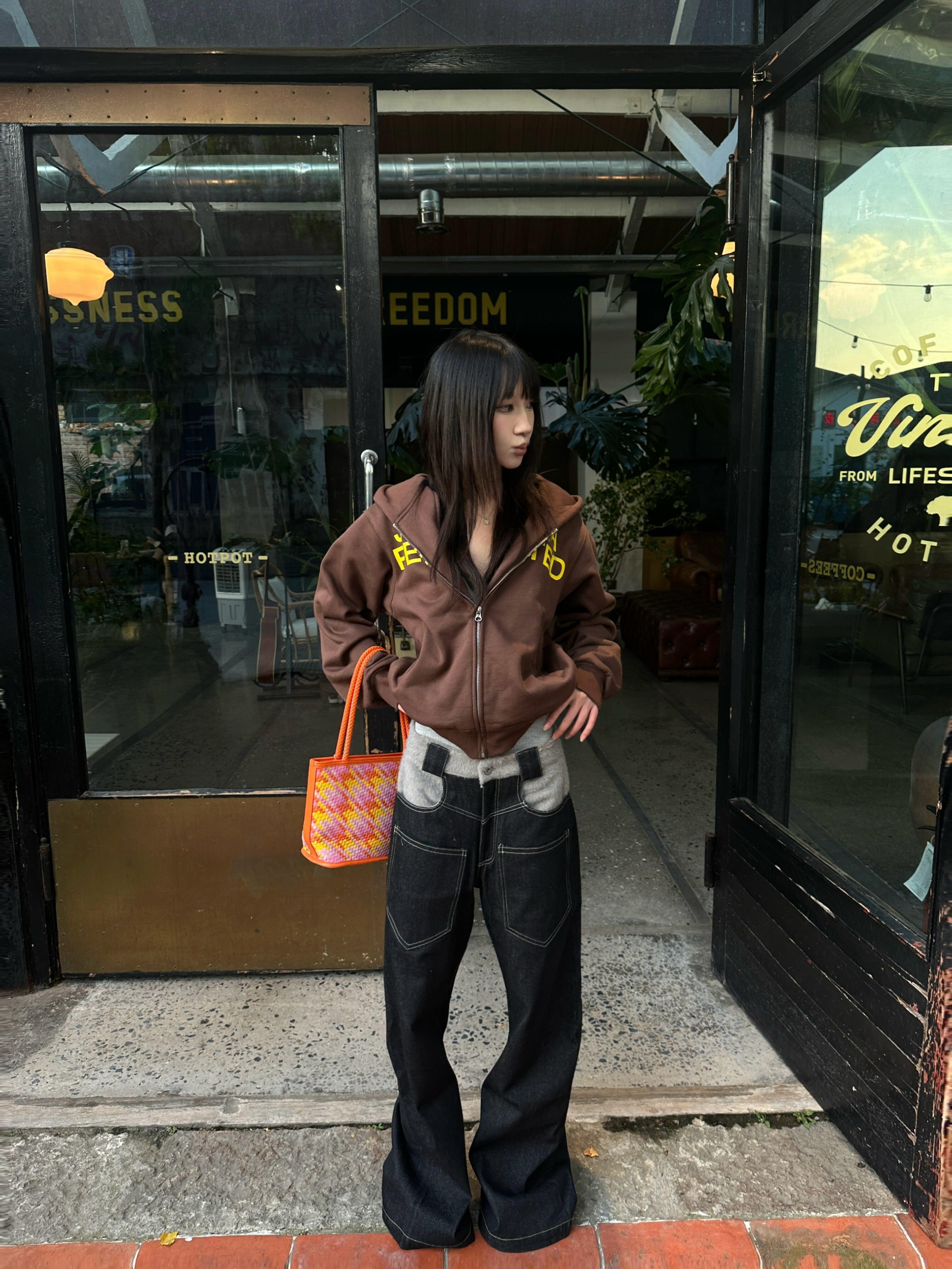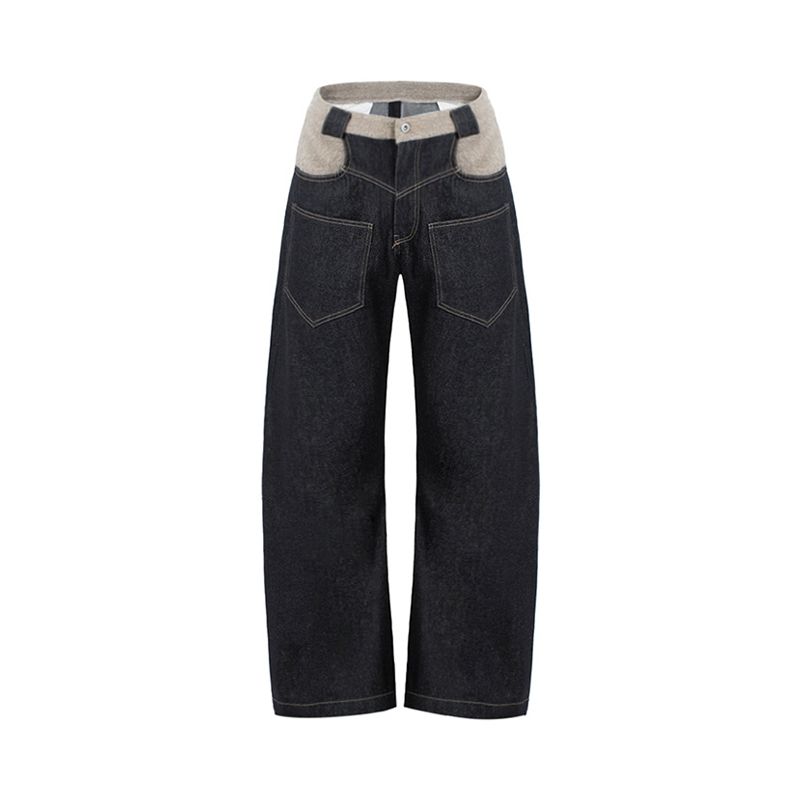 低饱和穿搭不会出错~ 浆黑牛仿羊毛拼接,非常有设计感的一款牛仔裤! 结合廓形版型真的非常的有质感 穿上真的显瘦显腿长!