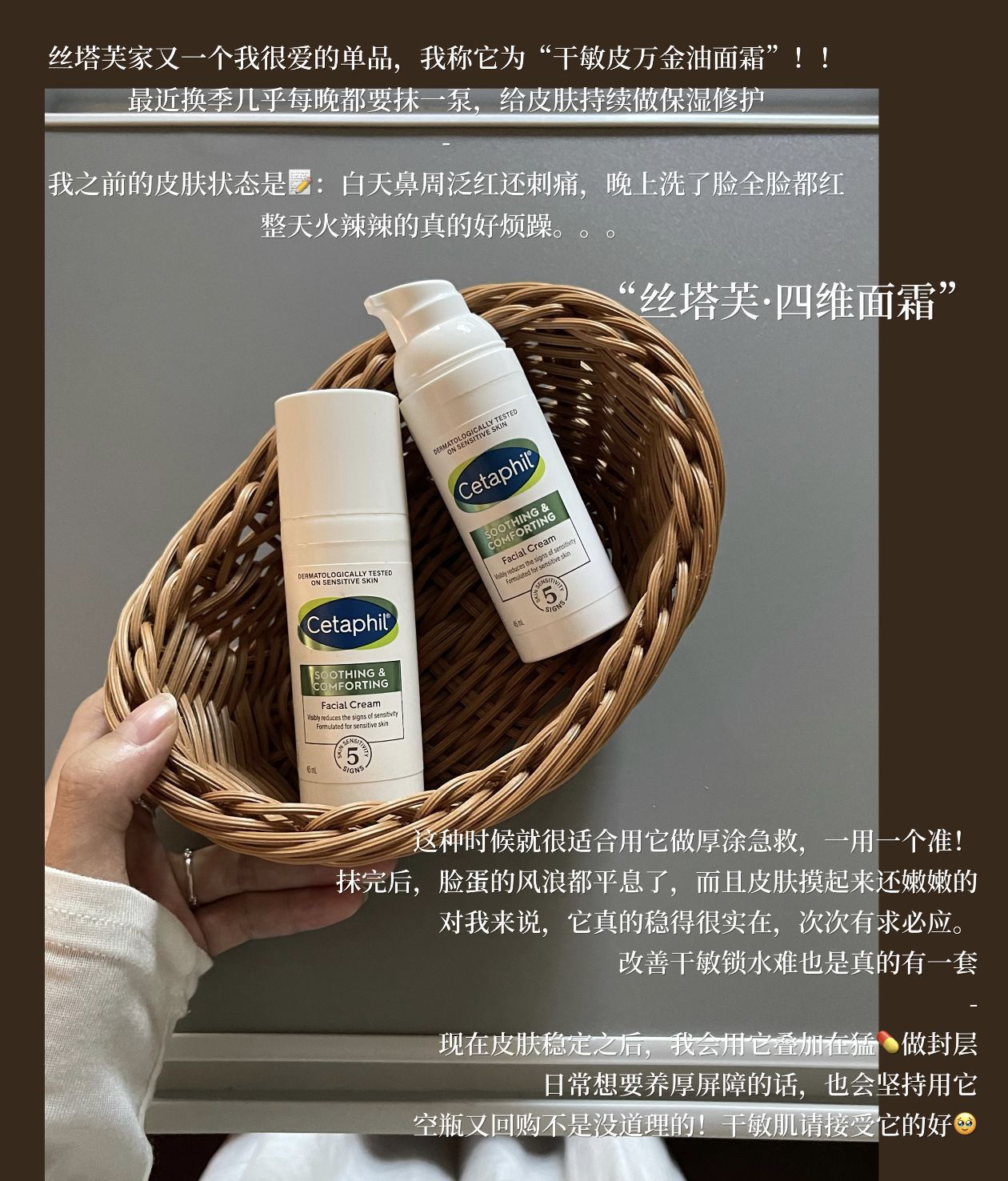 本篇笔记关联了Cetaphil/丝塔芙 四维神经酰胺积雪草面霜 舒缓保湿修护补水改善敏肌 舒缓保湿等商品,为用户提供真实的使用体验和购买参考。