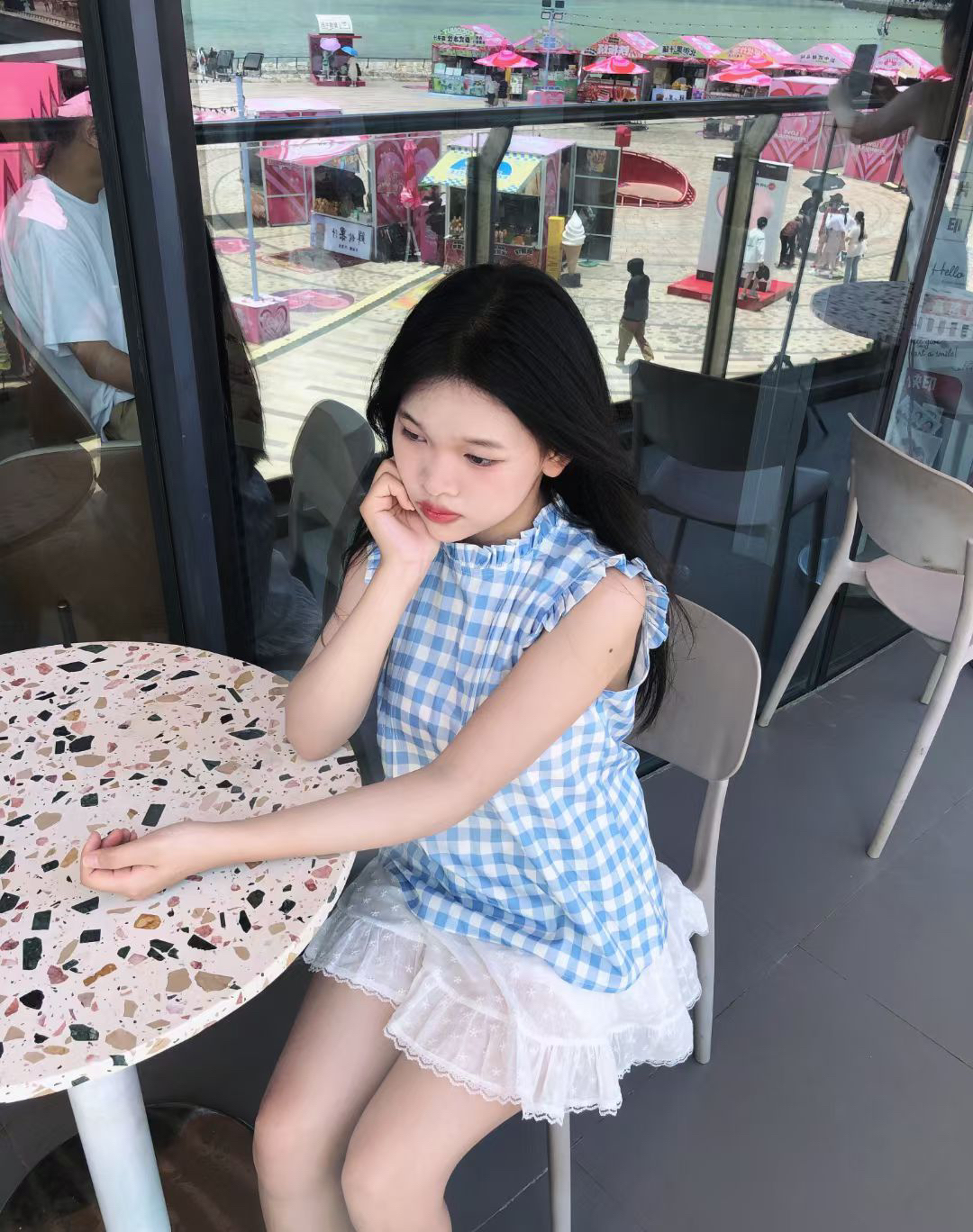 蓝白的一套搭配与海边适配度真的是太棒了~光是看穿搭都能感觉到扑面而来的大海气息^_^