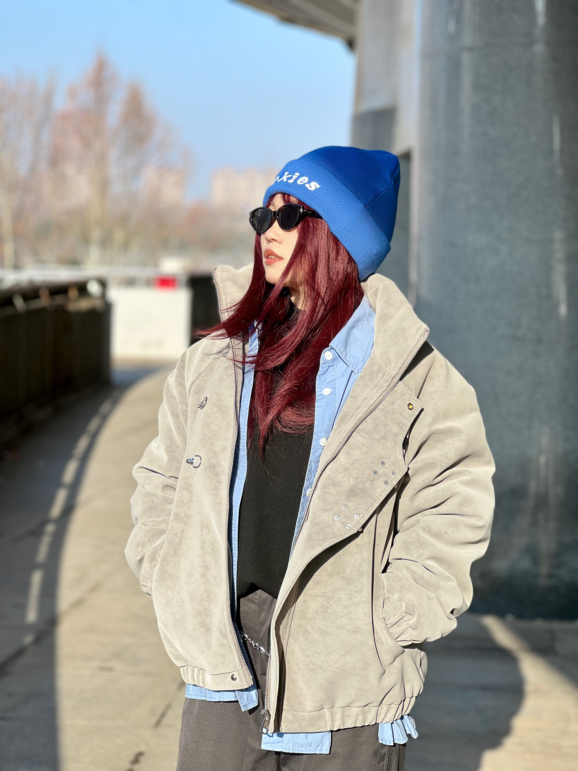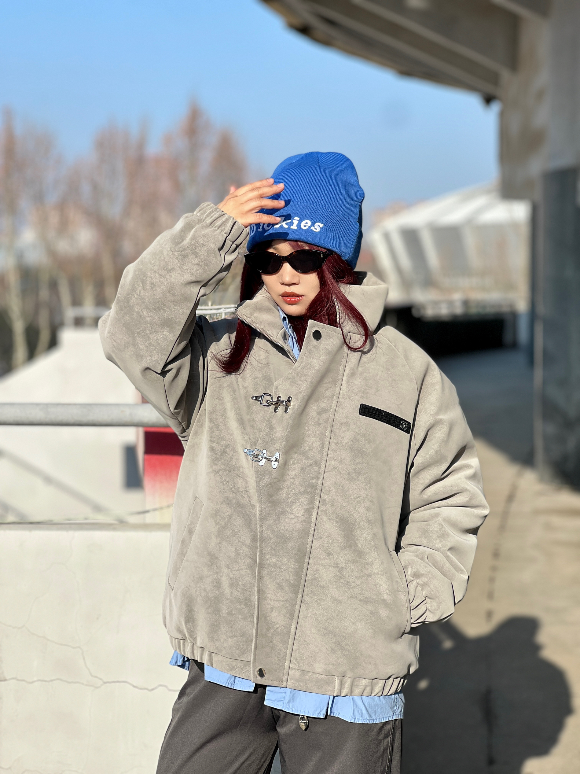 冬天想跳出路人感,酷拽女孩靠质感和色彩点睛就够了👀 Dickies蓝色冷帽撞色更吸睛,内搭选🖤黑色半高领+💙蓝色衬衫叠穿 更有层次感 外搭加棉加厚的灰色立领外套 防风又保暖☀️ 酷酷的✈️金属扣设计还藏着小细节 下装配灰色长裤 高级感与实用性直接拉满。 冷调灰与亮蓝色的碰撞,让冬日穿搭既有温度又有态度,一套搞定亮眼冬日❄️