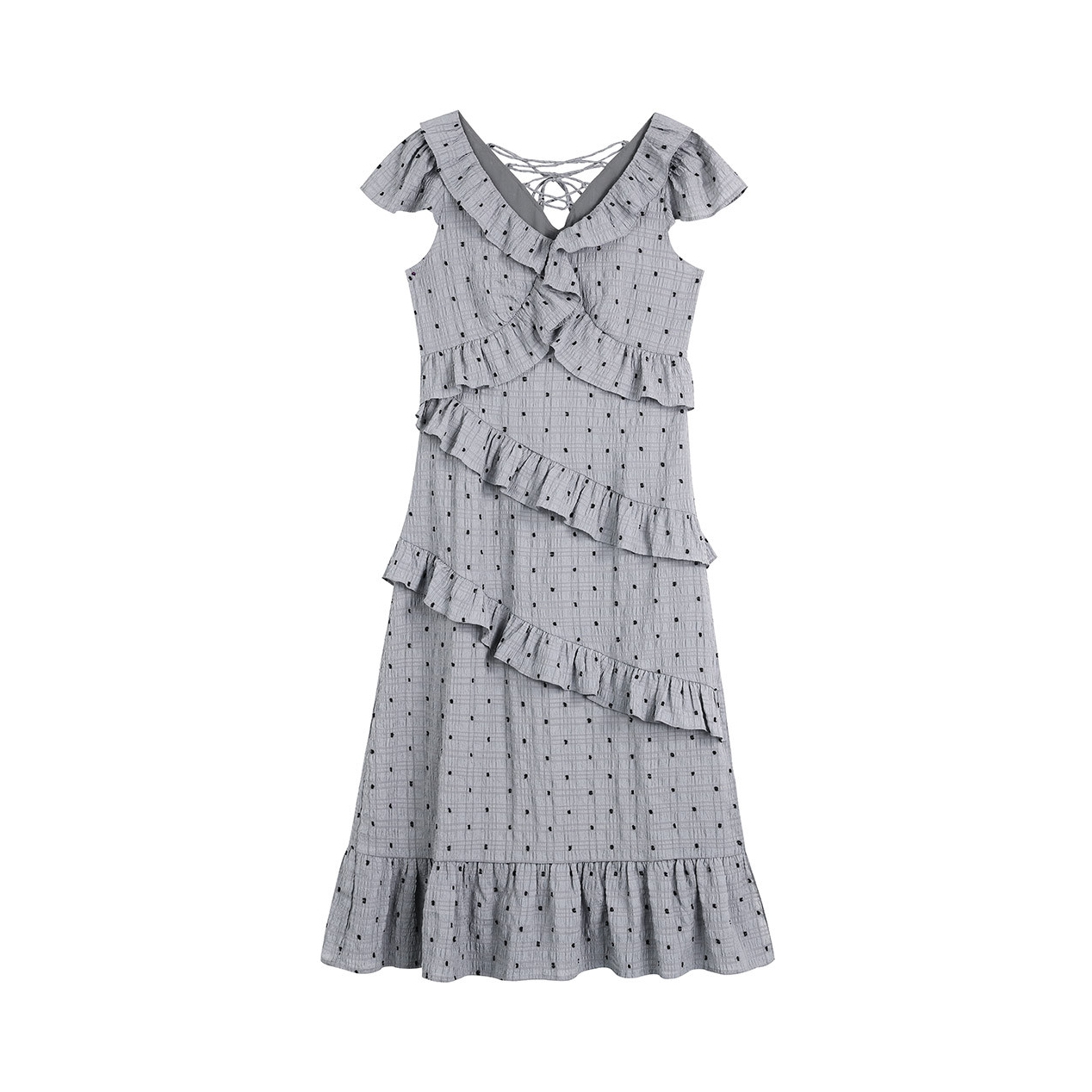 本篇笔记关联了ELFSACK 荷叶边波点显瘦度假风开叉V领飞袖连衣裙 女装 13200153 温柔灰等商品,为用户提供真实的使用体验和购买参考。