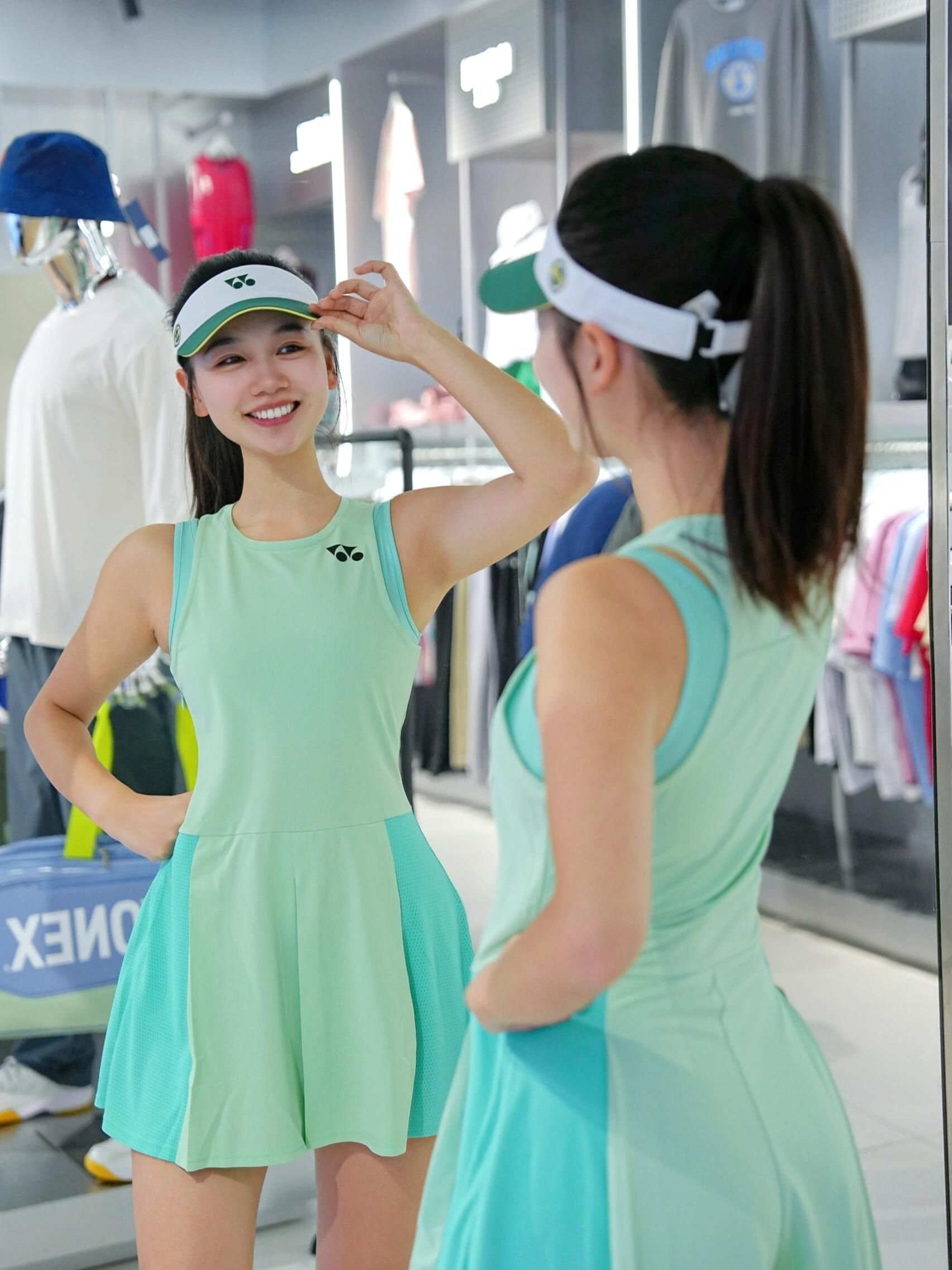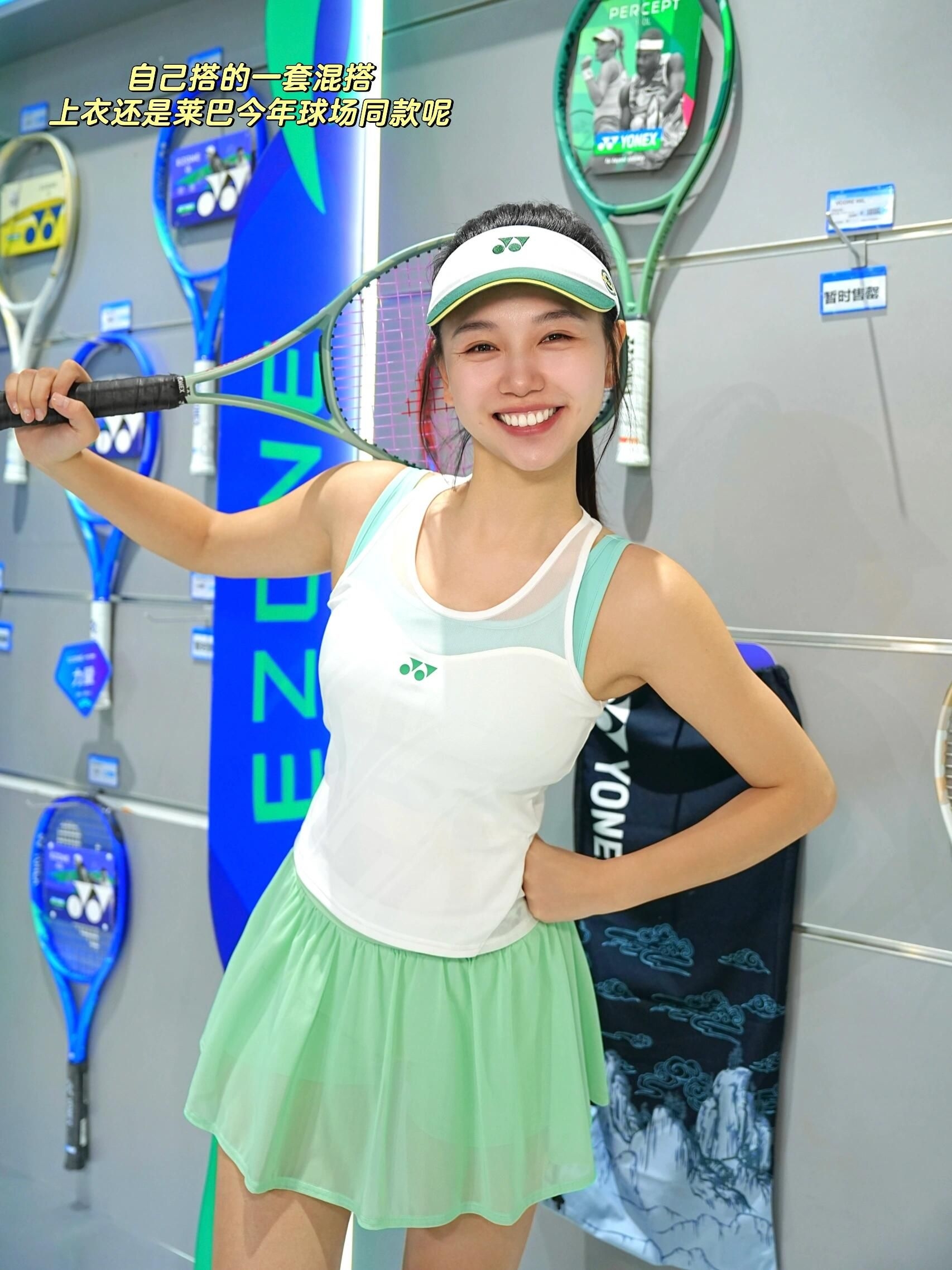 今天路过淮海中路巴黎春天,被YONEX上海旗舰店吸引进去了,就在街边的一楼,超醒目! 网球女孩简直走不动路啦~ 店里款式超级全 忍不住试了几套网球服 超喜欢这套绿色系搭配 面料太舒服,自带bra,很适合打球穿! 套个同色系外套也很搭!绿色我本命! 想想要是在球场穿这套打球,简直美死😄 试了好几套😎没忍住直接拿下😉 换上新装,拿着新拍没忍住在店里的互动装置上挥了几发! 结账的时候,店员说正好...