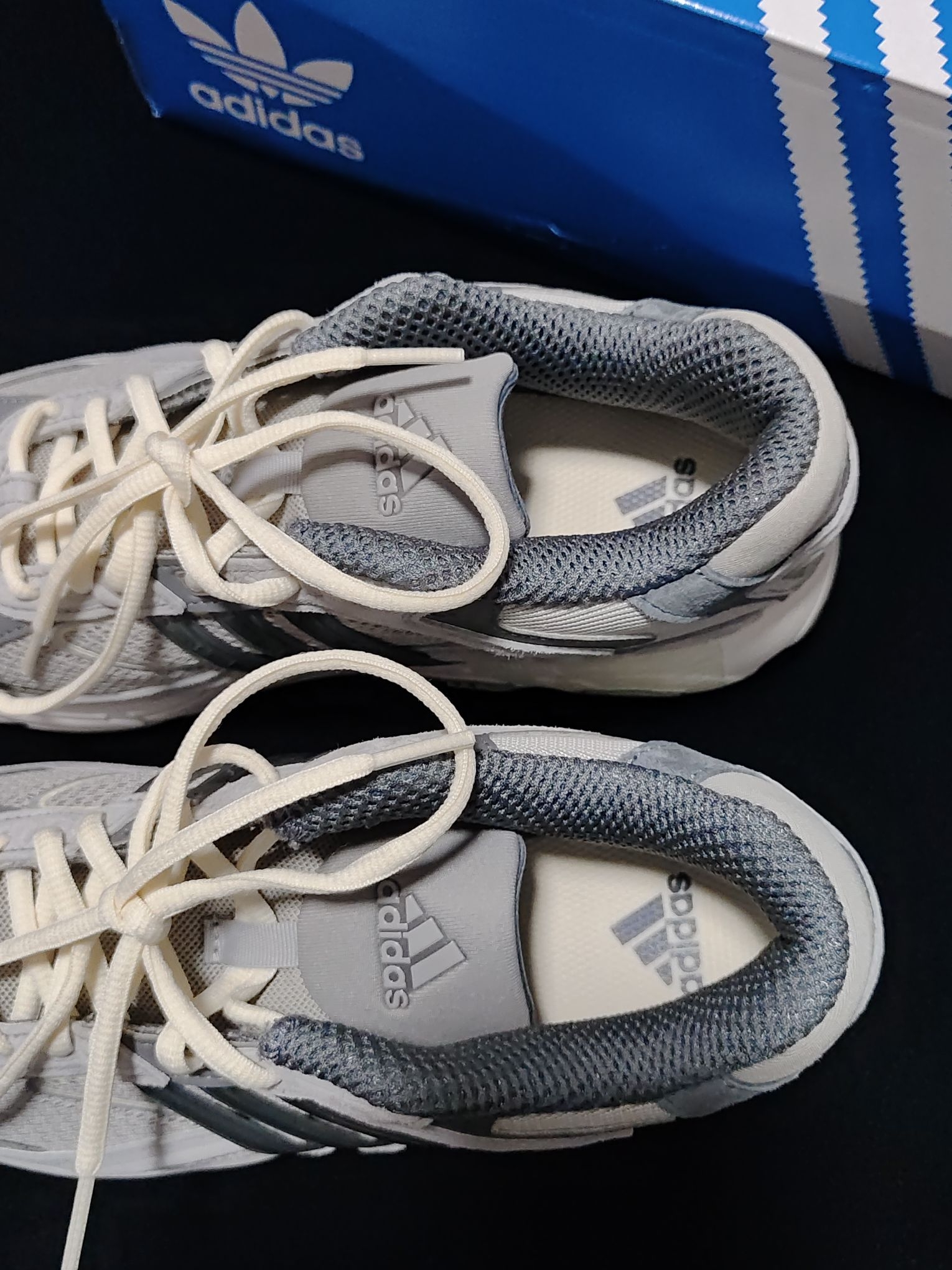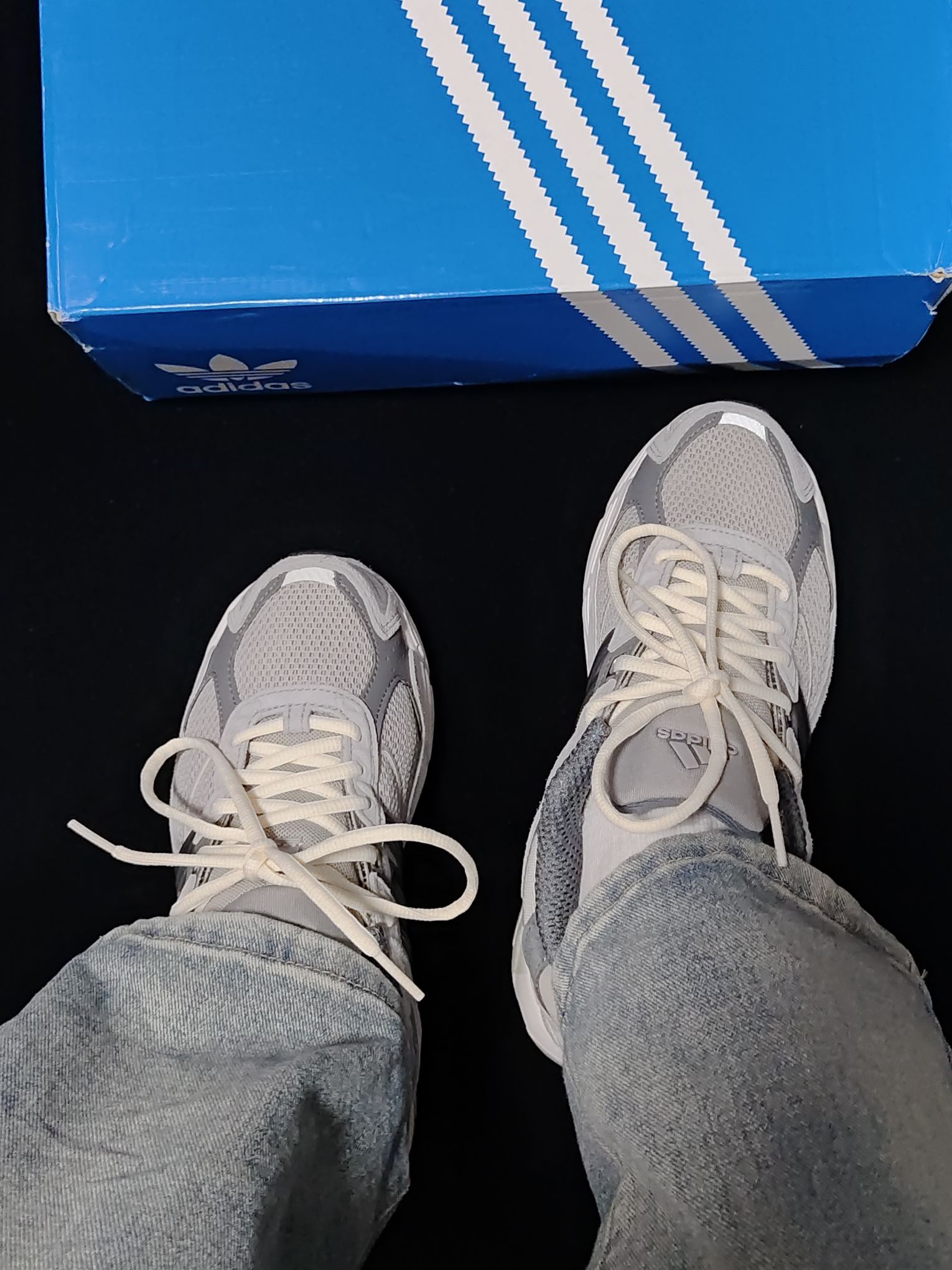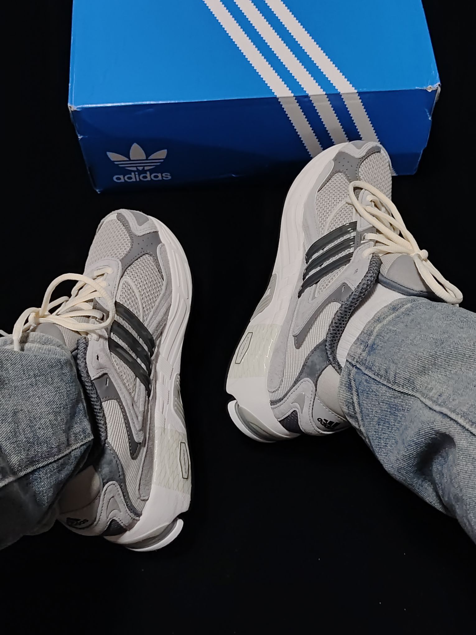 这双Adidas复古老爹鞋真的挺百搭的,第一眼就被他的颜值吸引了。我搭了一条宽松牛仔裤和一件T恤就出门了,我感觉还挺吸睛的,也挺百搭的!穿着逛了一会街,个人感觉它的脚感还是挺好的,而且码数也很合适!