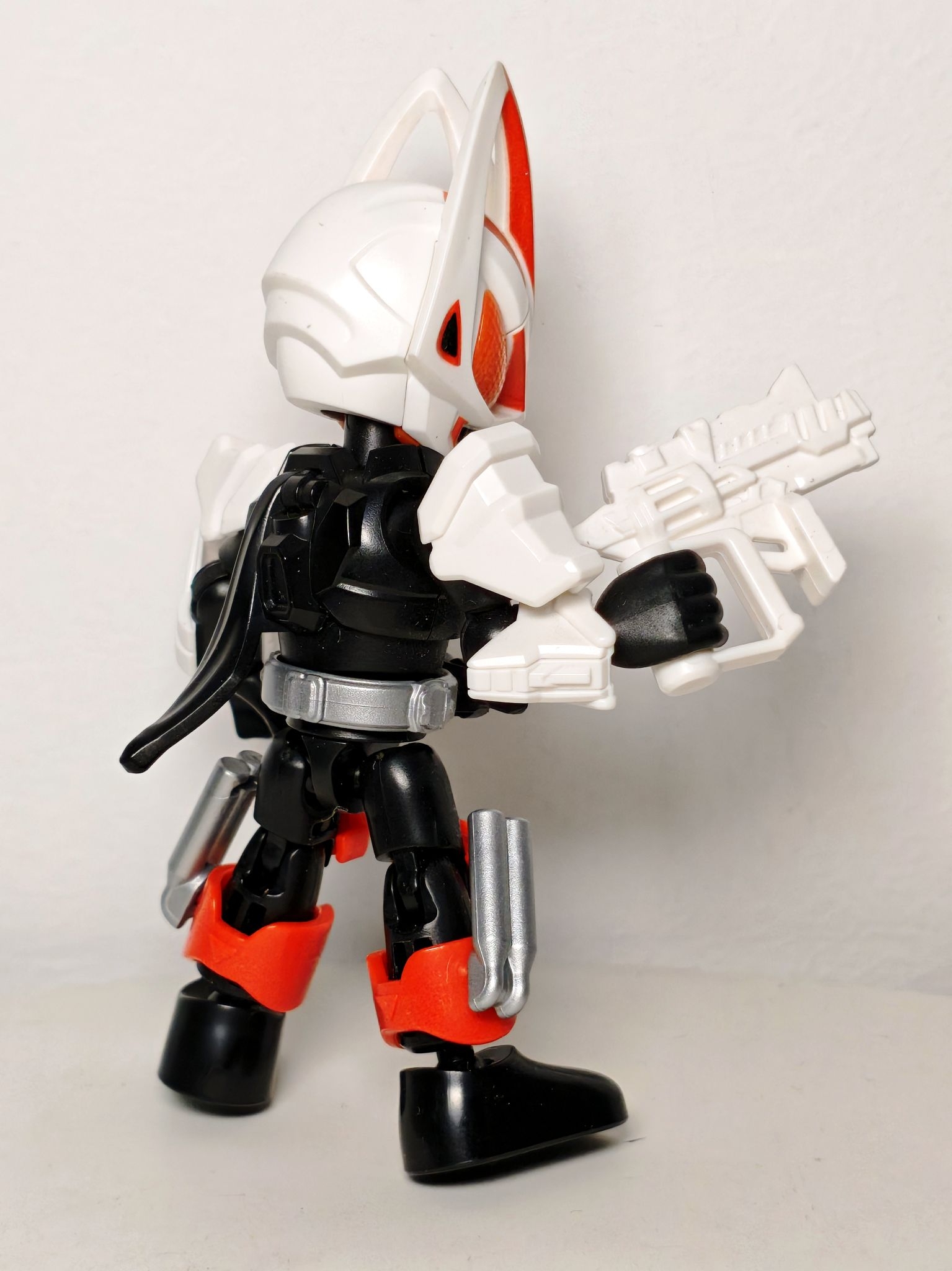 谁懂啊!! 颜值担当的马格南推进器形态也太帅了~ 白红配色撞得刚好,后背飘带和双带扣细节拉 满,复眼还是透明小豆豆设计,摆个必杀姿势, 瞬间脑补“接下来就是高光时刻”的台词!