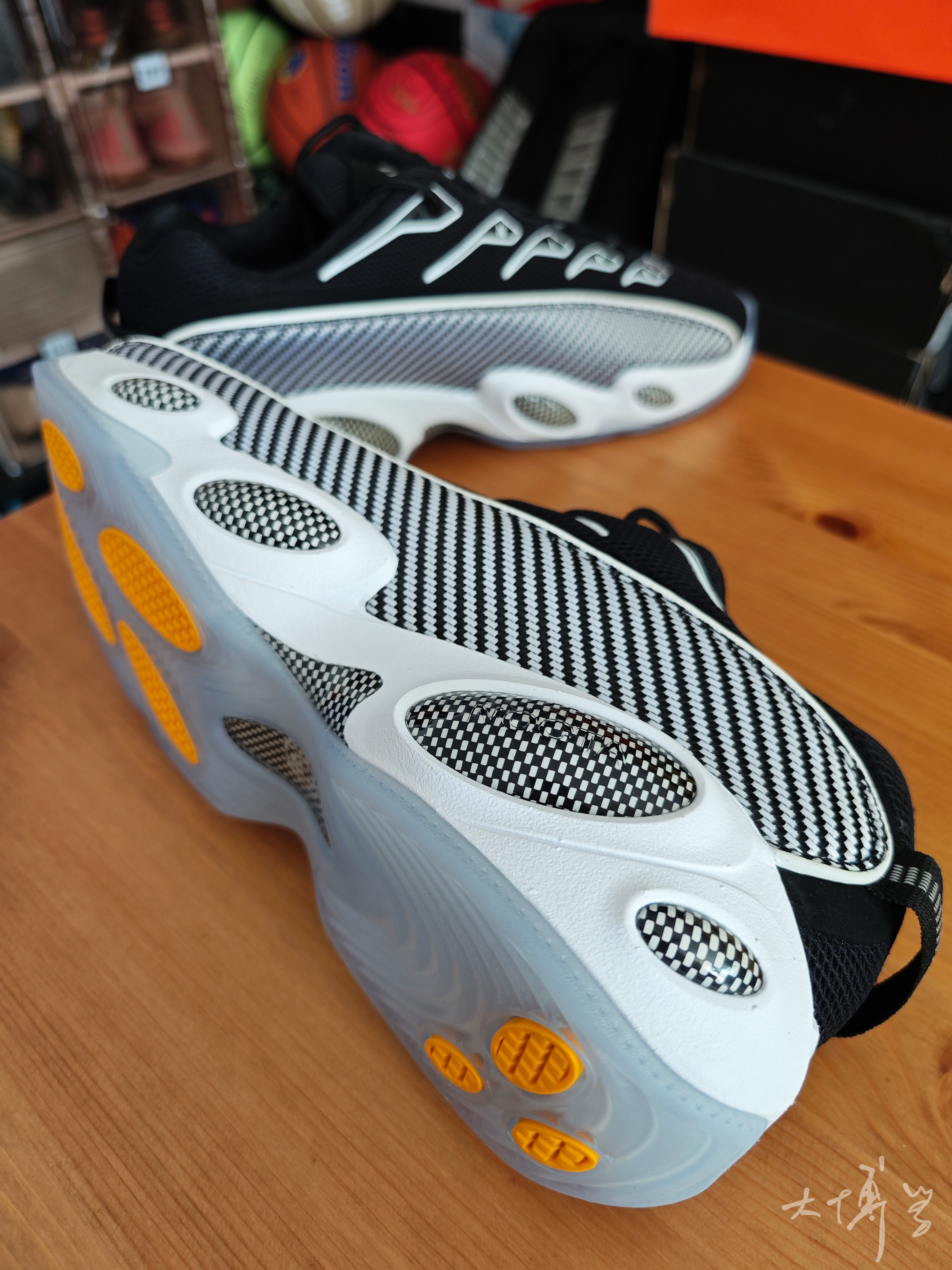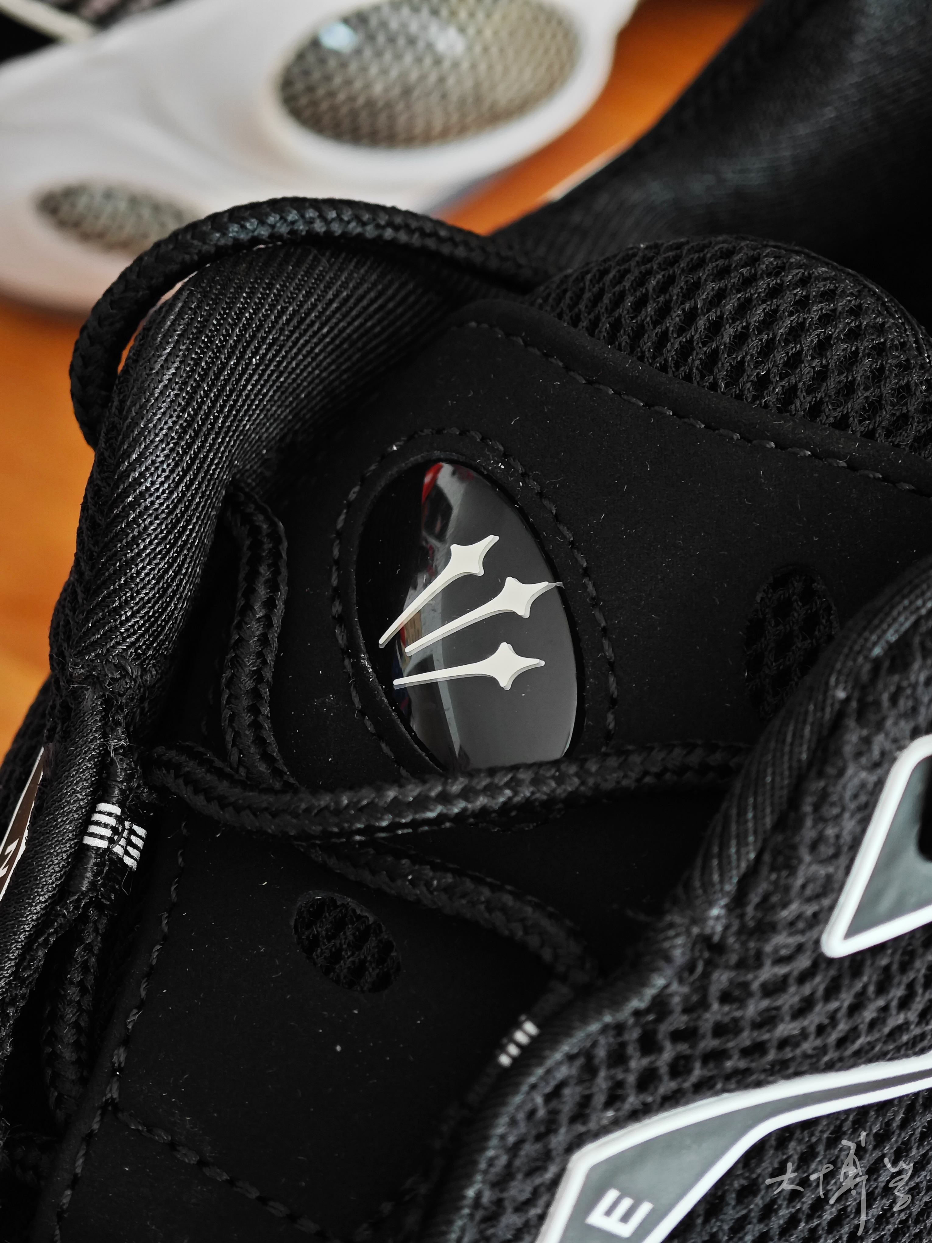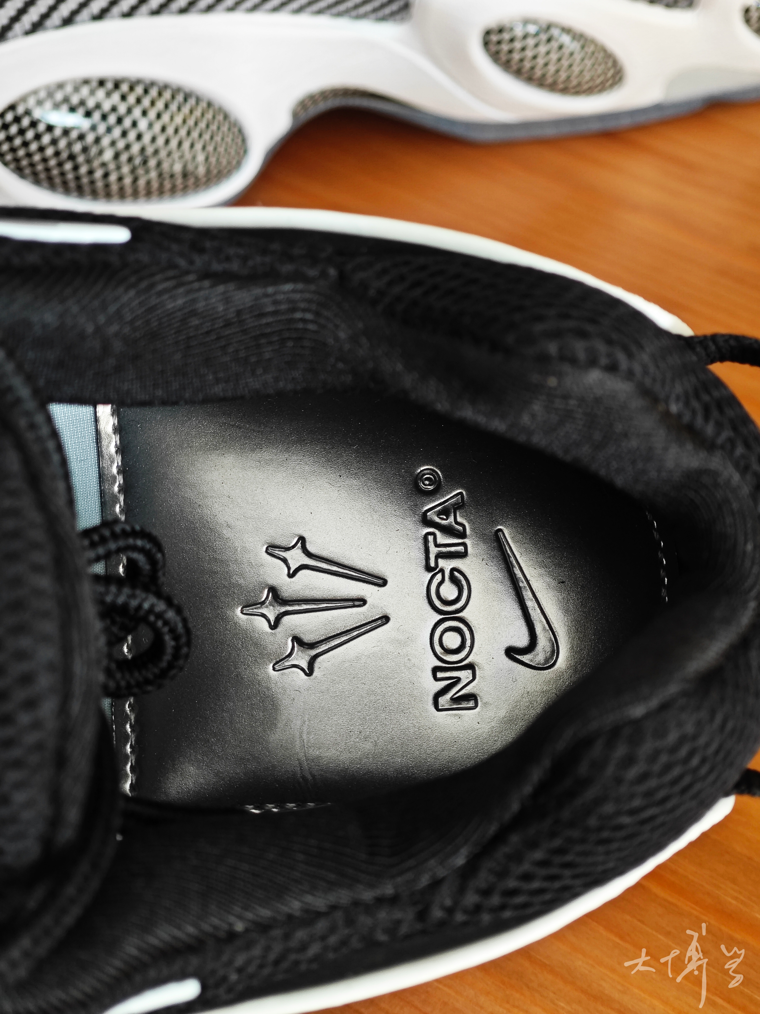 一款来自nocta联名的复古鞋 用当下潮流去诠释复古味道 鞋面是织物的,做了仿碳纤维的纹理 中底侧面四个大眼睛,辨识度很高 这是复古跑鞋?还是复古篮球鞋? 其实已经无所谓 统称潮流文化鞋 鞋垫带有品牌的大Logo贴片