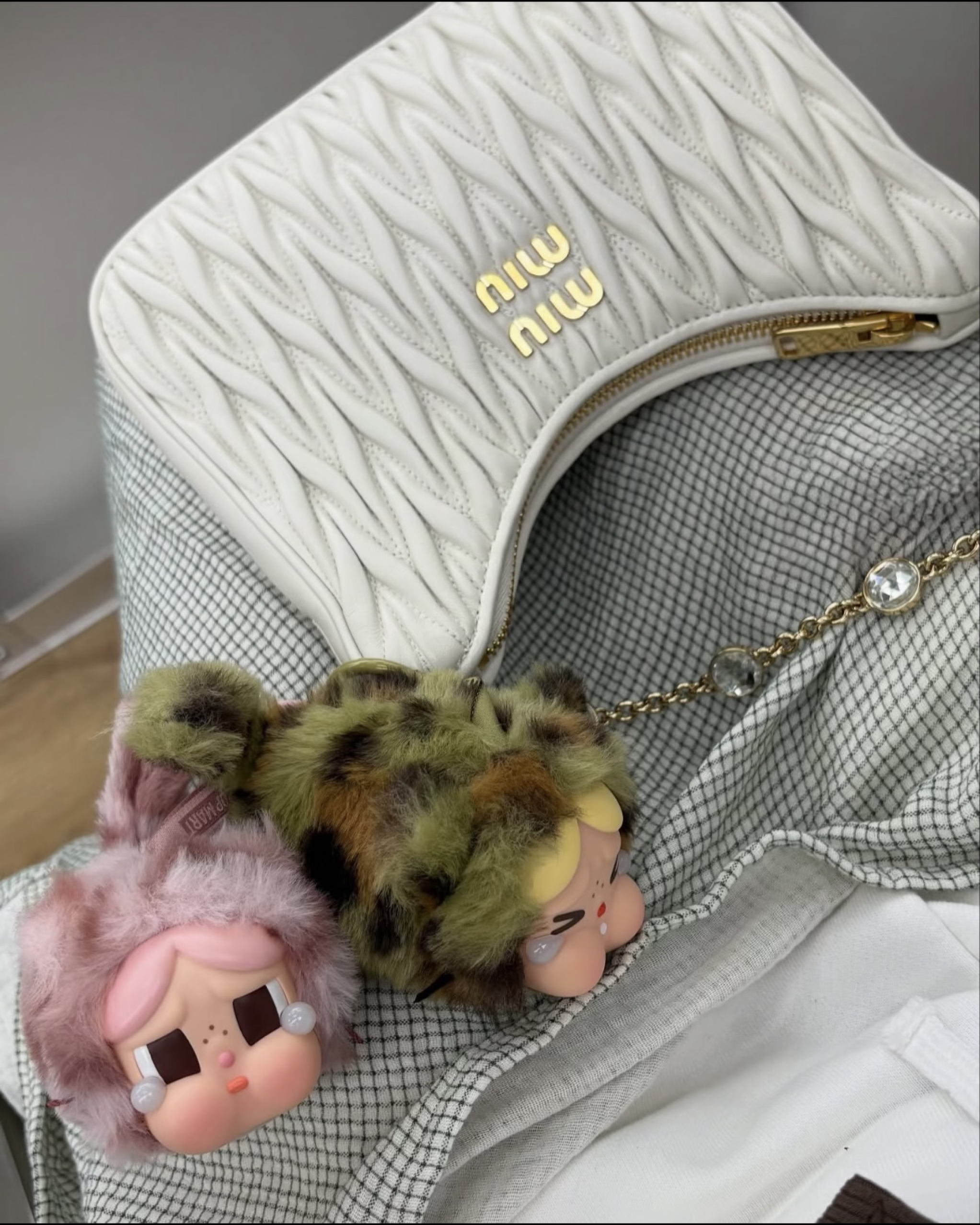 张元英同款的泡泡玛特CRYBABY豹猫猫猫系列盲盒,不到百元的价位性价比拉满。 毛绒质感软糯可爱,造型还原度高,挂在包上是超吸睛的搭配小物,少女心十足。盲盒的随机性还增添了拆盒乐趣,百元内就能get明星同款,不管是收藏还是搭配都很值得入手。