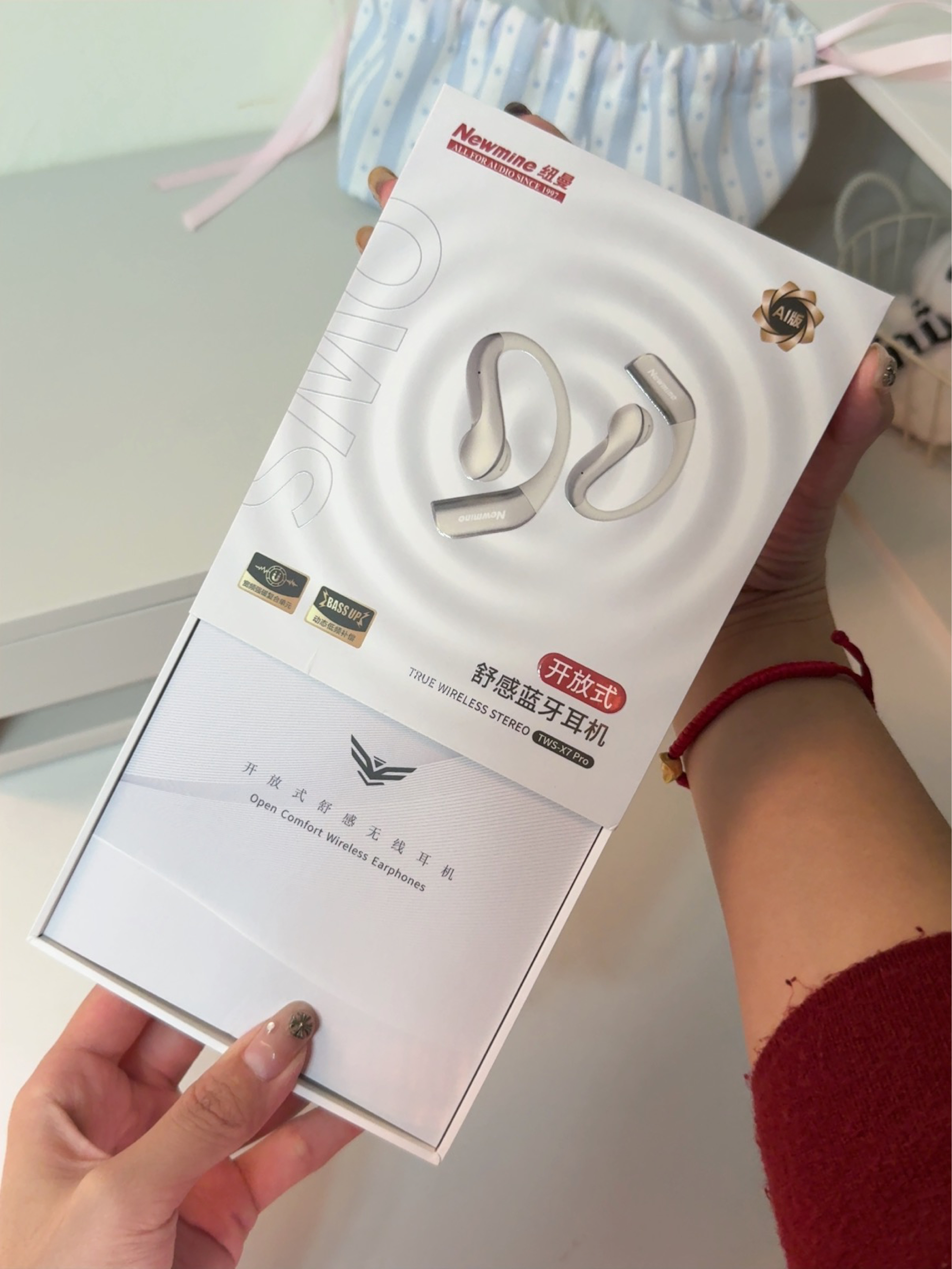 带上这个纽曼的耳机真的好舒服 它是根据耳朵的形状设计的 很贴合耳朵 呆一整天也不会疼痛 像我们平时运动跑步的时候怎么摇晃都不会掉 而且他的音质还是蛮好的 低音深沉的音也可以听见 充一次电可以用好几天 就这才百元还要什么自行车