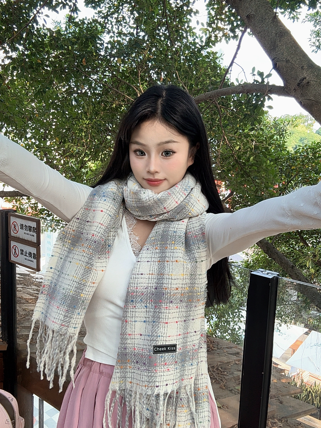 这围巾的格子图案,超级有韩版ins风哦,简约又时尚,随便一搭,就能感受到小众氛围感讷😉😉材质是绒线的,软软糯糯的,圣诞送礼🎁👍选择超用心的😘😘戴上超级舒服😌爱了爱了💕