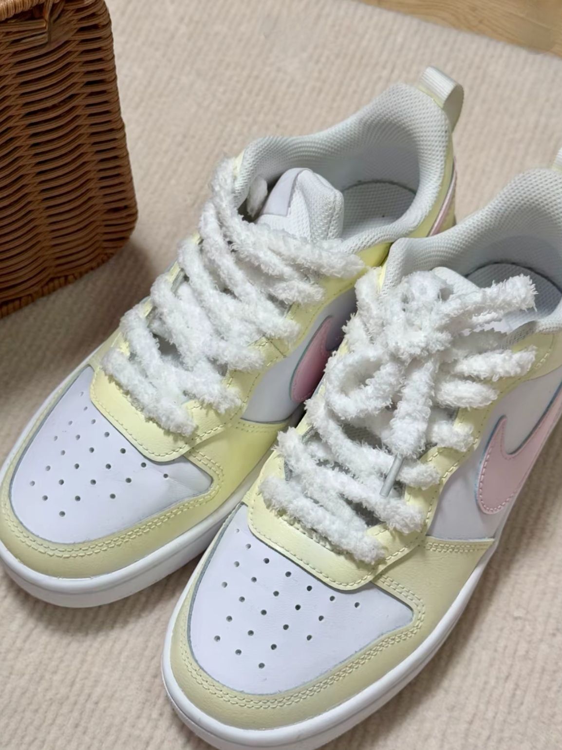 低头就被这双嫩黄色芝士小蛋糕🍰给萌到了!|||#韩系入冬穿这双 我今天的穿搭是 同色系的嫩黄色毛衫+白色长裙 配这双鞋刚刚好 这样穿真的巨显温柔 大家可以去试试 脚踝的包裹性挺强的 也暖和 在南方的冬天可以穿 北方就算了哈哈哈 北方的冬天这么穿得冷坏了 #预习一下冬天穿搭 #一脚蹬进冬天 #板鞋拿捏秋冬氛围感 #耐克nike