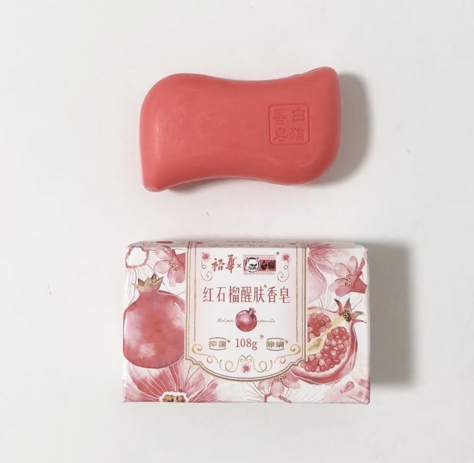 今天收到了裕华的苦参皂和红石榴皂 一开始看包装有点不一样,还以为是假的,后来到编码app上查了下是真的 香味是真的浓郁,隔着快递盒都能闻到哈哈 红石榴是香甜的,好闻但对我而言不特别(就先放到衣橱去香衣服了 苦参皂的药香味实在是太对我味了! 忍不住闻了又闻,实在是上头哈哈哈,而且本来没打算今天用(毕竟前几天刚开了新皂),但是实在忍不住,一定要用一下,太爱这个味道了 这个皂造型...