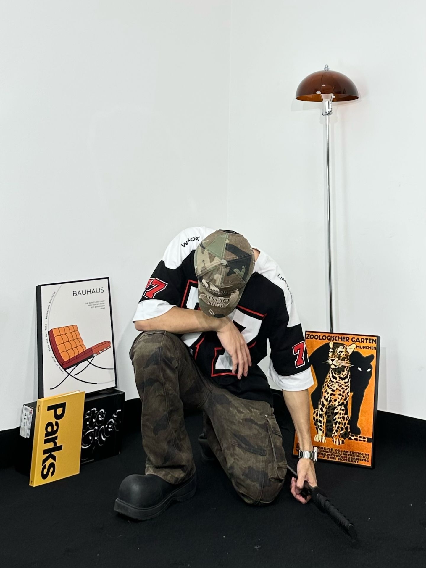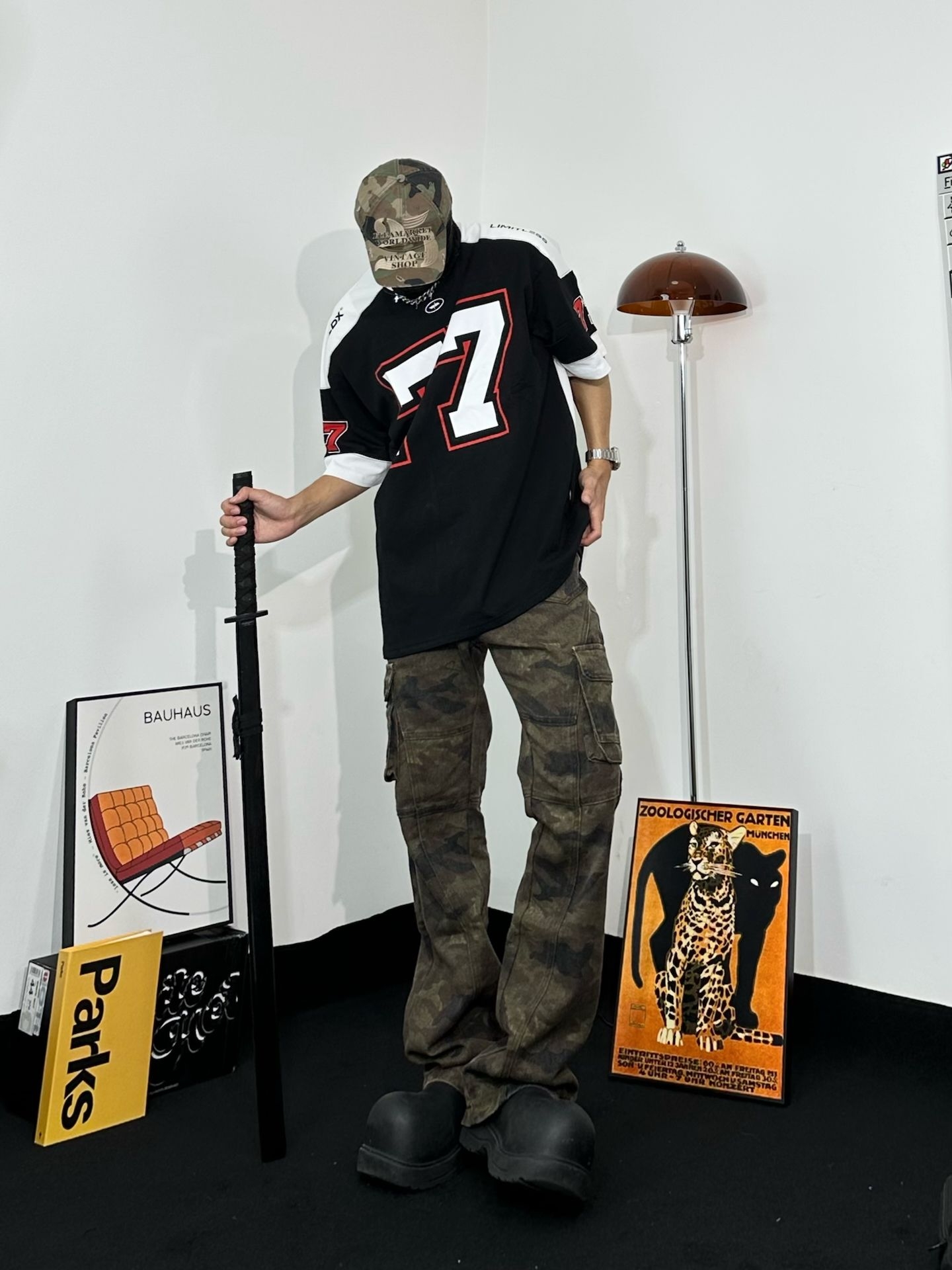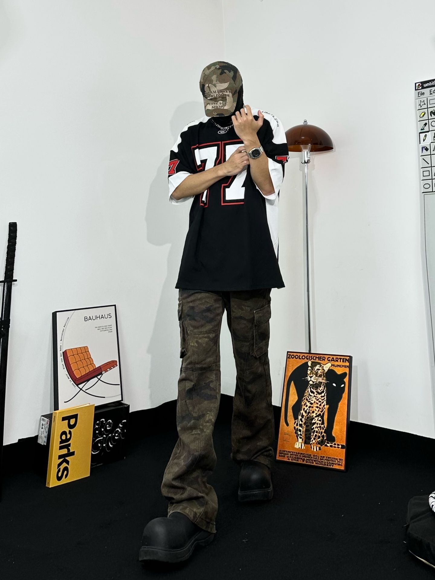 上身方面选择到了这件 WILDX 印字美式T美式复古感拉满。面料凉爽很亲肤,拼贴设计也很有美式街头感 迷彩工装裤,口袋超多超实用 而且迷彩元素一直都很潮,街头氛围拿捏 还是那双厚底鞋,和上一套搭配风格不同 但都能轻松hold住。迷彩棒球帽和裤子呼应 出街拍照超有感觉啊 秒变街头焦点!