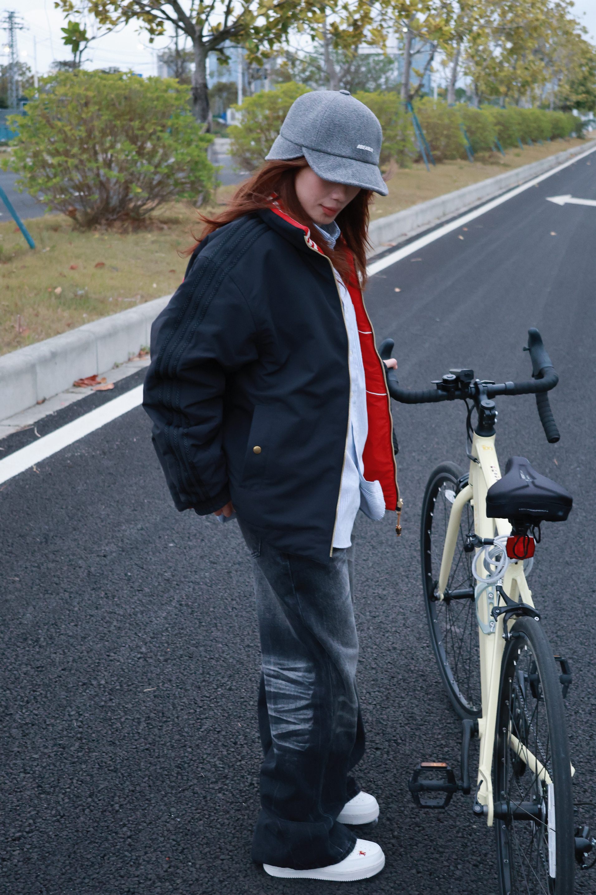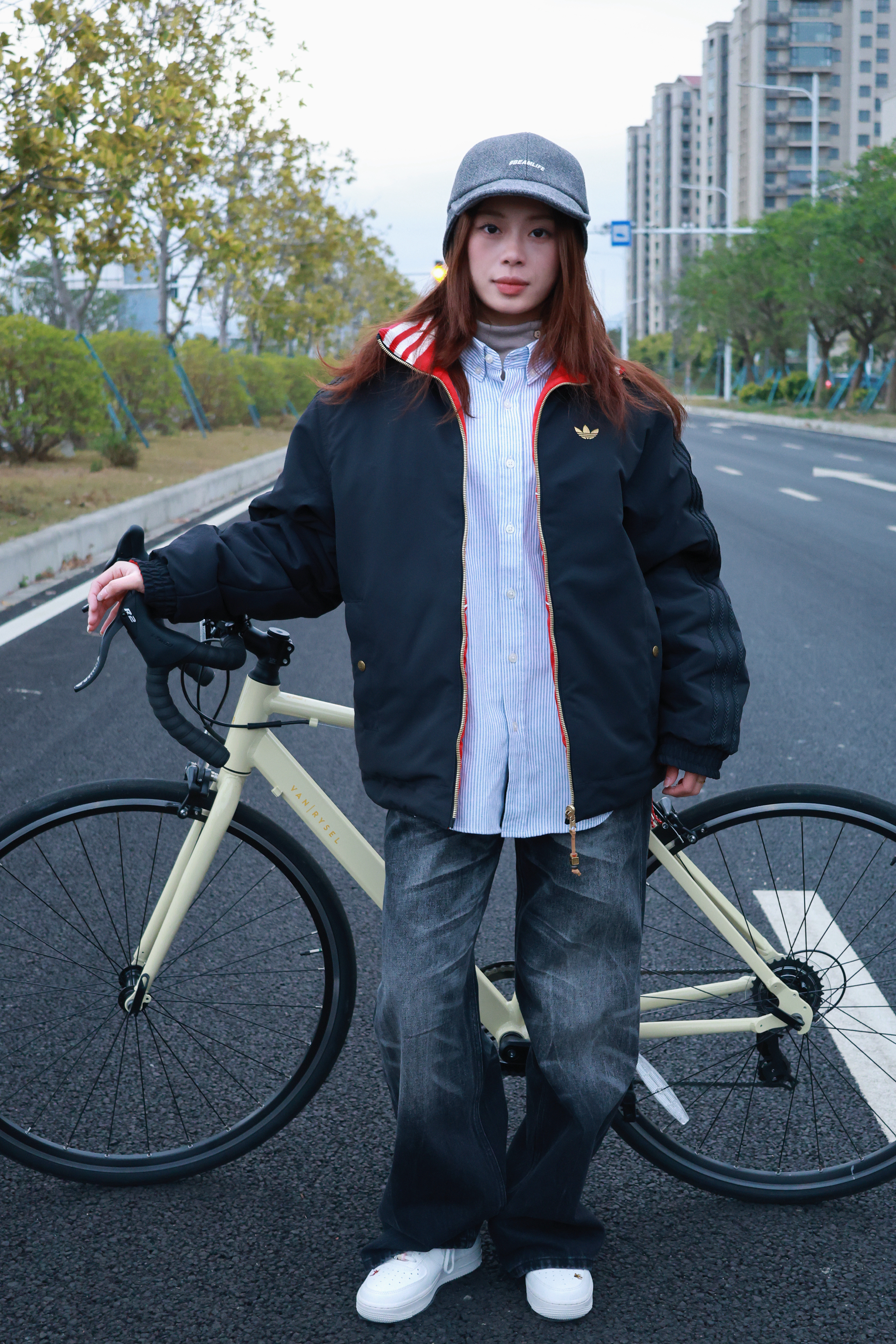 马上就要迎接新的一年啦🧨 我的骑行也将迎来下一个阶段🚴♀️ 马年来件马年限定骑行也好有意义 上装:复古运动棉服➕条纹衬衫 这种叠穿我真的超级喜欢 保暖又好看 是我冬天穿搭的必备公式📖 这件马年限定的双面穿夹克黑红配色超有氛围 我喜欢把阿迪的logo露出来 比较有运动感 下装:穿一条不容易出错的 黑灰作旧牛仔裤 主要是它的色调跟我上衣很大 ☕️复古味十足 鞋子.配饰:灰色的报童毛 遮风能力一...