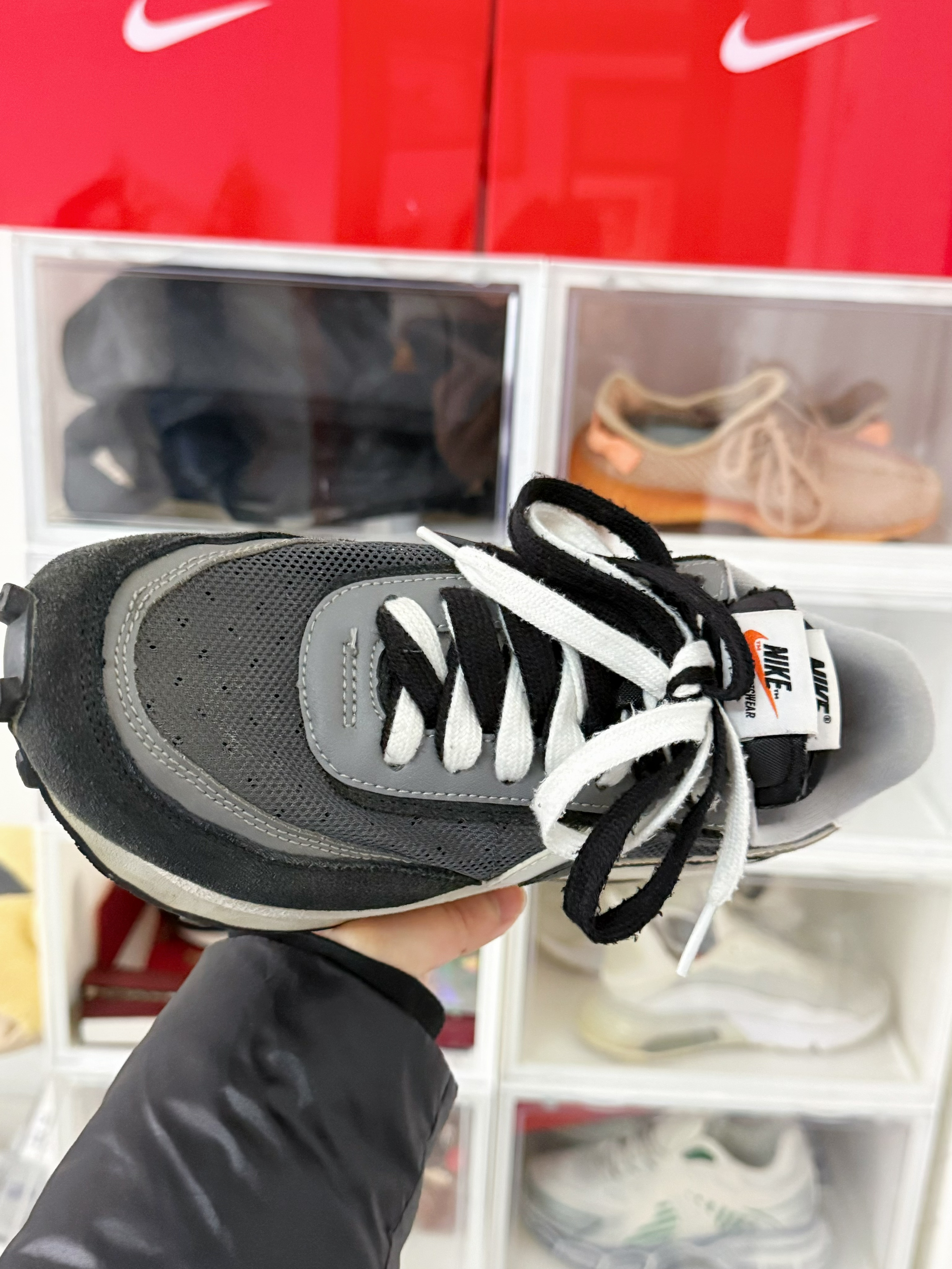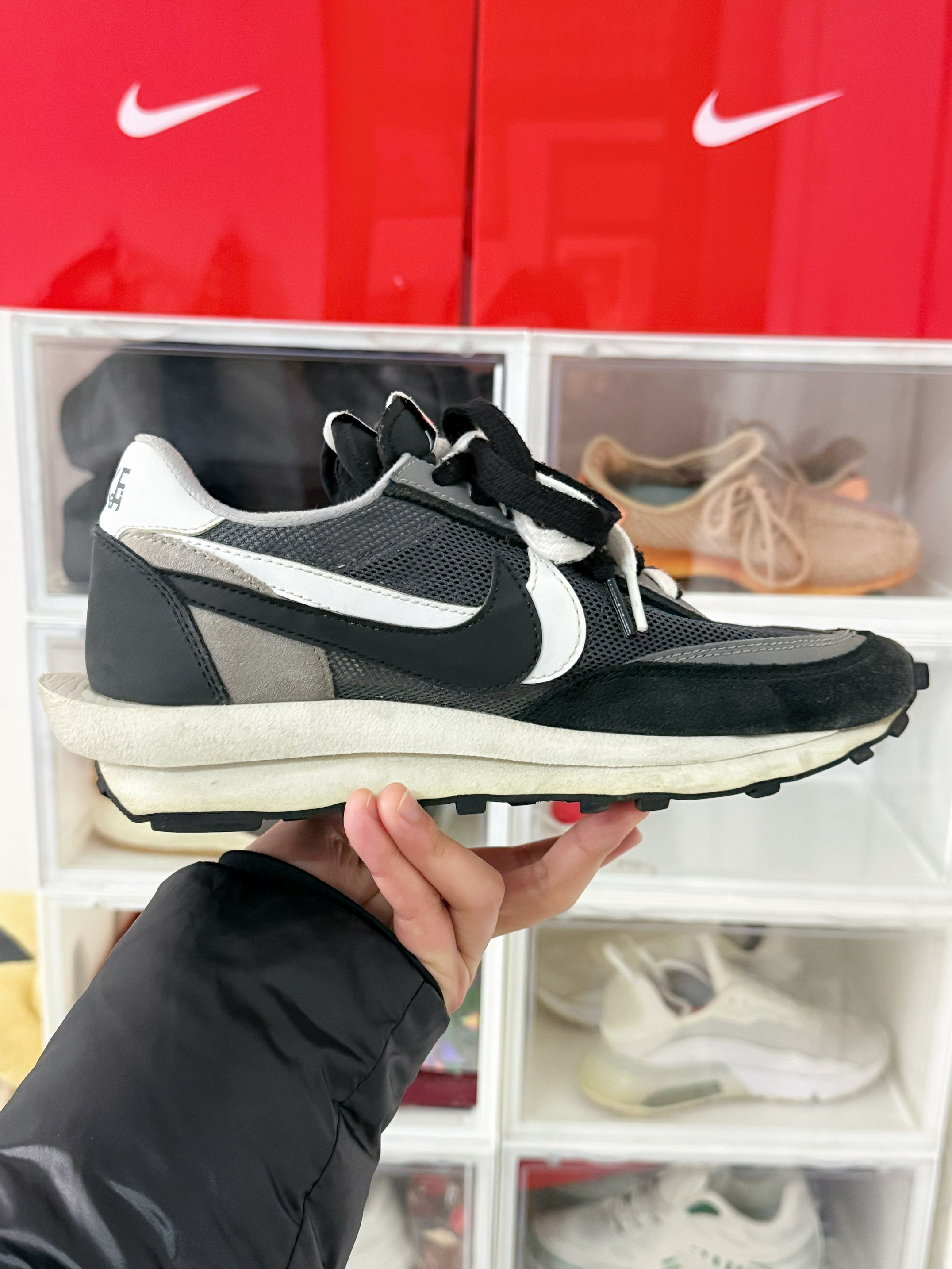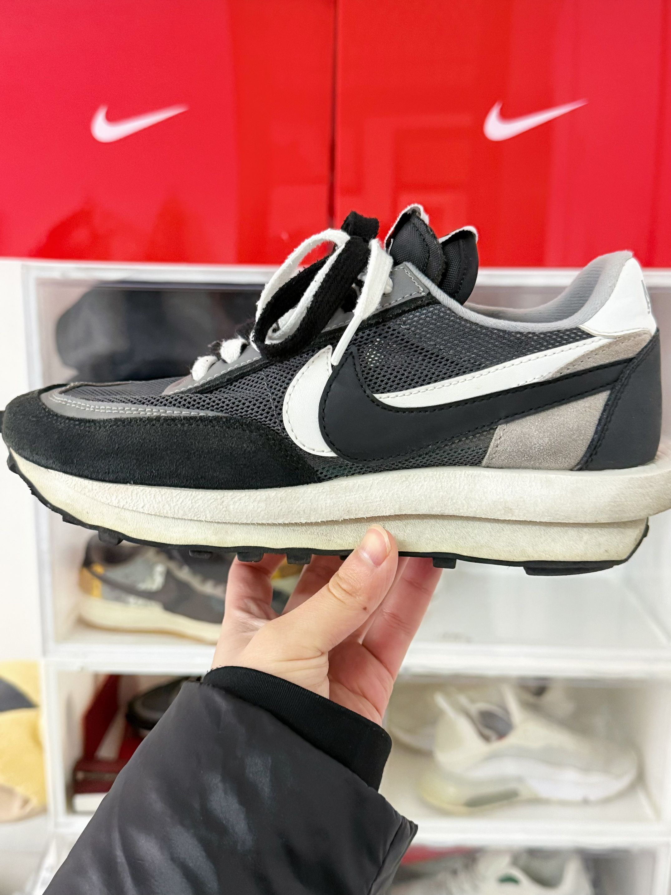 🌈 哈喽大家~ 今天的这双呢 是入手的第一双 sacai SACAI ✖️ Nike的第一双华夫鞋中我最喜欢的一个配色 黑白还是比较的百搭的 因为鞋面都是满满的透气网 所以只能在夏天穿 整体鞋子重量是特别的轻 也有4Cm增高中底 整体搭配属性也是挺和谐
