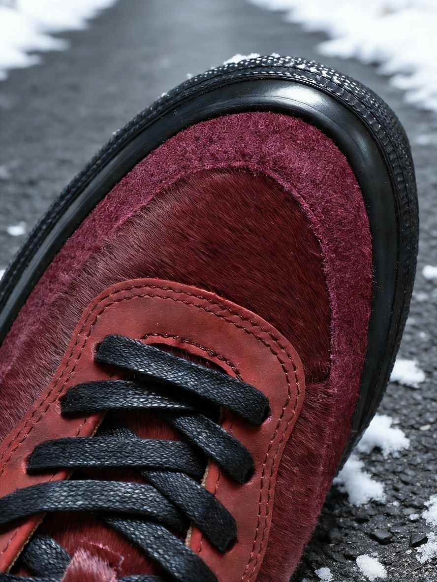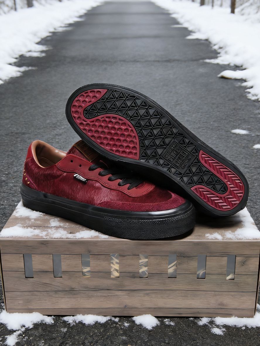 这双马年限定的复古酒红,质感真的太特别了!长毛反毛皮的材质让颜色随着光线有深浅变化,配上经典的Flat Top板鞋廓形,街头复古味十足,细节和做旧处理都很有味道。 作为板鞋,脚感挺扎实的。鞋底偏硬但支撑感足,包裹性不错,适合日常压马路或者偶尔玩一下滑板,穿开了会更贴合。 搭配上,它简直是复古造型的“定番单品”。配一条宽松的直筒牛仔裤,裤脚自然盖住鞋舌,味道最正;或者搭配工装裤,也能轻松打造出粗...