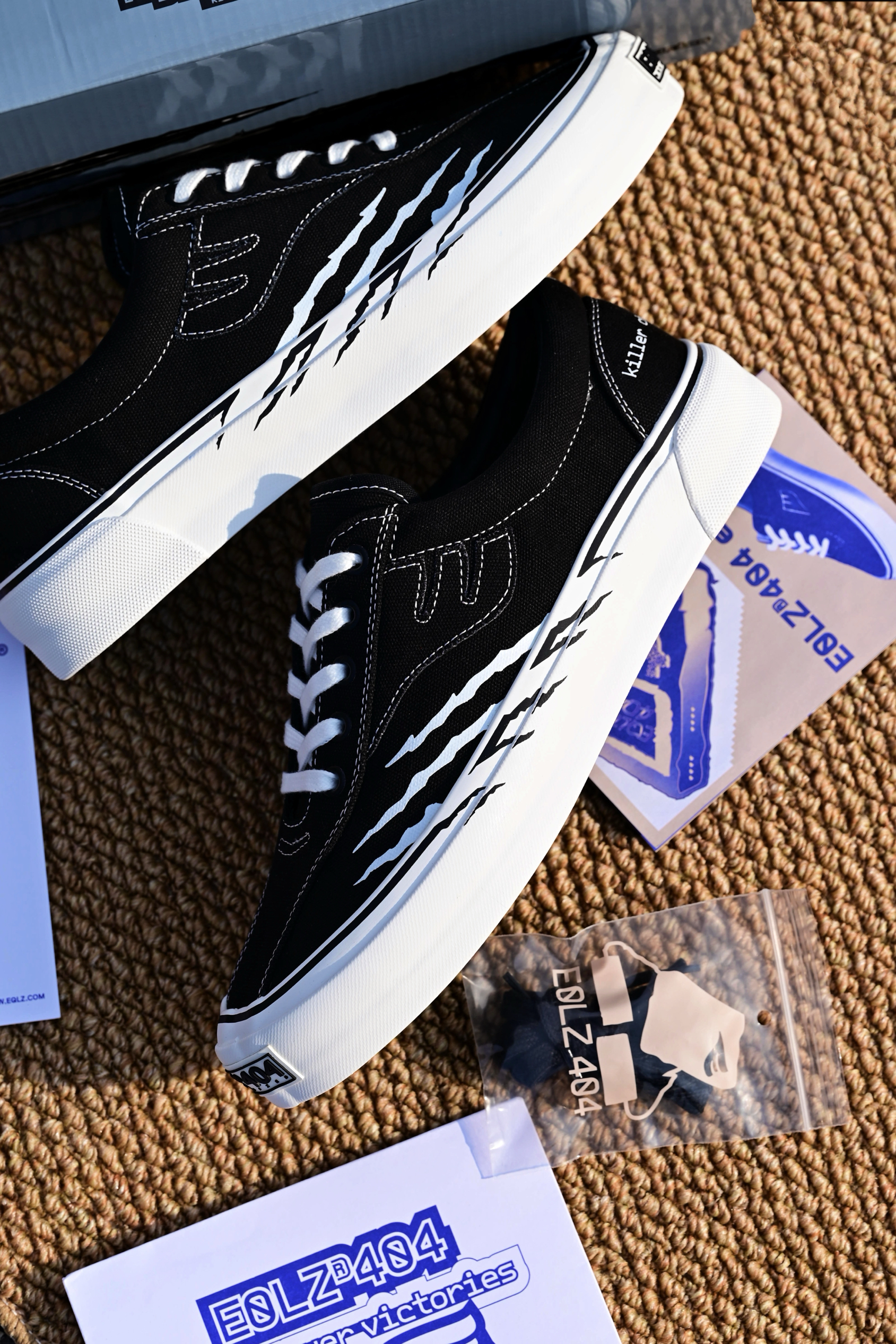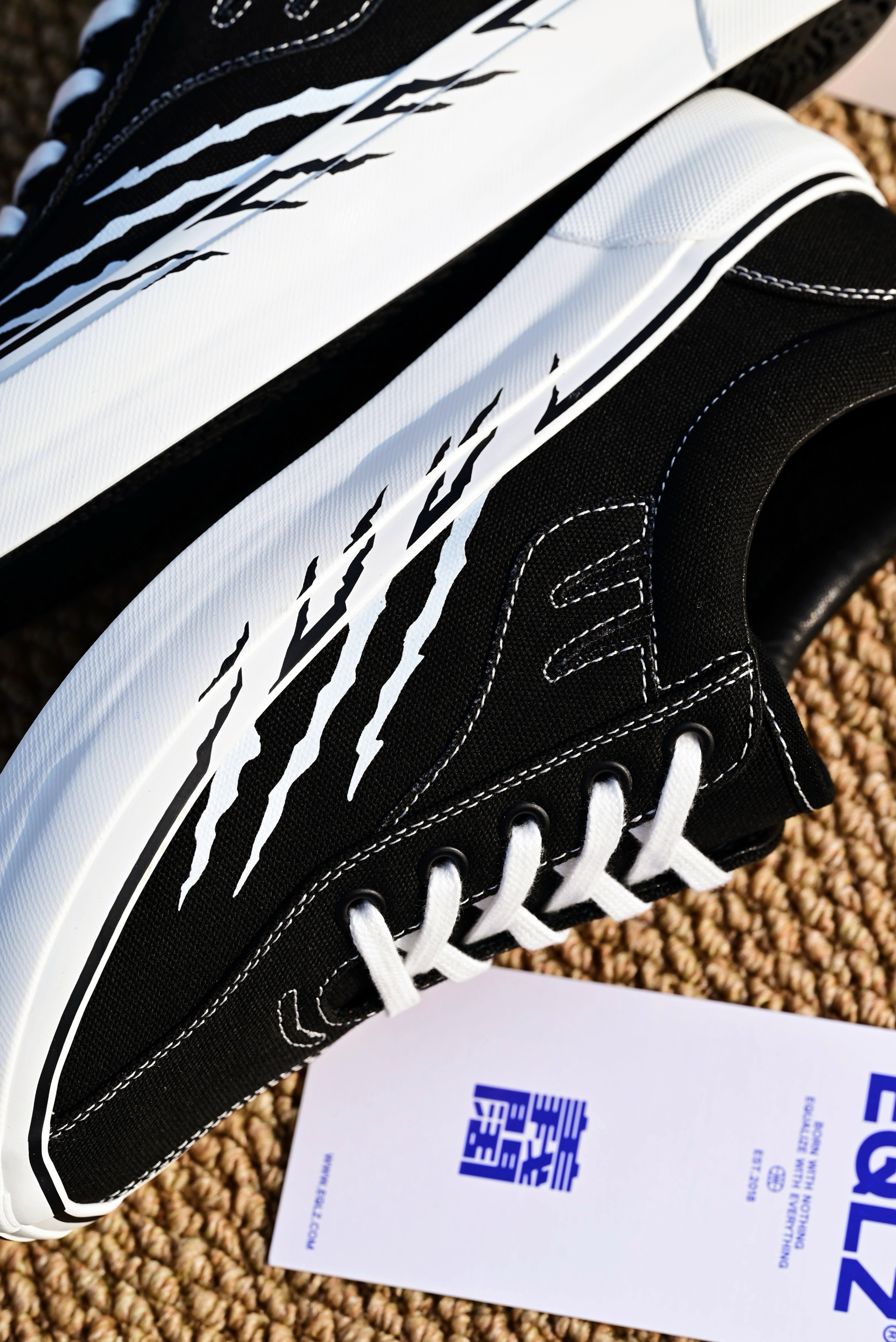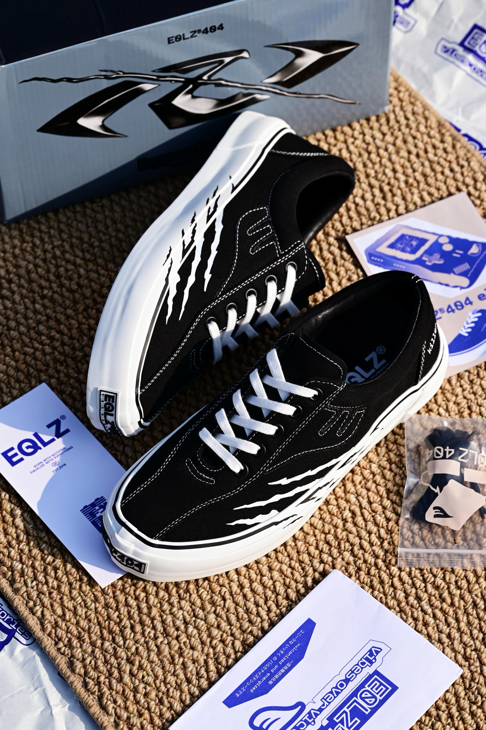 错版鞋老粉终于也是收到了EQLZ的之前的新款鞋型404板鞋,全新的体验,感觉真是非常之好。 配色与HYPERKILLER联名,侧面抓痕灵魂设计,区别普通配色,个性十足。 中底硫化工艺,鞋边做的很有质感,硫化帆布鞋对于我这种工装阔腿裤男孩真是太对味了,另外新的鞋型还配备了一副很厚实的鞋垫,脚感体验我觉得较之前的款要更胜一筹。 价位来说,综合做工设计,小众且有诚意,我觉得很有性价比,码数正常选即可。