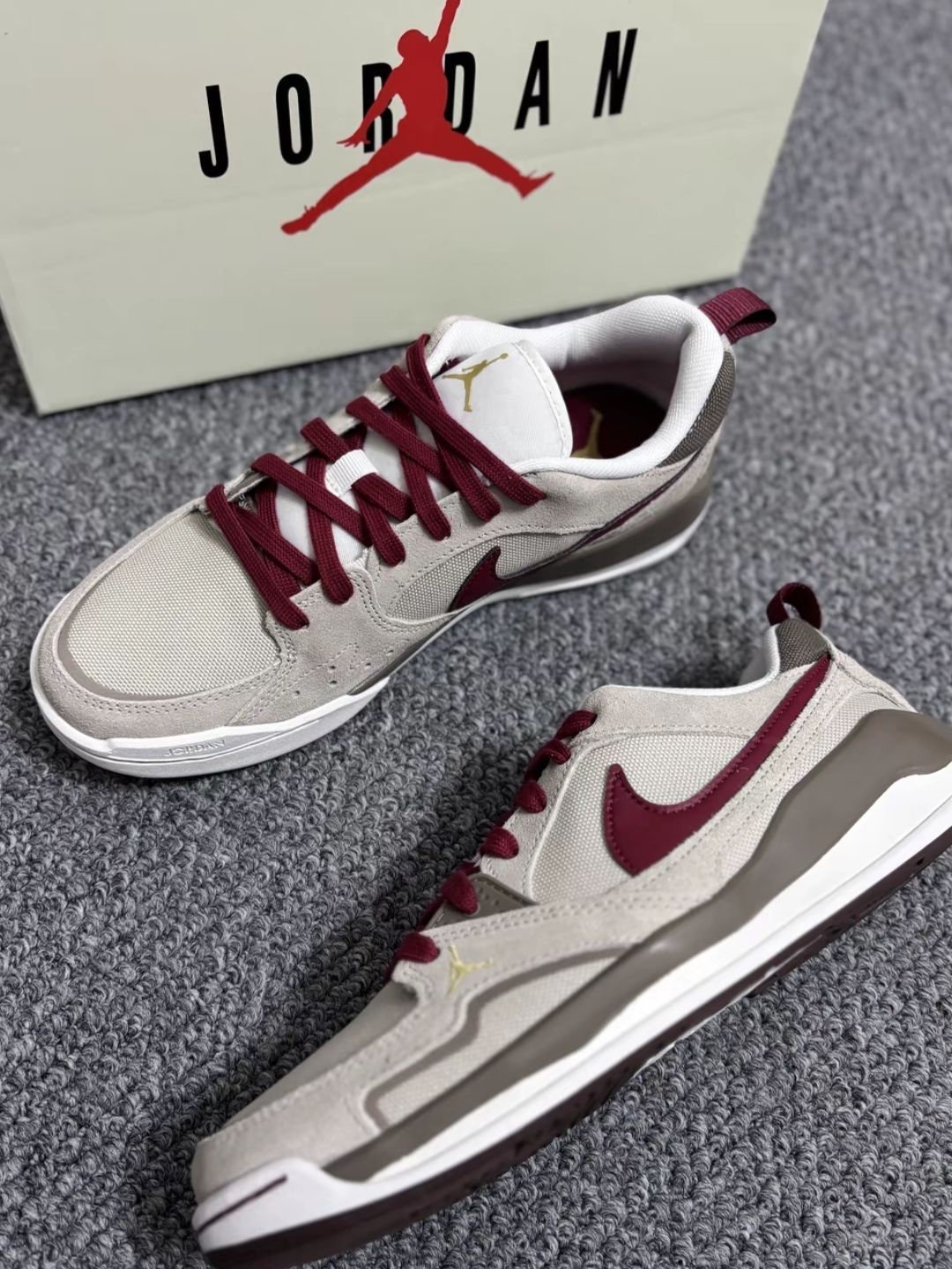 这双马年限定AJ简直是为新年潮人量身定制🤙 酒红Swoosh撞色米白鞋身 金色飞人标悄悄提气场👏 上脚舒服,鞋型修脚✅ 实测压马路不闷脚💯 卫衣+牛仔裤搭配👻 冬日穿搭自带祥瑞Buff❗️