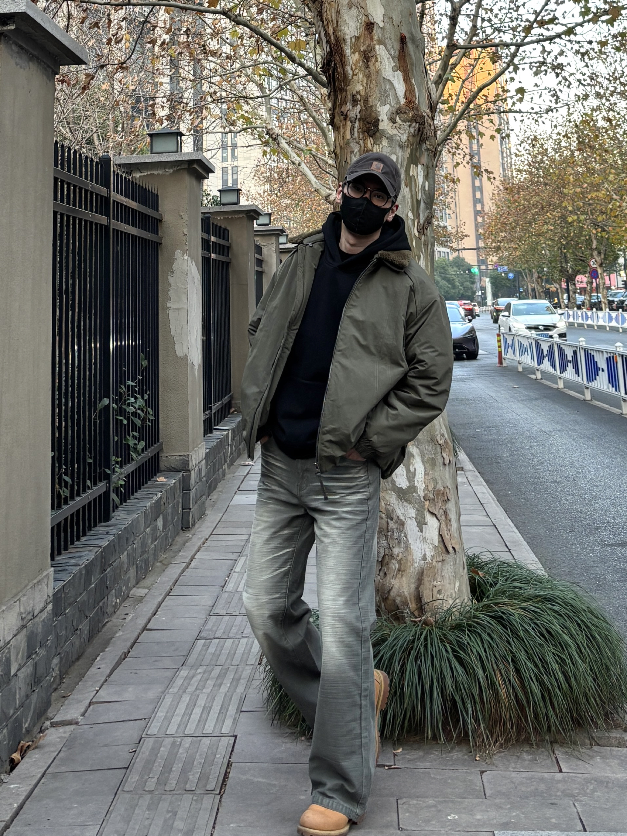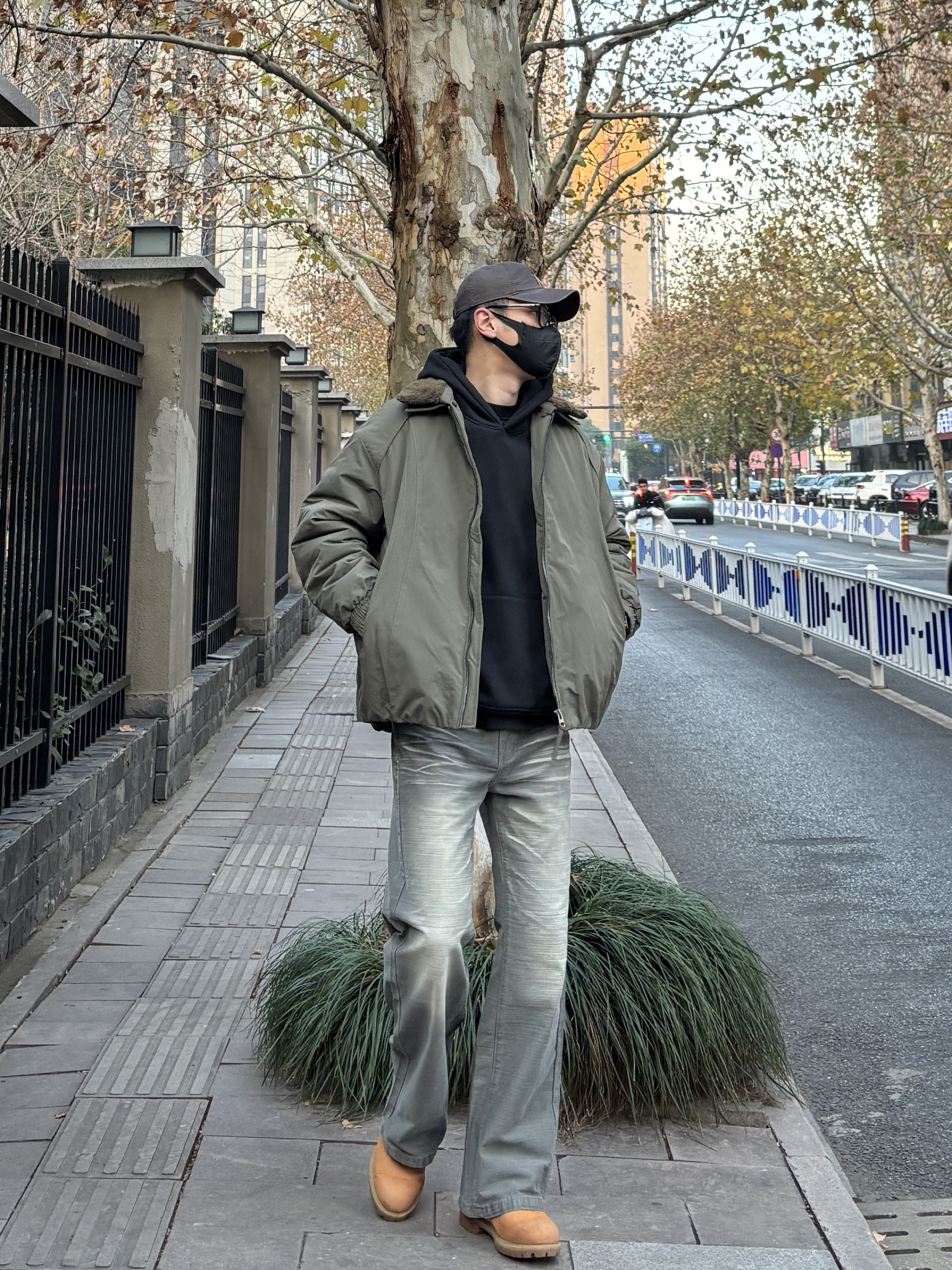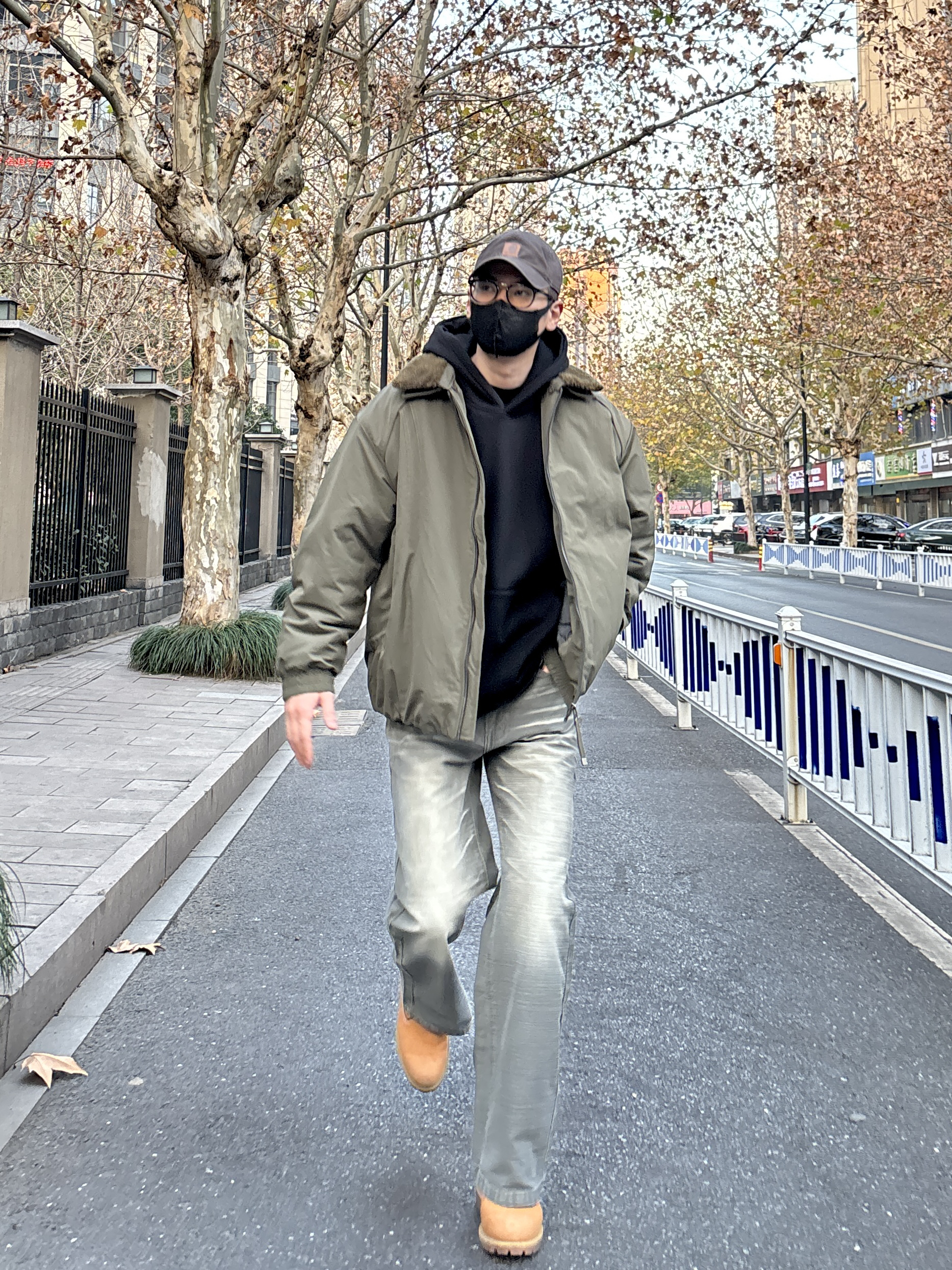 冬季美式工装风真的很实穿,城市通勤也能帅得轻松。 军绿色毛领空军棉服是冬日刚需,宽松版型内搭黑色连帽卫衣也不会显局促,下装选了横纹绿直筒水洗做旧牛仔裤和复古高帮大黄靴,和工装风的适配度简直💯 这身以黑绿棕为主的搭配,最近出街率超高,保暖舒适的同时,又能保持简约利落的风格🙋♂️ - 今日穿搭 衣服裤子:NICE LILI 鞋子:timberland