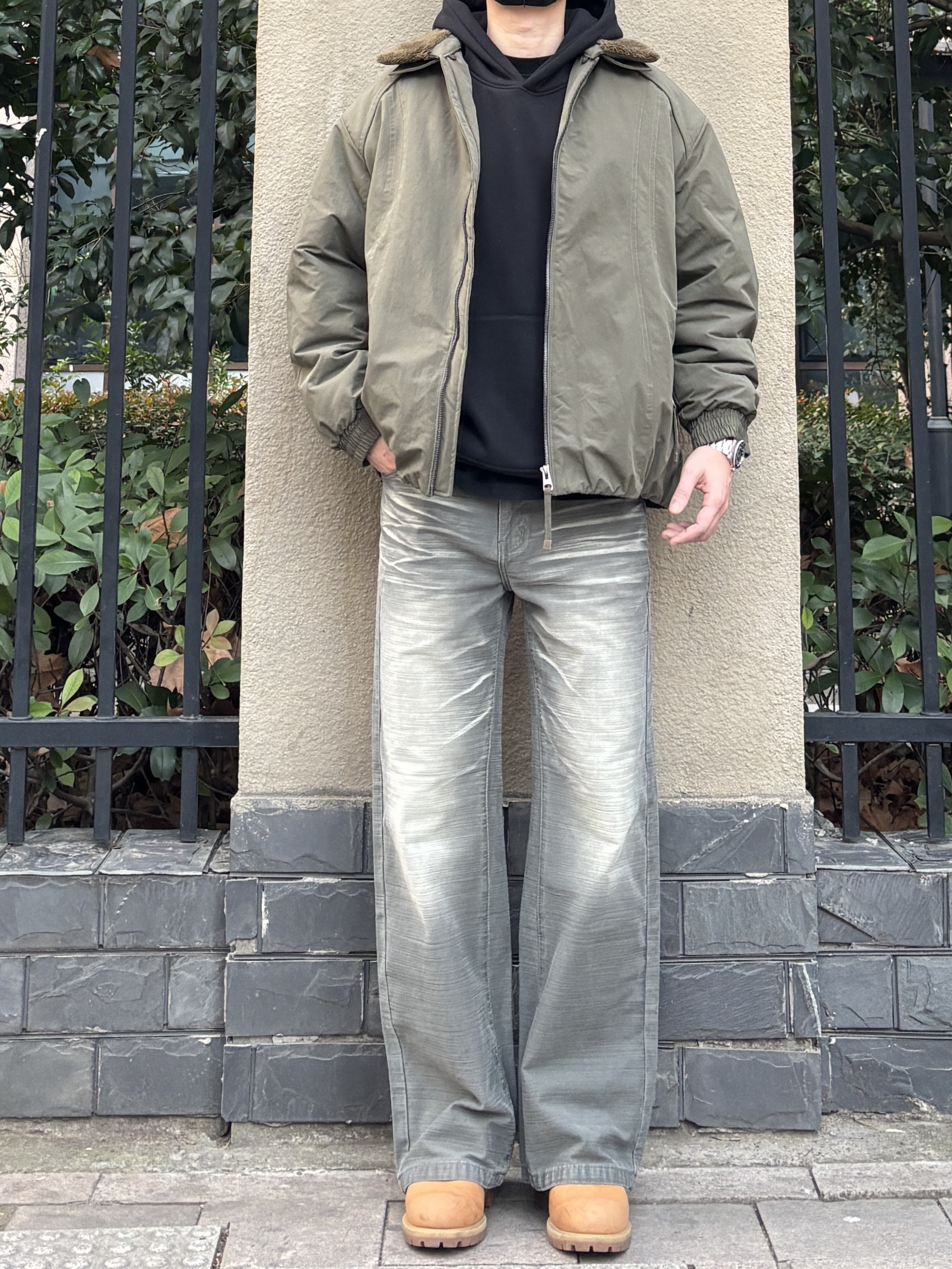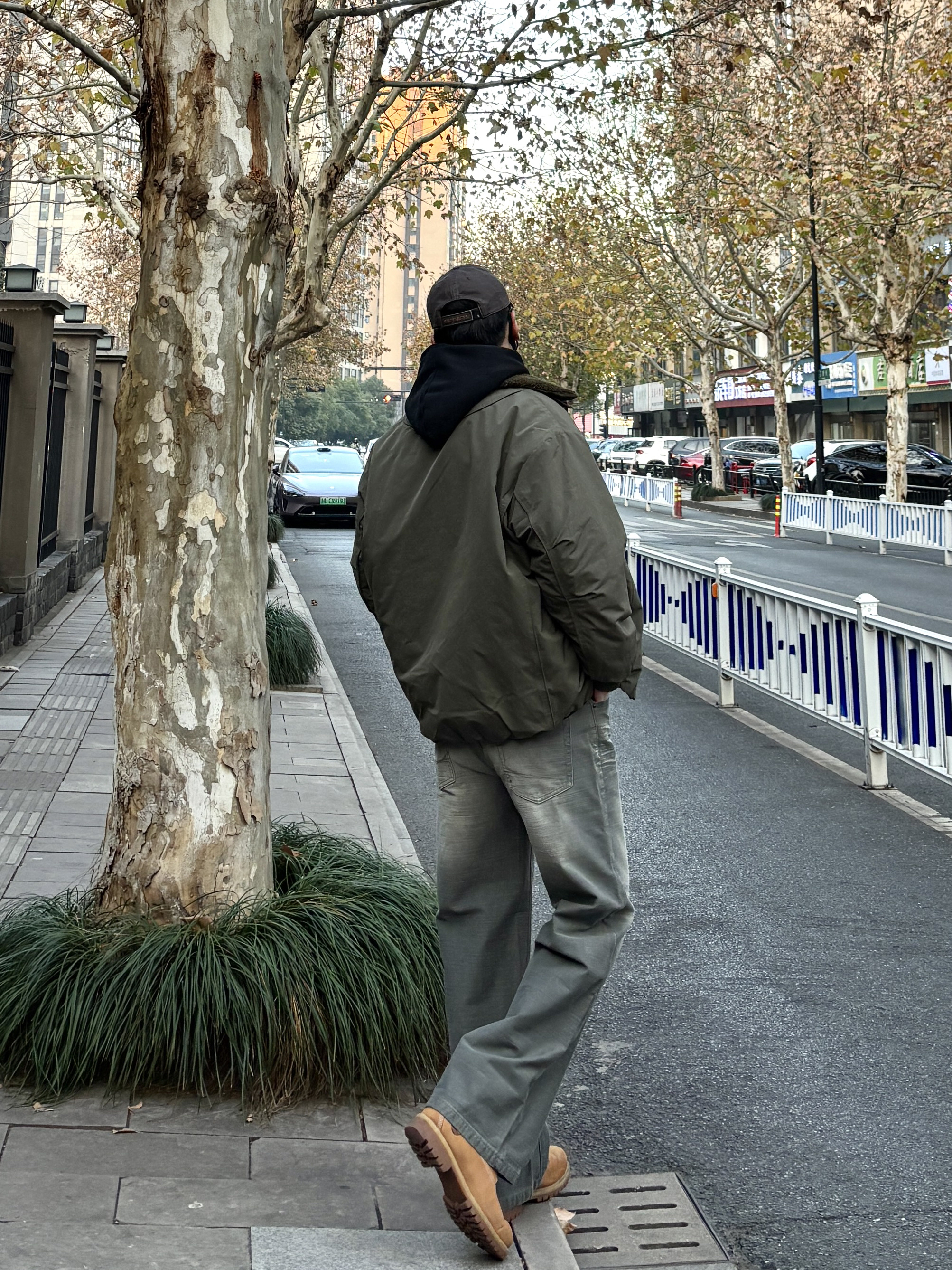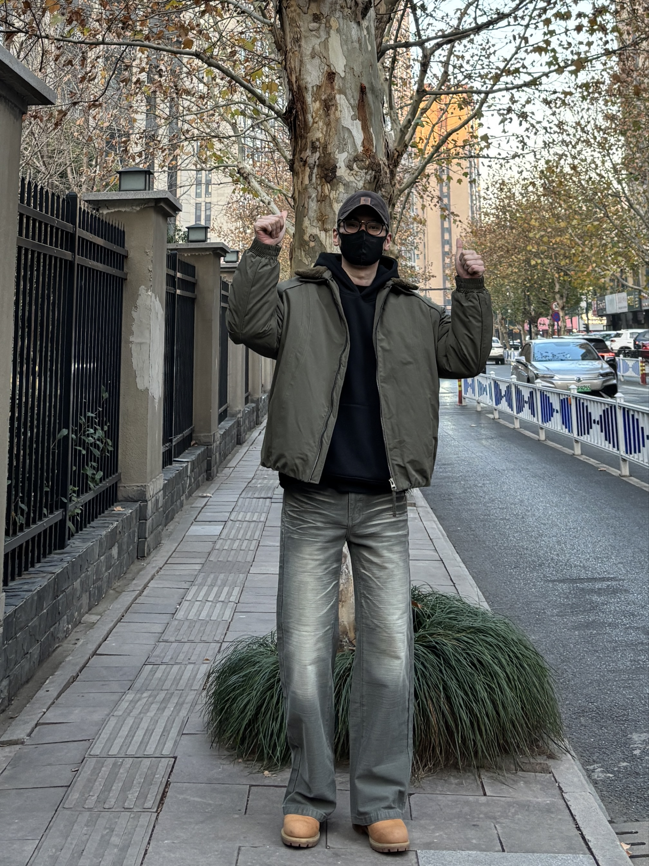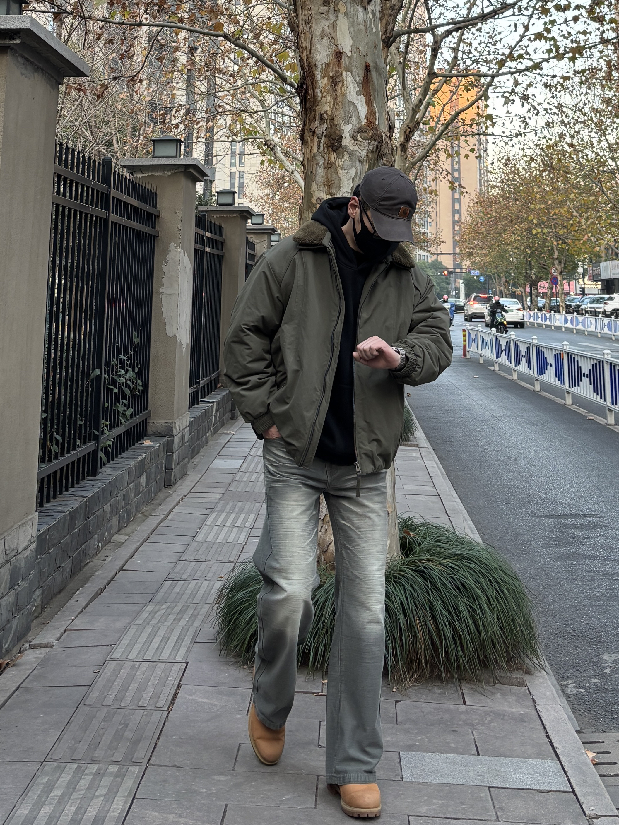 冬季美式工装风真的很实穿,城市通勤也能帅得轻松。 军绿色毛领空军棉服是冬日刚需,宽松版型内搭黑色连帽卫衣也不会显局促,下装选了横纹绿直筒水洗做旧牛仔裤和复古高帮大黄靴,和工装风的适配度简直💯 这身以黑绿棕为主的搭配,最近出街率超高,保暖舒适的同时,又能保持简约利落的风格🙋♂️ - 今日穿搭 衣服裤子:NICE LILI 鞋子:timberland
