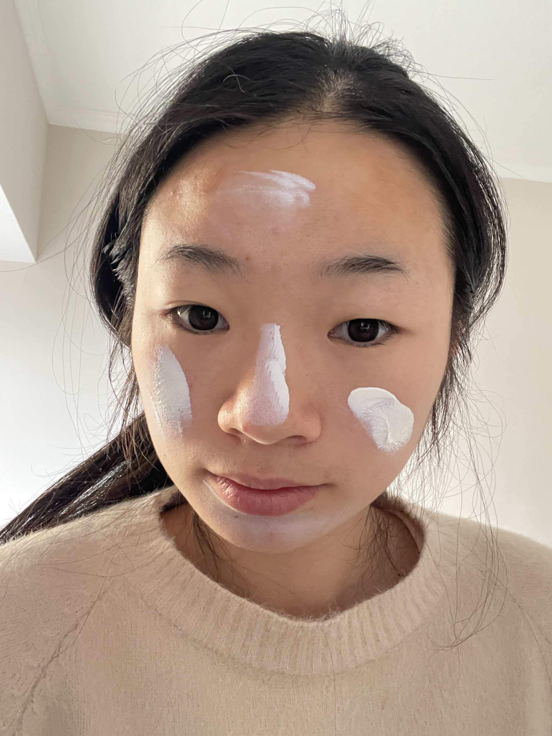 按推荐用量上脸,打圈会搓泥,平铺顺着一个方向涂就不搓了。刚上脸像带防晒的素颜霜,nonono,过一会就自然咯。 一天下来也没斑驳,出油确实比啥也不涂要少些,不过还是上点散粉吧。 它最好的一点是和底妆不打架!终于用到不打架的物理防晒了,太不容易了