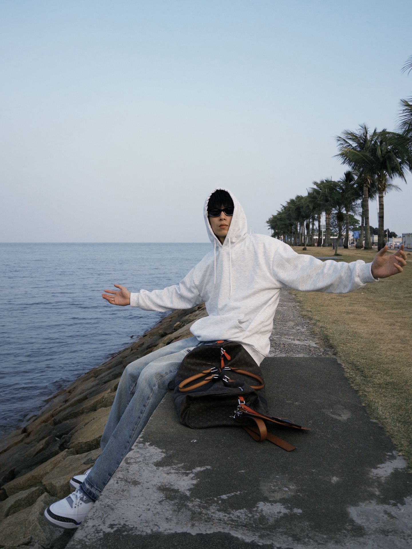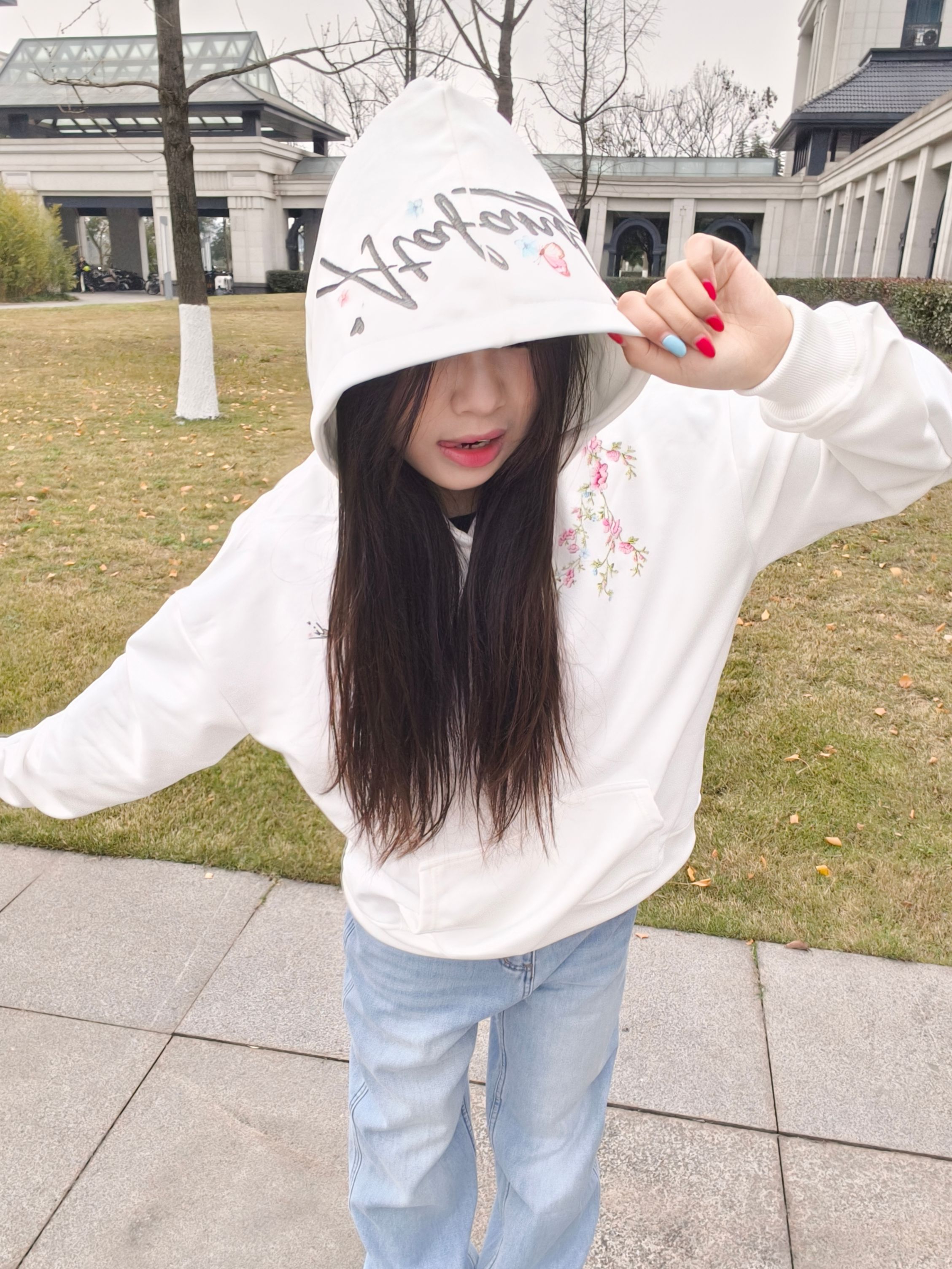 冬天不止黑白灰呀!今天是卫衣控~🎨 Levis藏青卫衣解锁露台休闲穿搭,软糯面料适配冬日清凉的风🌬️ 红色镂空大logo设计吸睛又不浮夸👀 -183 78 XL 合适 搭配阔腿牛仔打造松弛比例,满印红白刺绣🪡增添色彩💐 红鞋点缀让整体更有层次! 卫衣赋予的自在感~在露台上靠在墙边、坐在长椅上随手一拍就是冬日氛围感呀📷