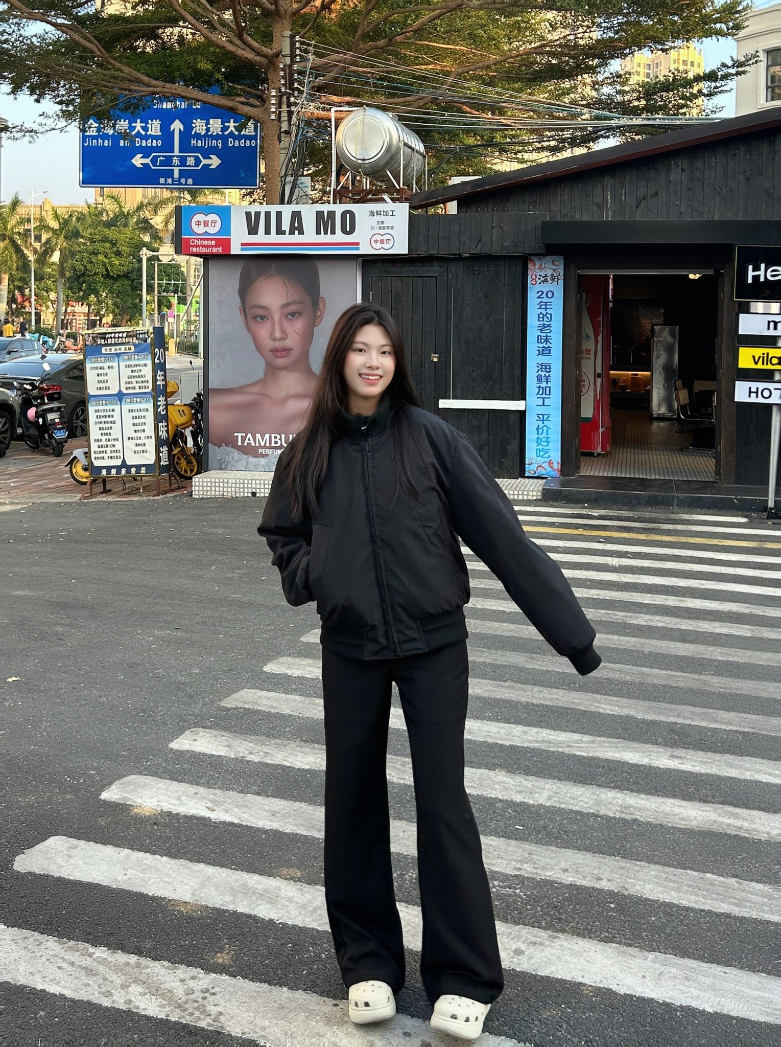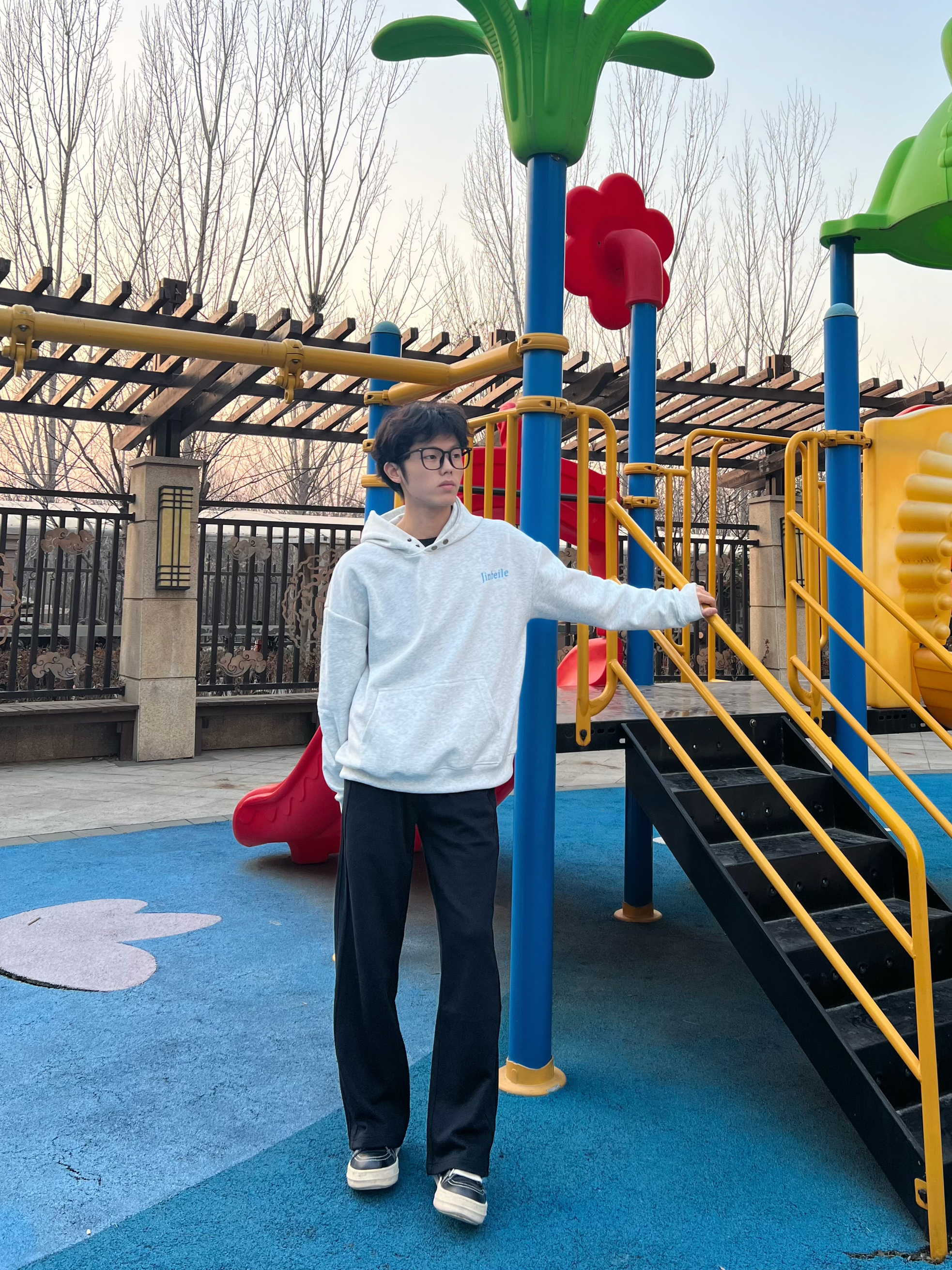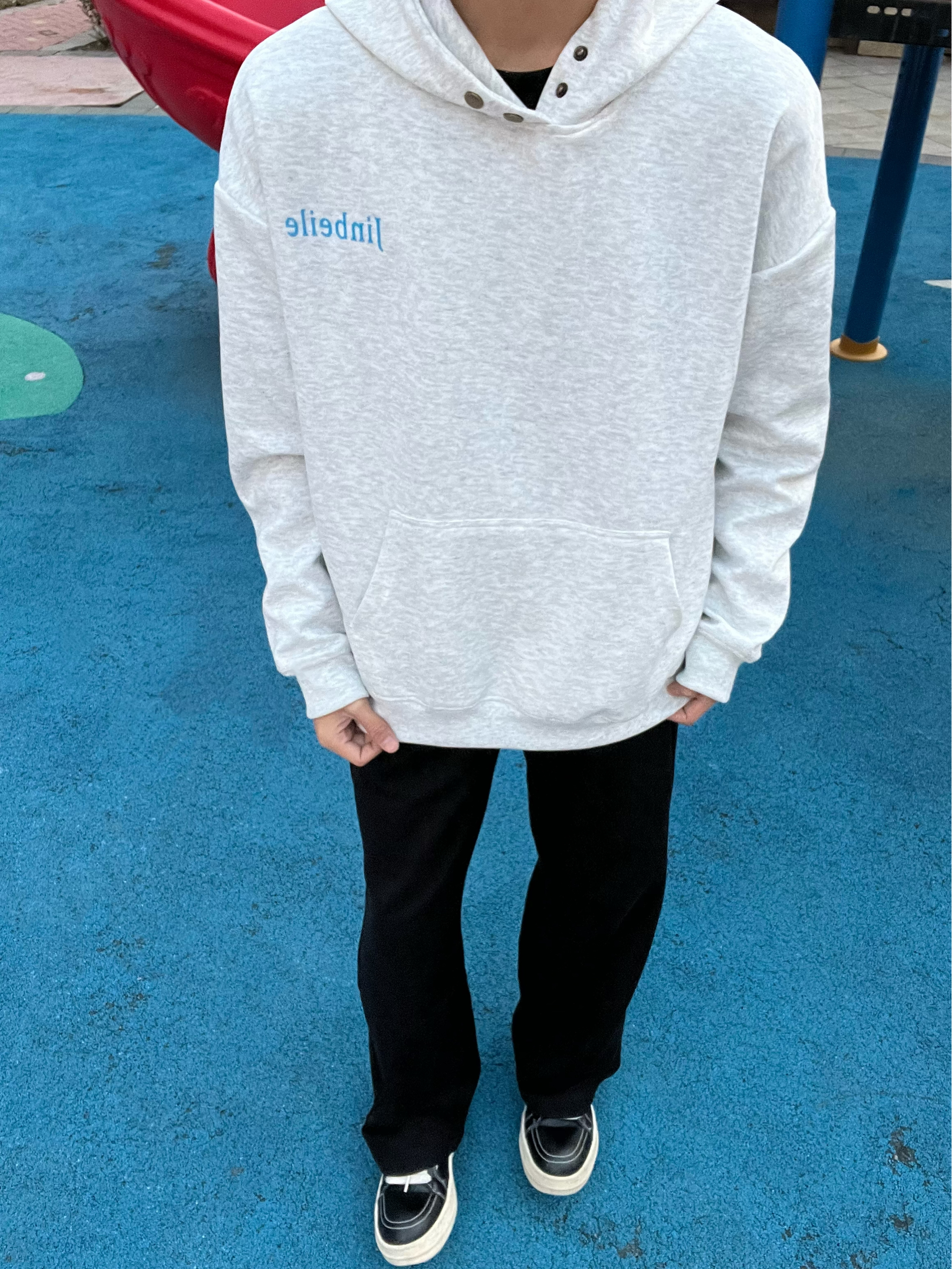 今天这件卫衣还蛮适合冬天诶 版型设计很好 连帽卫衣也挺方便 背后黑色战马搭配蓝色标语美式感十足! 秋冬单穿叠穿都很合适 裤子搭配了条黑色直筒休闲裤 一套简约干净的穿搭没有抵抗力