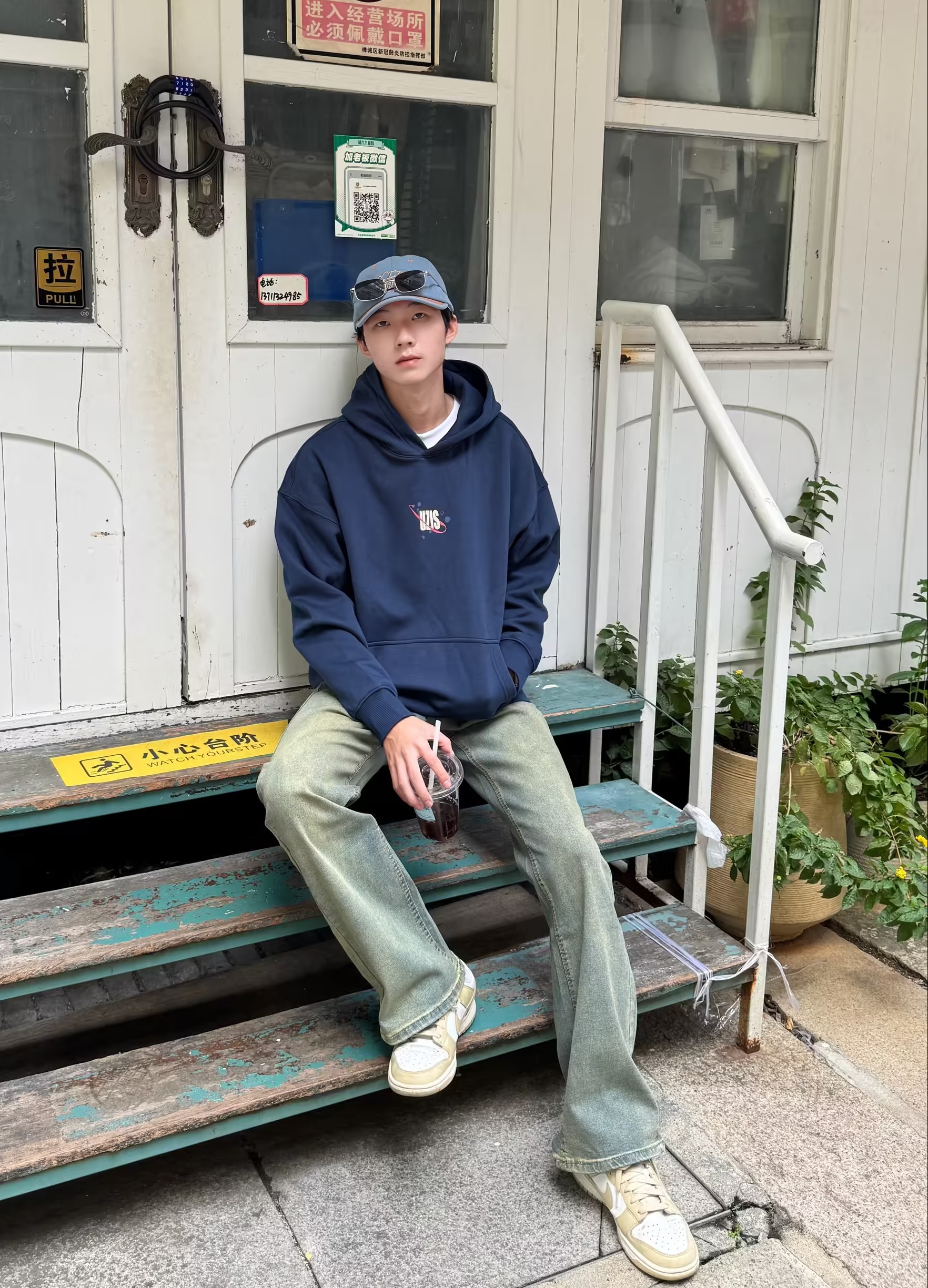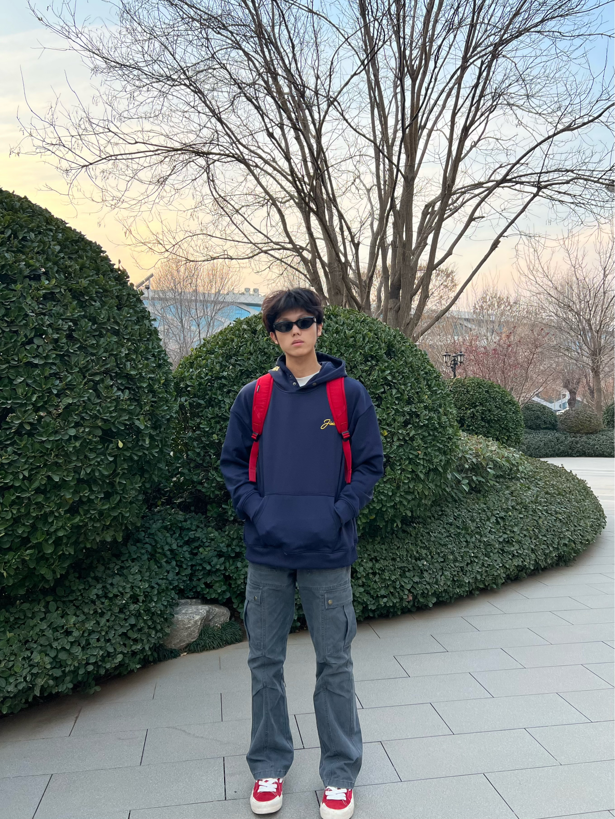 我平时就喜欢穿点有少年感的穿搭~ 这件民族风藏青卫衣完全戳中我 帽子刺绣设计精致时尚 藏青色显白还很百搭 随便搭个工装裤直接帅气出街! 最后背上我的红书包好有少年感~