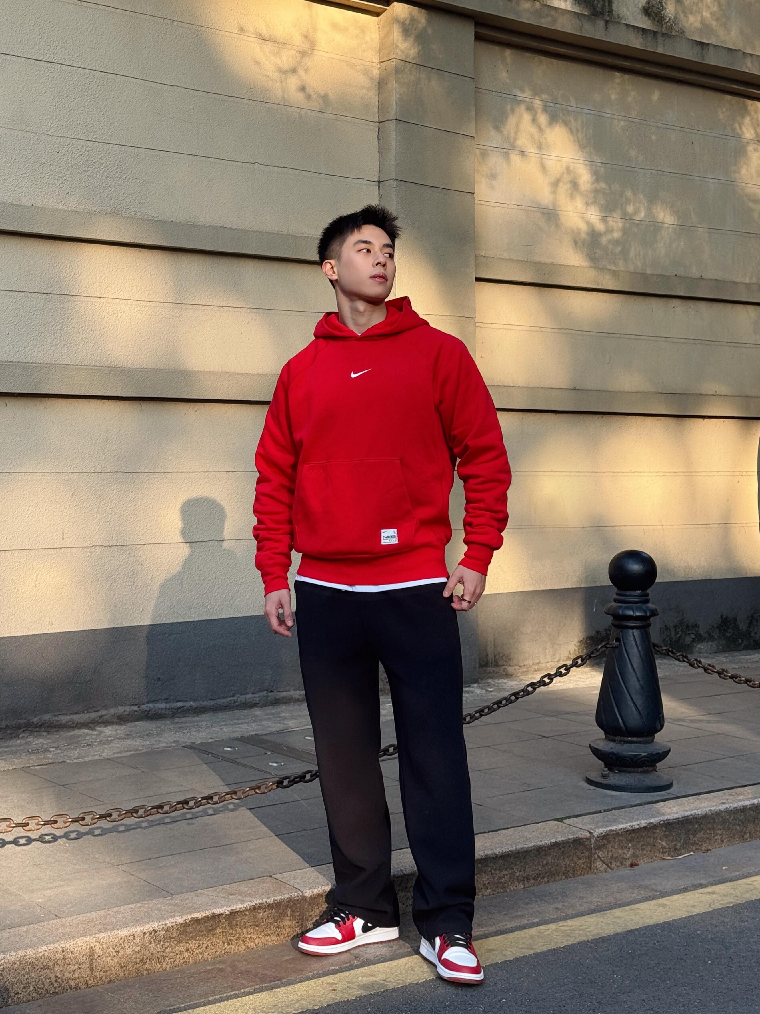 上次来沙面估计是一年前 树上已经开始挂起红灯笼了 把新年的气氛烘托得恰到好处~ - 光影照在欧式建筑上看着蛮舒意 过来凑凑热闹拍拍照心情也会不错 每到新年都需要红色给自己转转运 希望新的一年里红红火火,风生水起🔥 - 给自己一件耐克灵蛇新系列的大红色卫衣 衣服上面的刺绣细节节感拉满又充满蕴意 “春”、“葫芦”、“桃”、“铜钱”每一个都象征着对蛇年不同的展望~ - 比较少穿红色,但发现自己好像还挺合...
