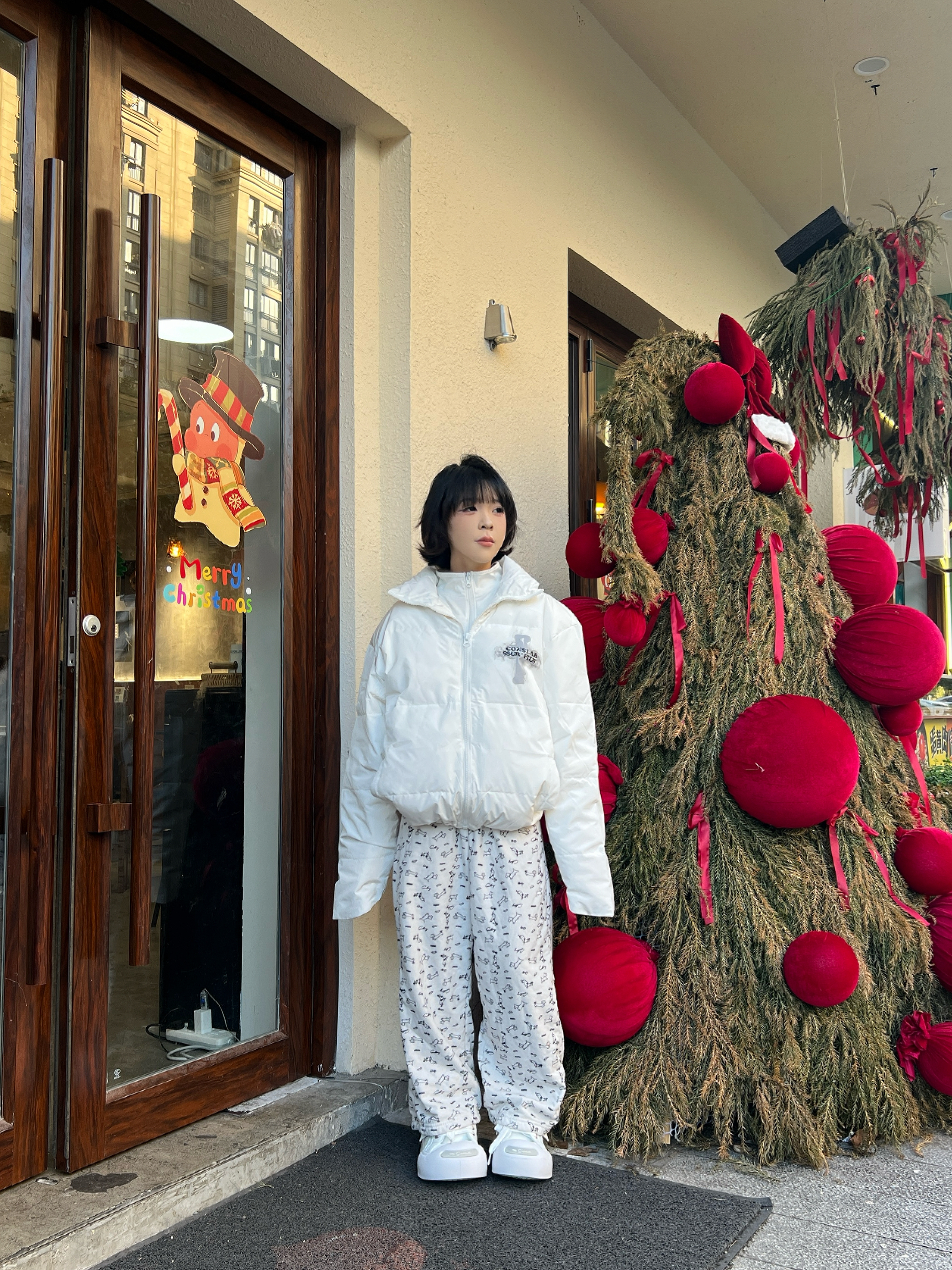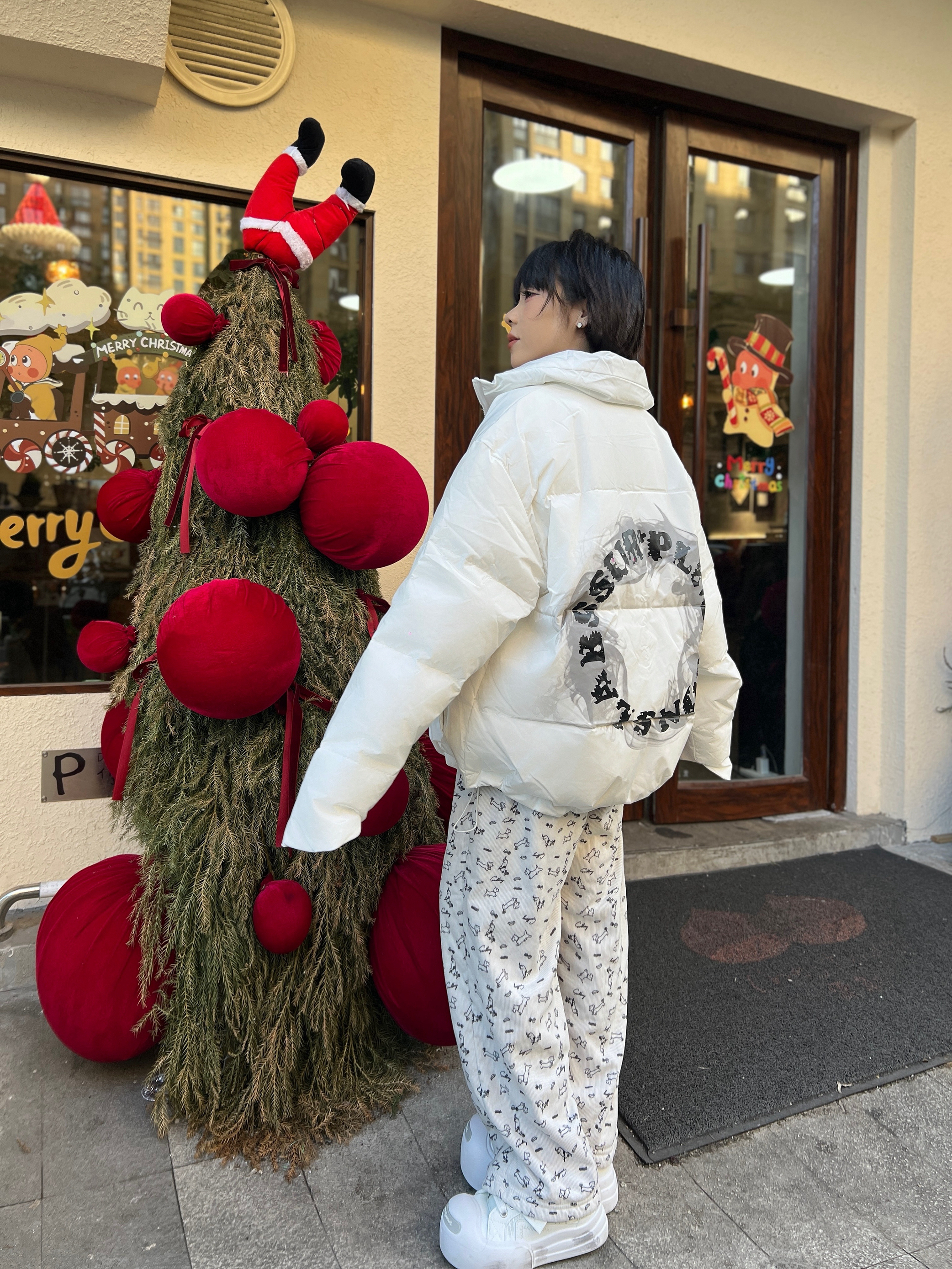 ❄️ 冬天也要酷酷出街!这件白色羽绒服,真的太爱了~ 上身巨暖还显瘦,前后的logo印花细节直接拉满时髦感✨ 搭配白色印花裤子和白色鞋子,既有冬日氛围感,又能走在街头随便一拍就出片📸超亮眼!! 酷感和俏皮感并存~下摆还有抽绳防风,get两种穿搭感觉~ 👉 不管是 通勤 / 约会 / 学生党日常,这件羽绒穿搭都能轻松拿捏,保暖又有型!