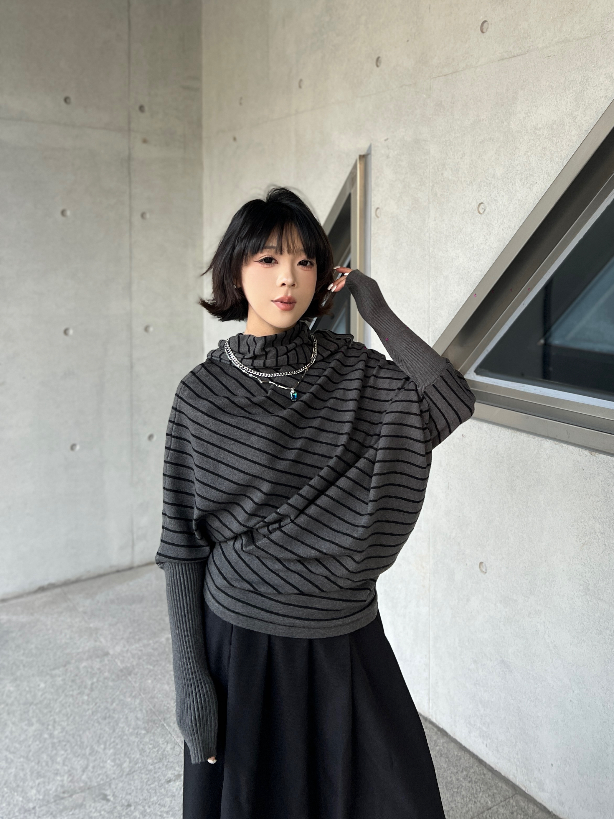 早秋通勤就选这套!灰色针织衫软糯不扎肤,不规则设计不单调,搭高腰微喇裤显腿长又利落~不用纠结搭配,上身简约高级,日常或通勤穿都合适,轻松摆脱路人感!