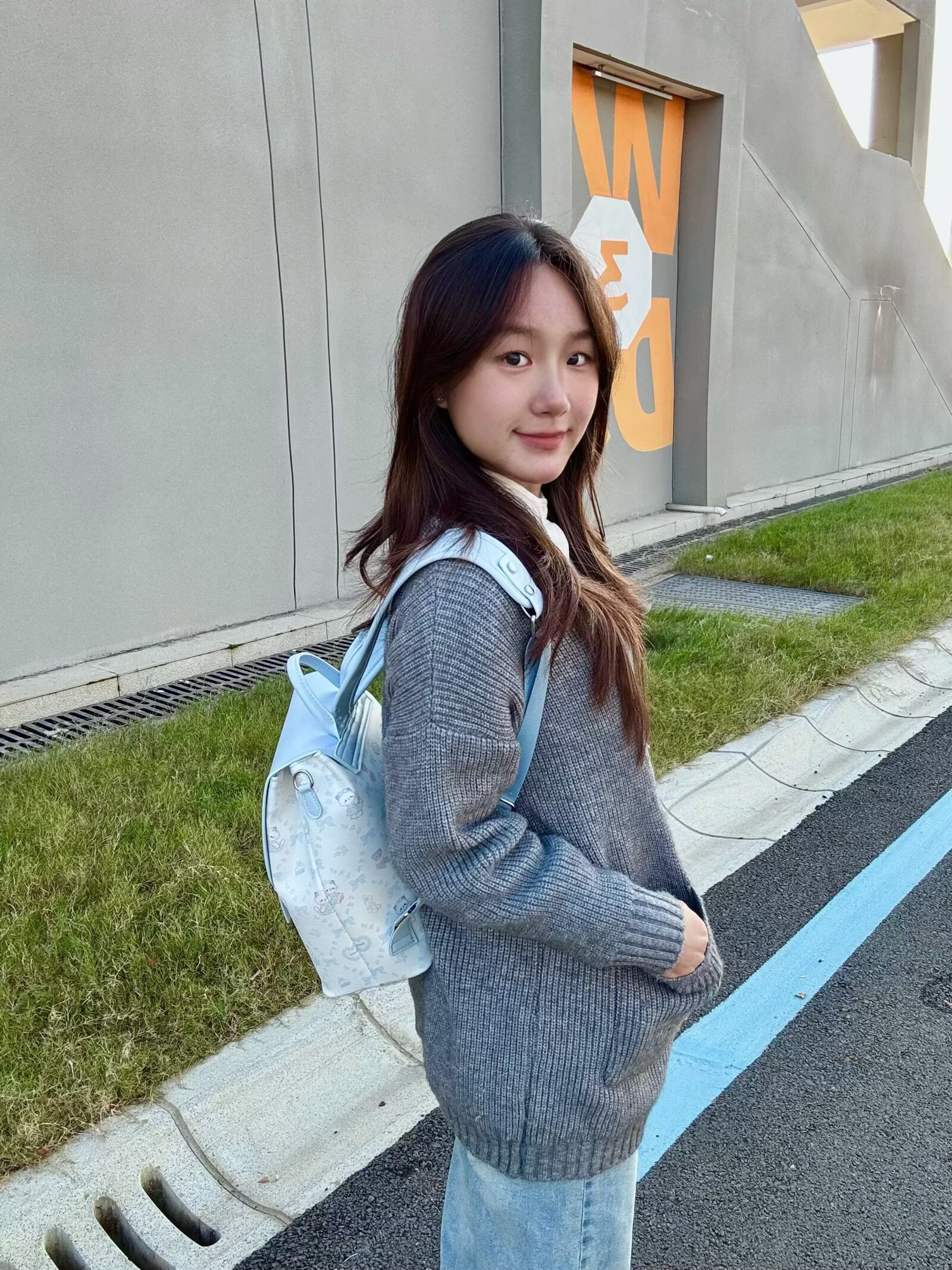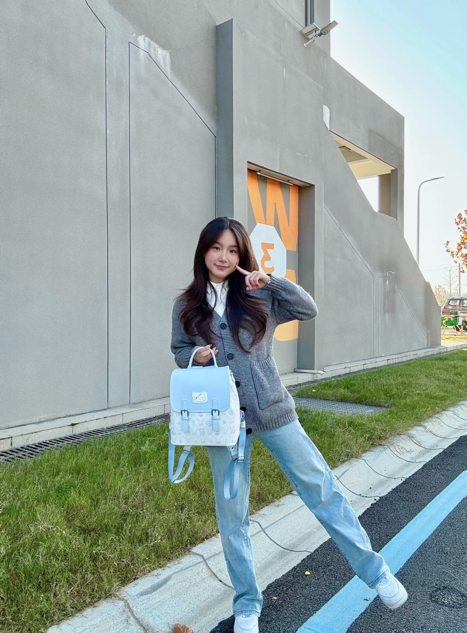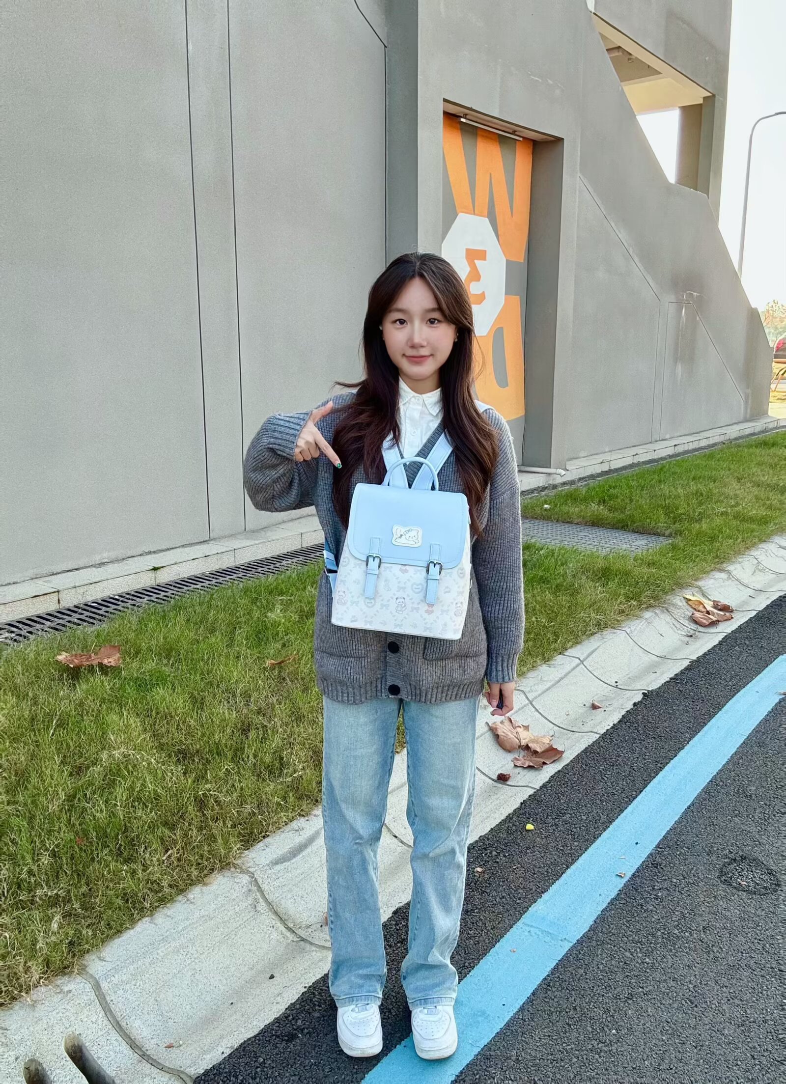 今天背双肩包~蓝白配色真的很好看呀,上面还有可爱的小动物印花和蝴蝶结元素,背在身上甜美感拉满🤩整体是皮革的面料,很硬挺背在身上也不会软塌变形~😆而且容量超大,装书和平板绰绰有余呢~☺️无论是早八通勤还是日常背出去玩都超合适!😉