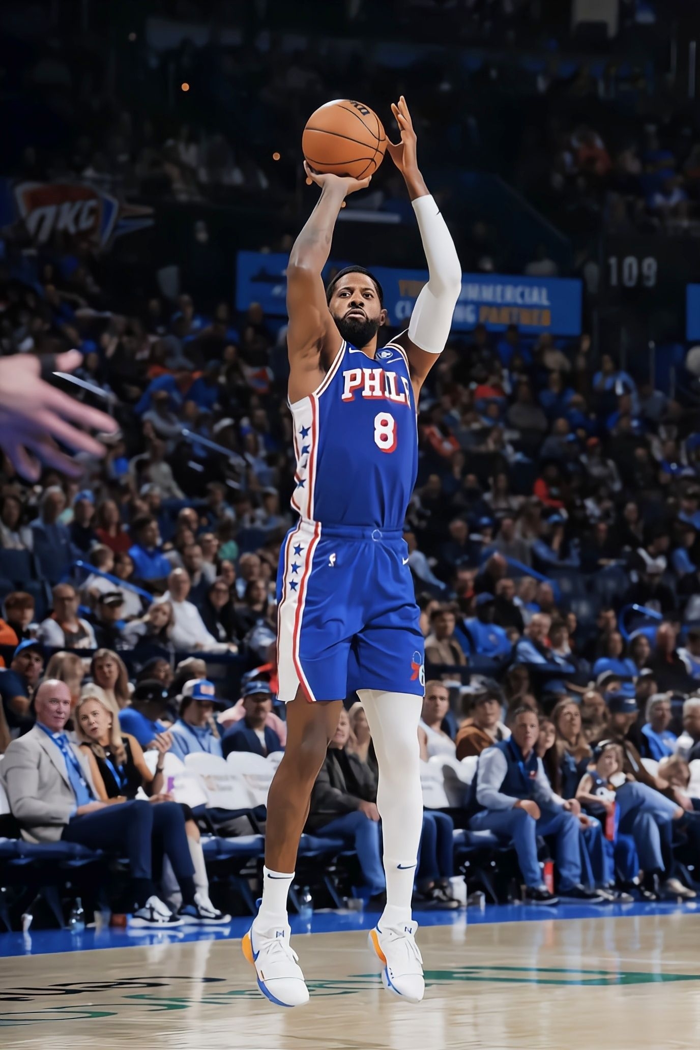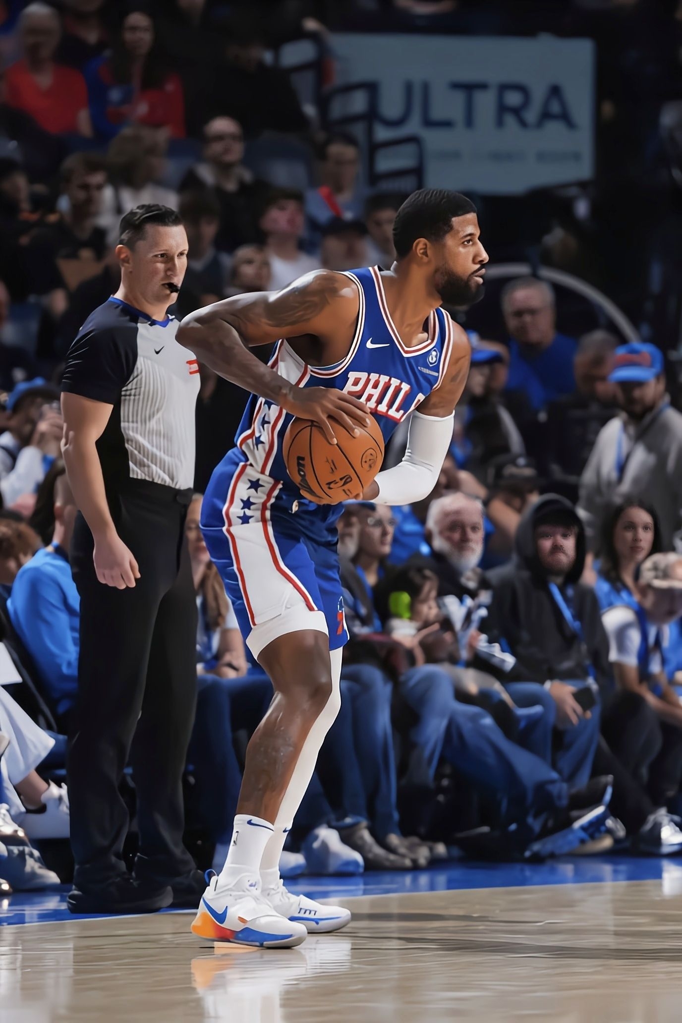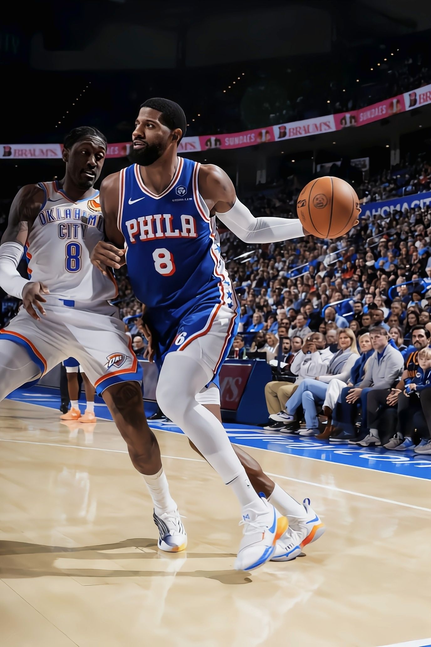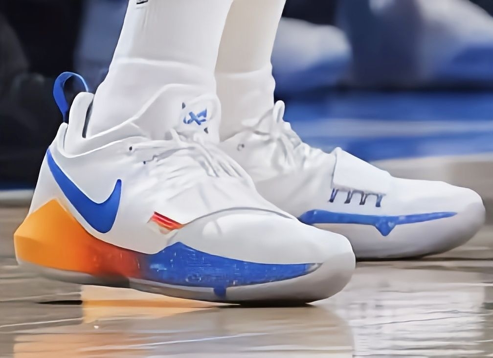 76人客场打雷霆的比赛,虽然球队104-129输了球,但乔治脚上的鞋直接把我拉回他的雷霆时期——是Nike PG1 PE的雷霆配色,白蓝橙的搭配太戳情怀了。 这场乔治首发打了29分钟,11投4中砍了12分4篮板3助攻,数据不算炸裂,但这双PG1一亮相,满脑子都是他当年在雷霆打球的画面。作为他的第一代签名鞋,PG1的鞋型设计现在看依旧经典,雷霆配色更是把俄城的蓝橙基因刻在了鞋上,鞋身的线条和缓震...