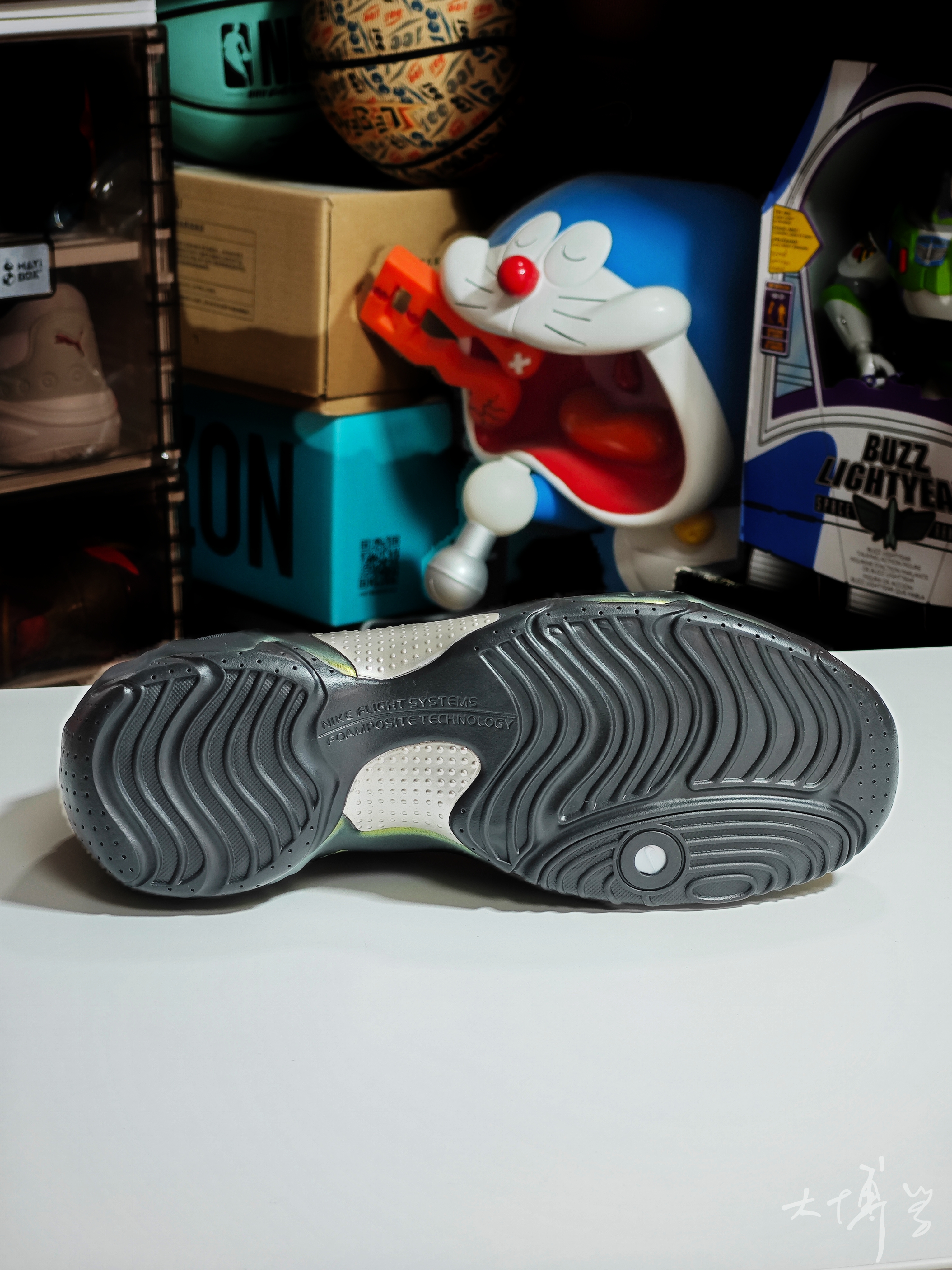一双充满未来科幻感的篮球鞋 鞋面和喷泡类似,也是一次成型 但外形看起来比喷泡秀气许多 可能是因为拉链鞋盖的原因 鞋楦偏瘦,很多高脚背的朋友需要买大好几码 邓肯,加内特,基德,白巧克力...曾经都上脚过 这些球星能突能投能抢断 也算是全能战士了 前后zoom镶嵌在鞋垫,脚感真的很棒