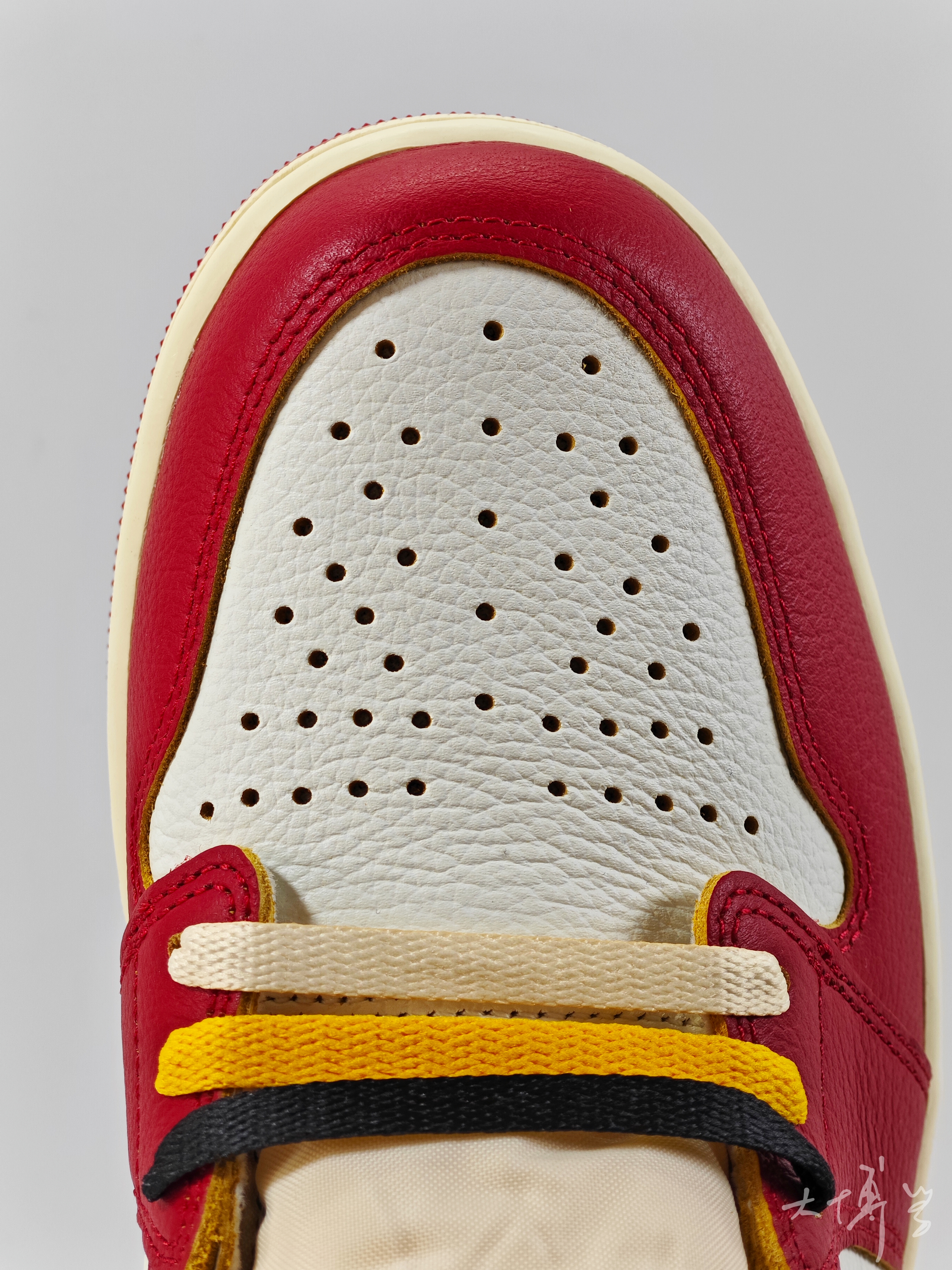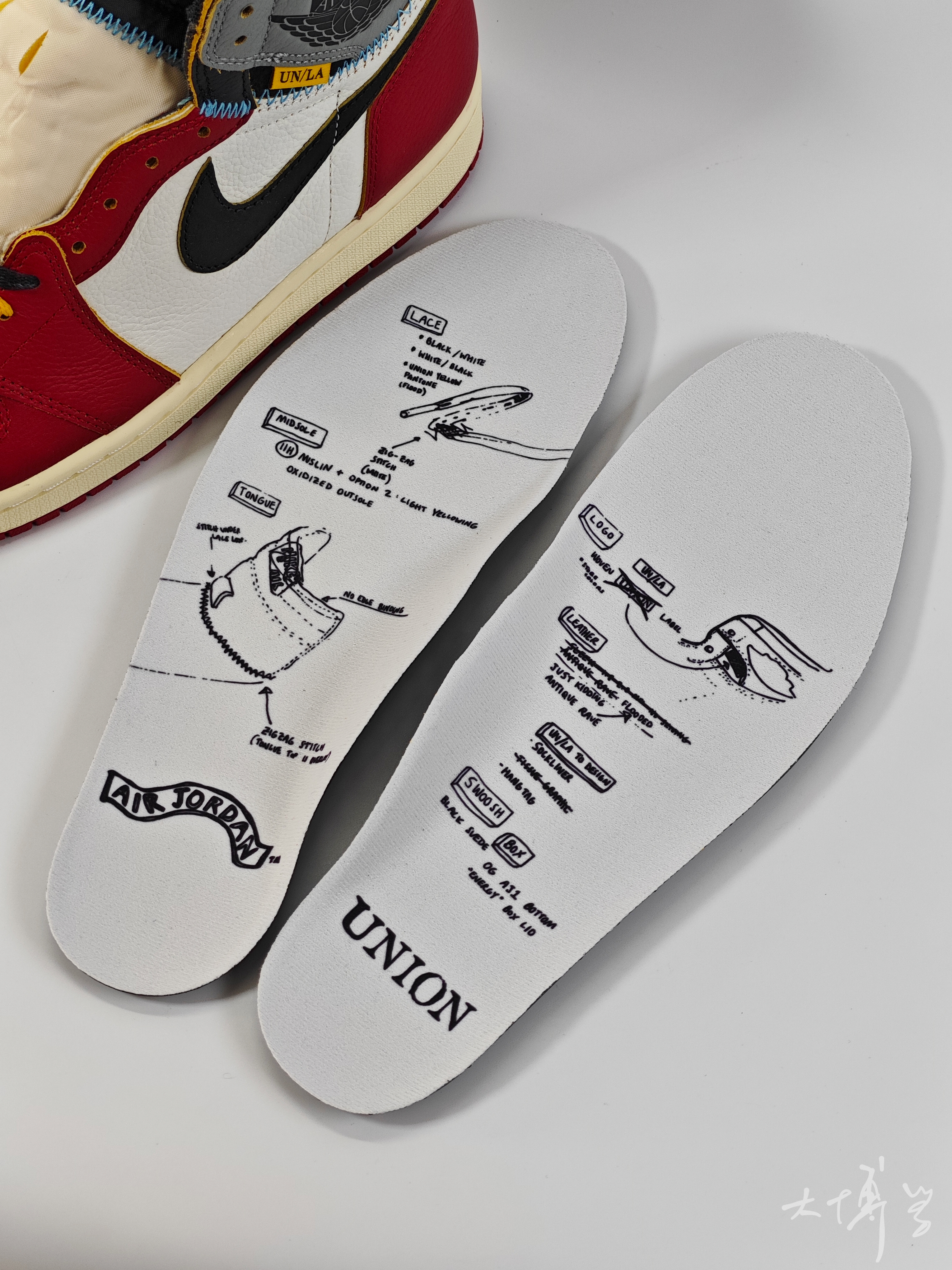 一双union联名的AJ1 得到这双鞋并不难,对此我很开心 因为不论鞋面质感,还是细节设计 还有配色方案,都令我很满意 在我看来这双union AJ1 就像一块被掩盖的金砖 即使暂时被埋没、不被关注 最终也会凭借自身的光芒被发现和认可
