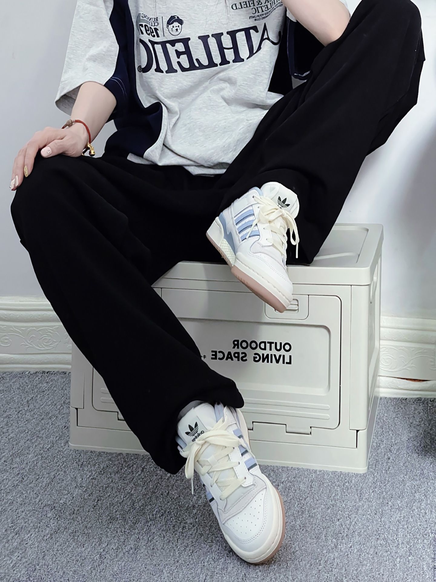 五一跟朋友逛公园☀️这身穿搭被问了好几次链接!👋 脚上的阿迪白蓝Forum🤍💙奶白拼浅蓝超夏天~鞋面透气,走一下午脚也不闷。上衣是宽松美式短袖,裤子选了垂感好的透气直筒裤,整套穿起来舒服又清爽😎朋友说我这身少年感拉满,鞋子尤其亮眼💕 ‼️小建议:鞋子选平时穿的尺码就合适,搭配浅色系T恤或牛仔短裤都很可✅夏天出游穿它准没错~