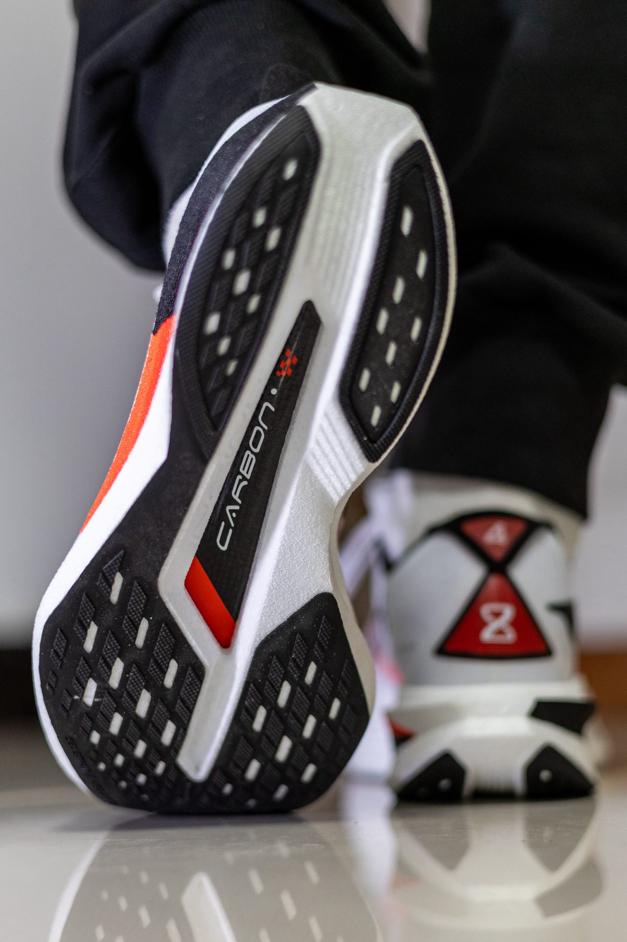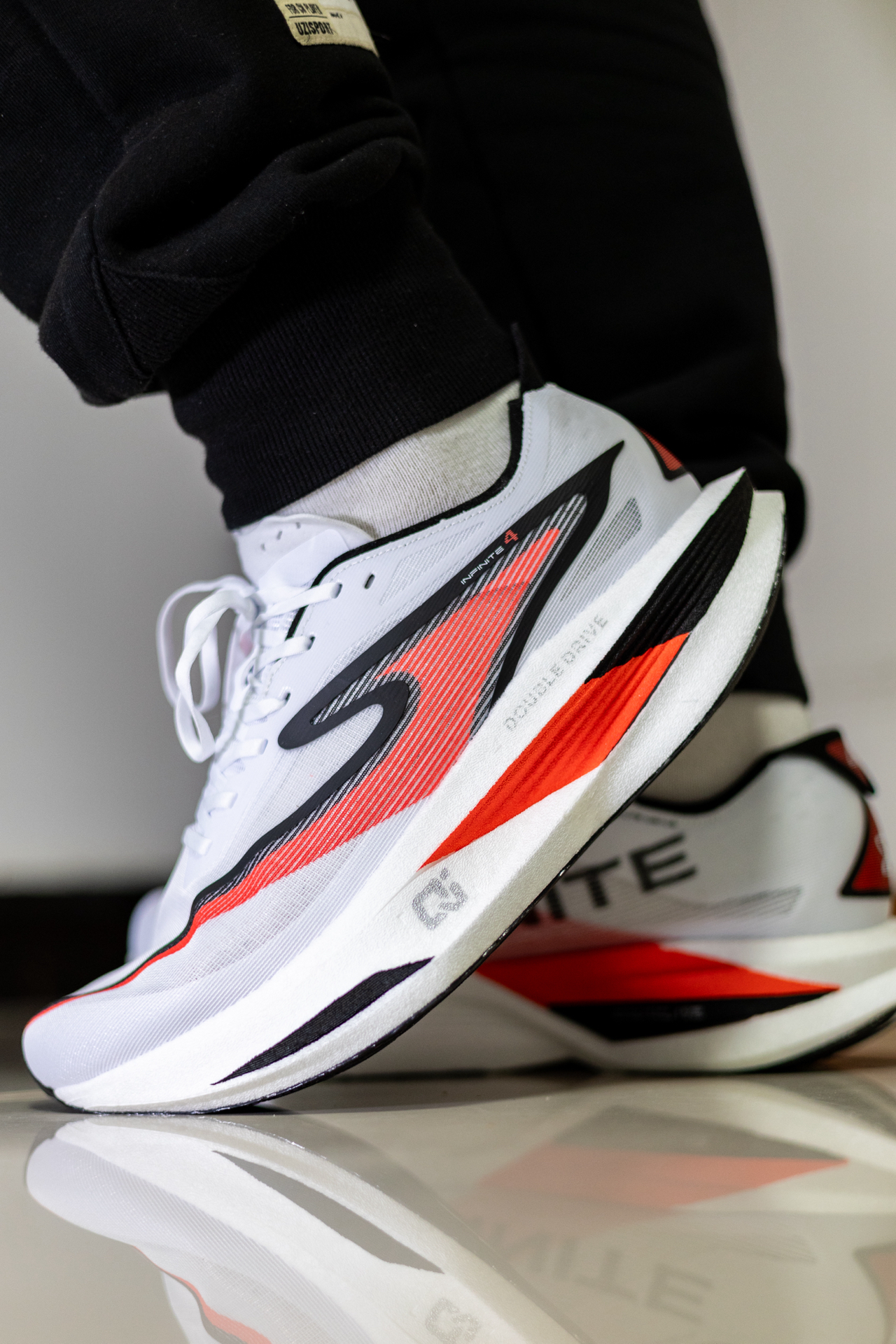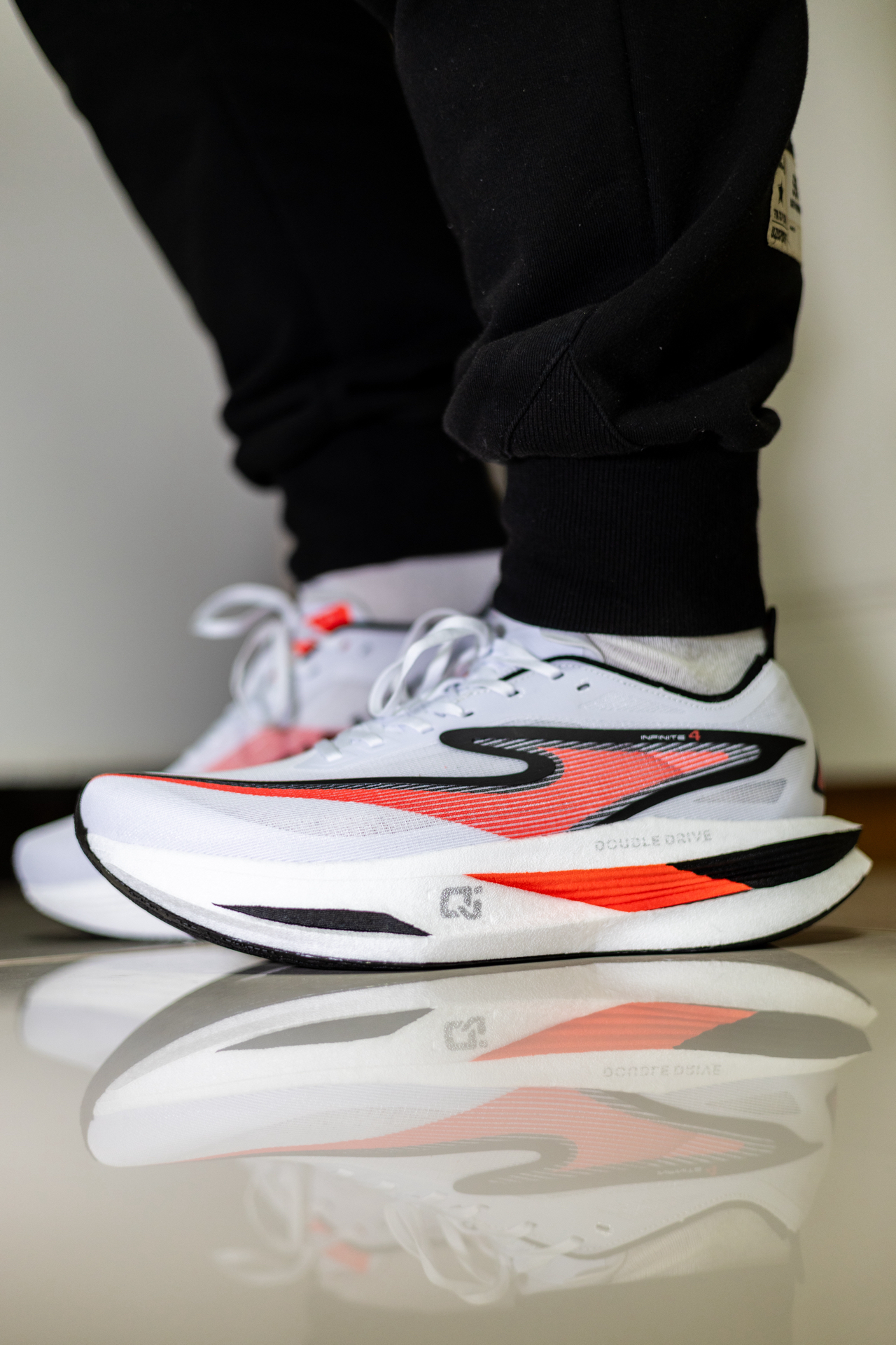 芷境4红白黑的撞色设计直接戳中了我,不是那种花里胡哨的配色,而是简约又有运动感的视觉冲击,鞋侧的流线型线条加上“INFINITE”的字样,往脚上一套,哪怕不跑步,日常搭运动裤出门也超吸睛。 我本来还担心这种竞速风格的跑鞋会偏硬,结果上脚的瞬间就被打脸了,鞋楦的包裹感刚刚好,不挤脚也不晃脚,脚背处的网面材质软软的,真正的惊喜是跑起来的脚感。起步的那一刻,能明显感觉到鞋底的双层炁科技在发力,不是那种...