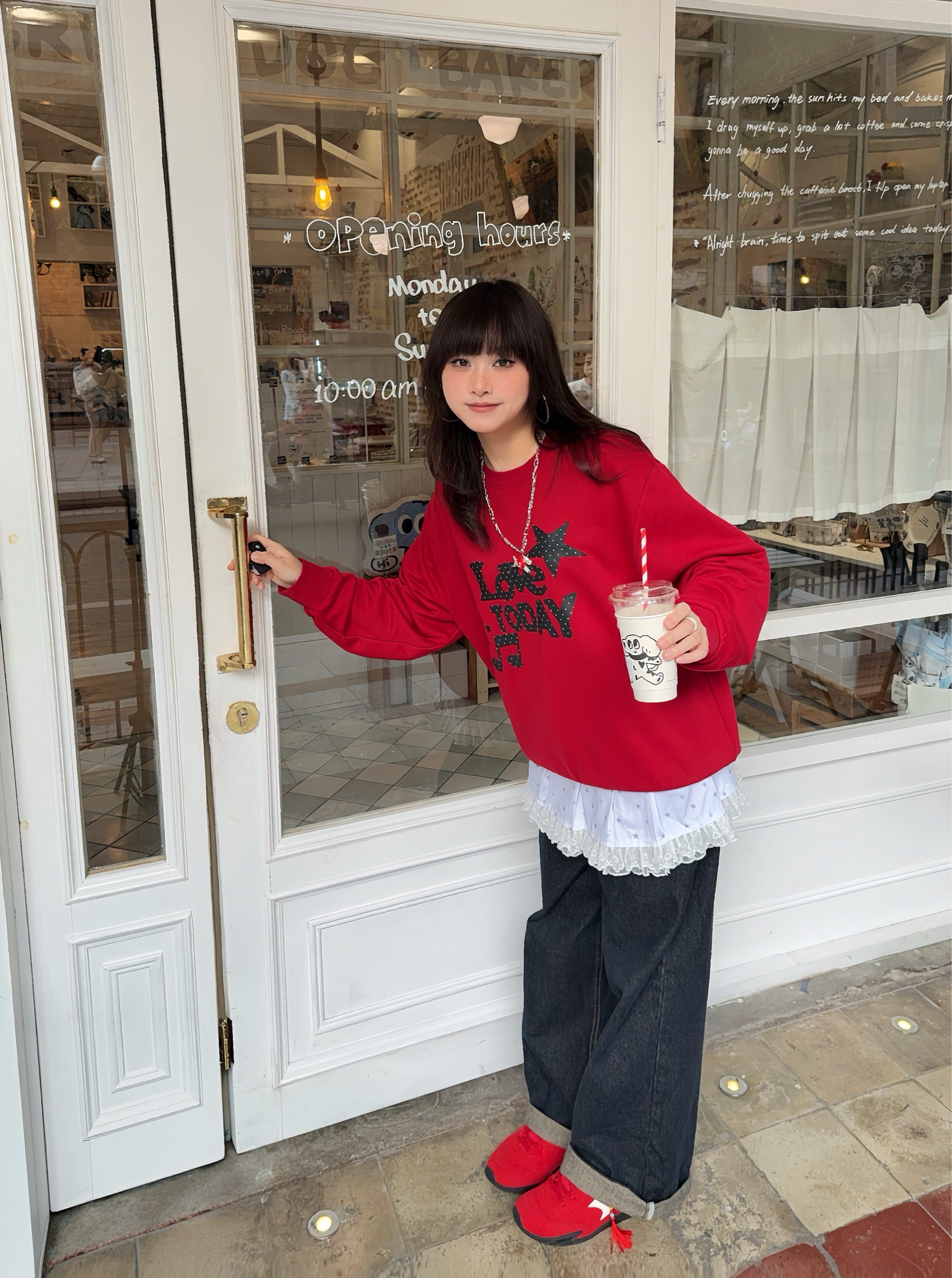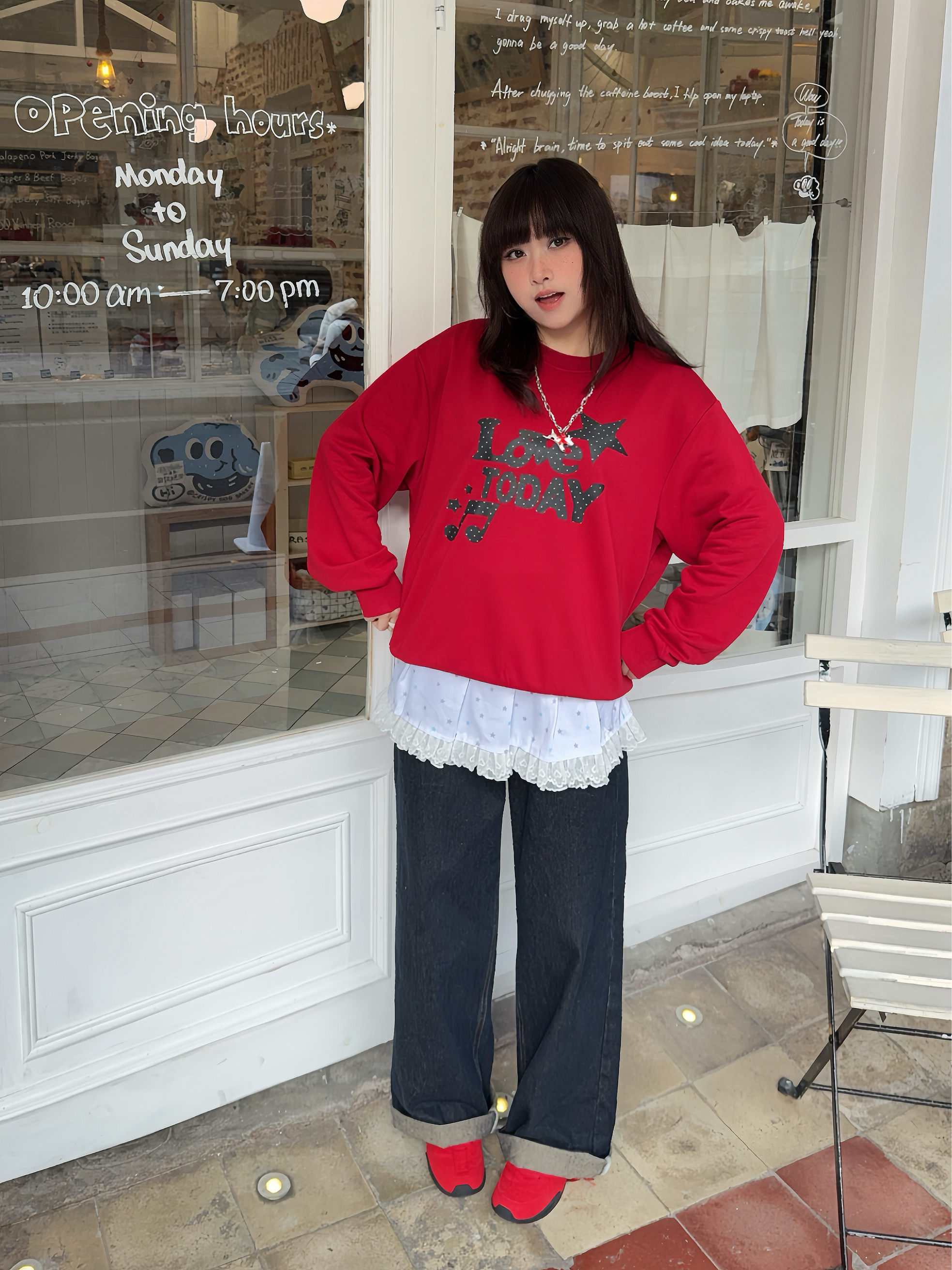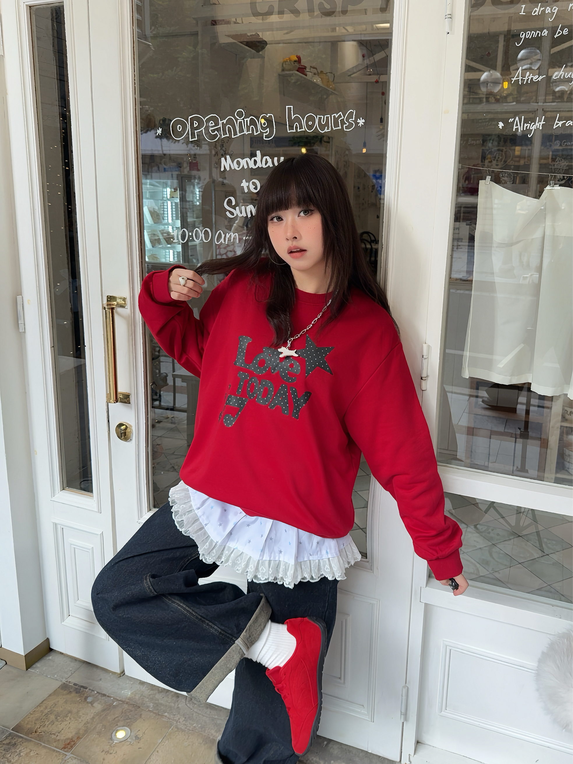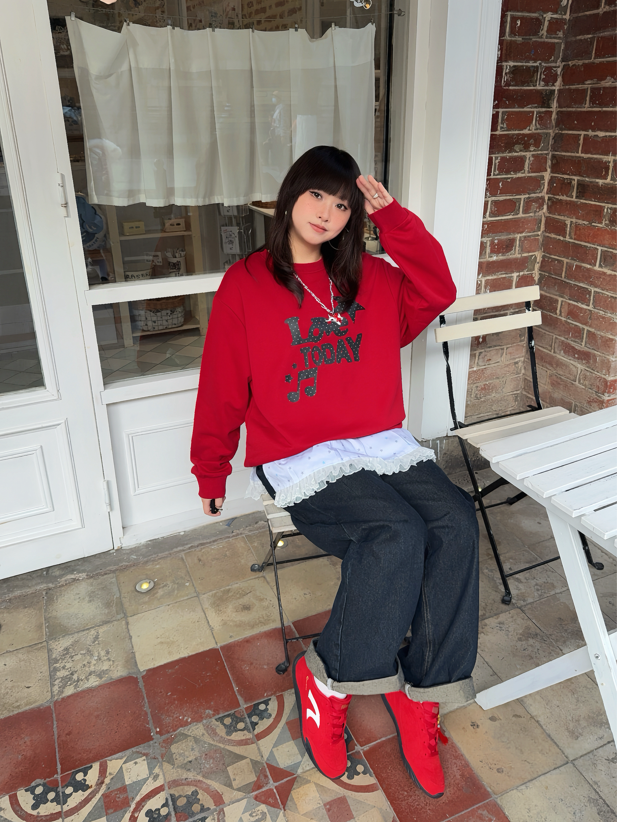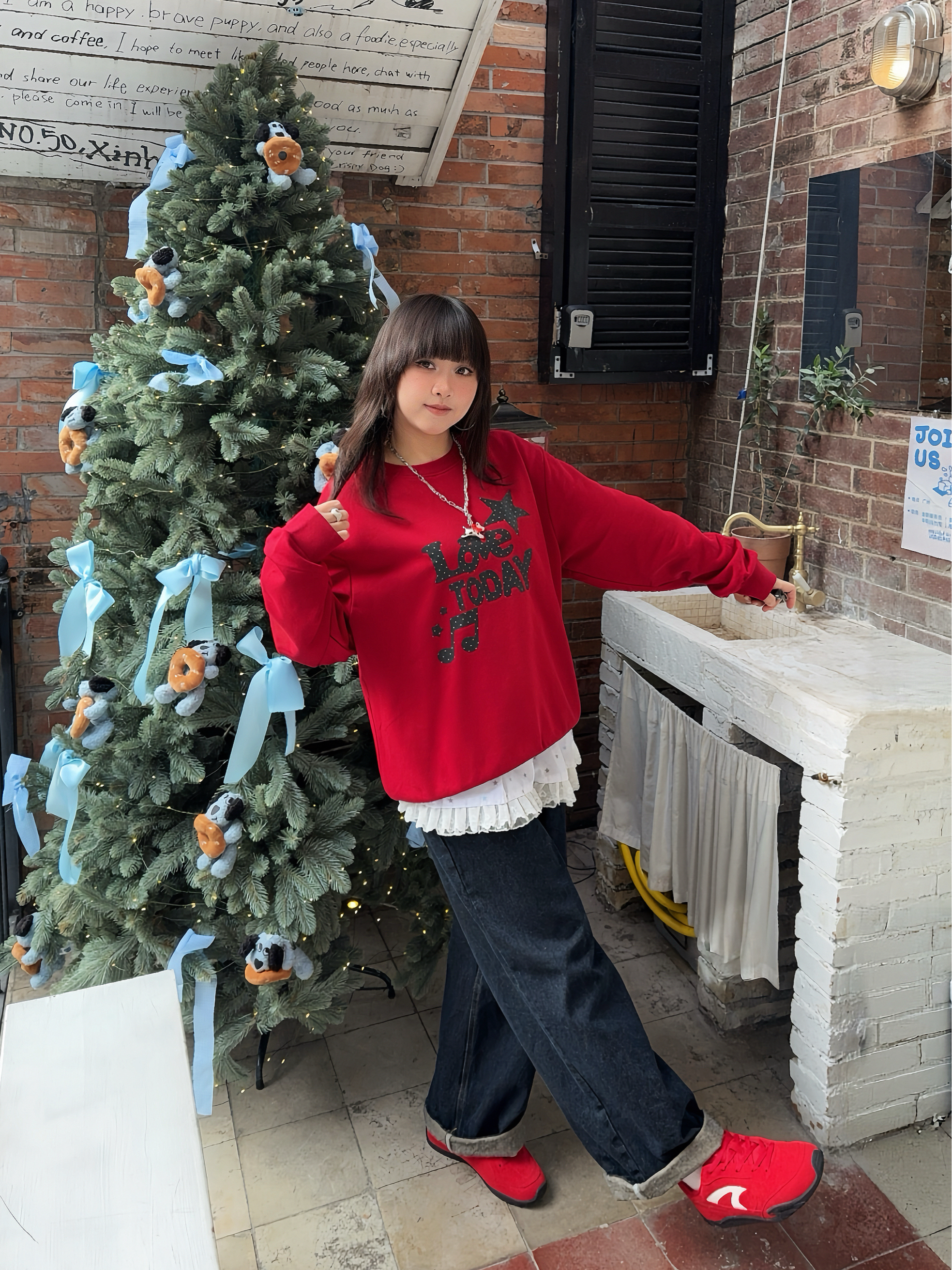 年度穿搭之🍎很适合双旦、新年穿搭的look来啦 ☑️红色系卫衣搭配复古牛仔裤,叠穿一个屁帘增加层次感!鞋子pick了 乔丹 薄底德训鞋👟复古红给秋冬、新年增加一抹亮色,而且它也脚感8错,鞋侧还有🧧字装饰,用这双红色系赛车鞋开红运8🏮~
