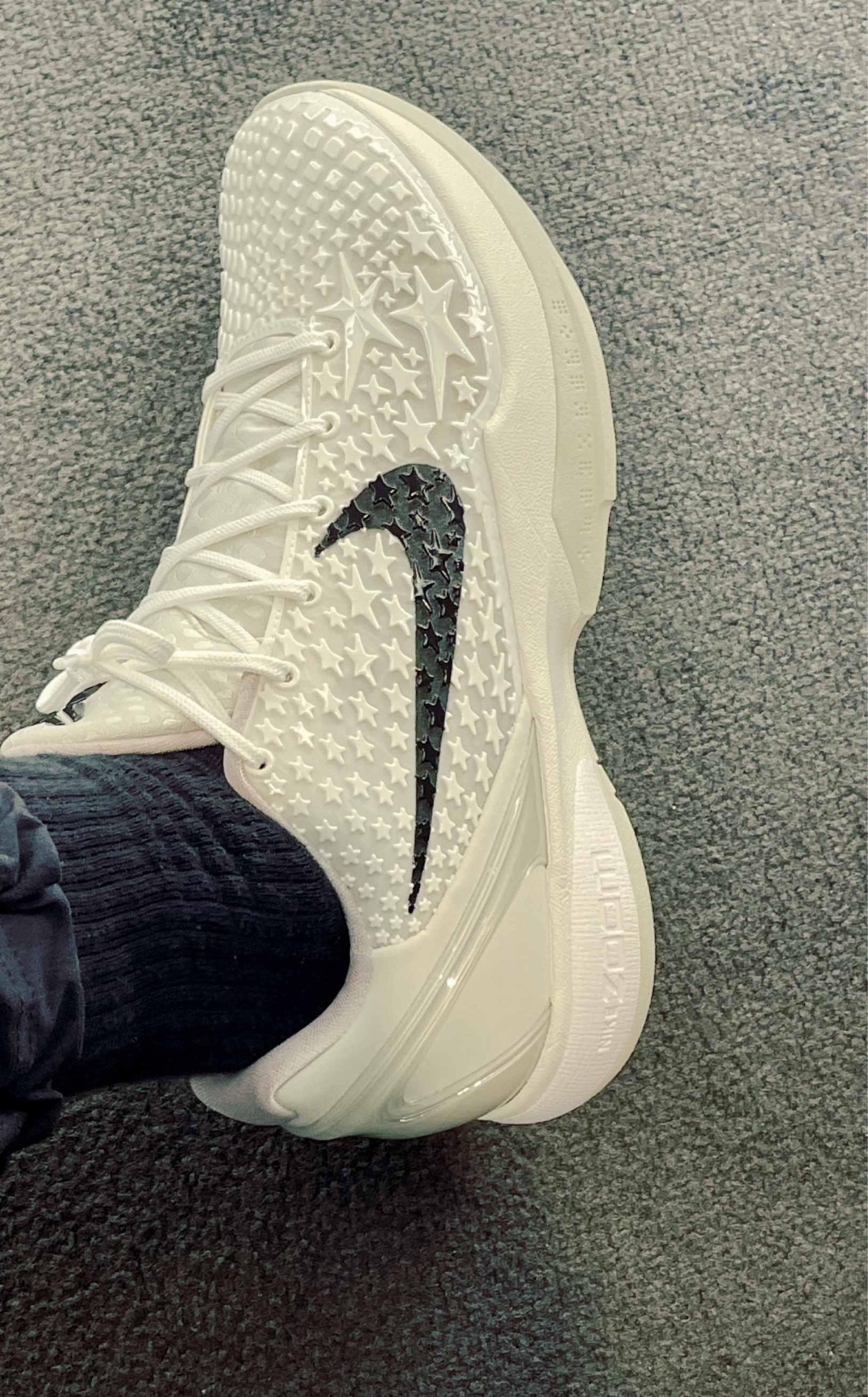 这双Kobe 6 Protro All-Star 2.0是Nike为纪念科比2011年全明星赛推出的复刻款。鞋面采用珠光白工程网面,透气又有质感,幻彩液态银Swoosh+后跟3M反光星环,细节满分识。低帮设计,前掌ZoomTurbo+全掌Phylon中底,缓震又灵活,蛇鳞波浪外底抓地力超强,耐磨性提升50%( 。无论实战还是收藏,都是球鞋控必入的高颜值战靴!