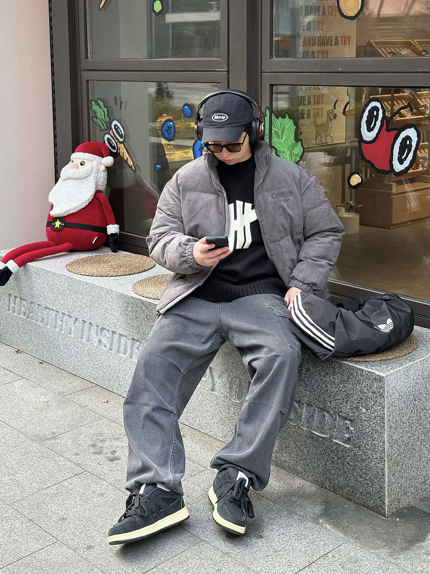 哈喽👋🏻大家好哇 这里是🪨石地夫的穿搭小日记📝 - 秋冬我不喜欢穿太多🙅♂️ 一般里外加起来不超过3件🤏🏻 今天出门T恤打底➕ #UNDEFEATED 毛衣🖤 套上一件 #CHINISM 棉服搞定上半身🆗 下半身 #beams 工装裤是我秋冬常穿的裤子 防风又保暖☑️ 一双 #The Simpsons/辛普森一家 黑色板鞋极简又百搭👏🏻 米色鞋底撞色很复古✨ 这样一套黑➕灰的搭配就很酷啦...