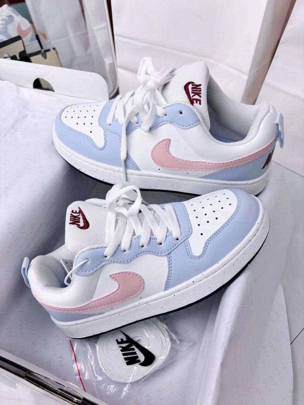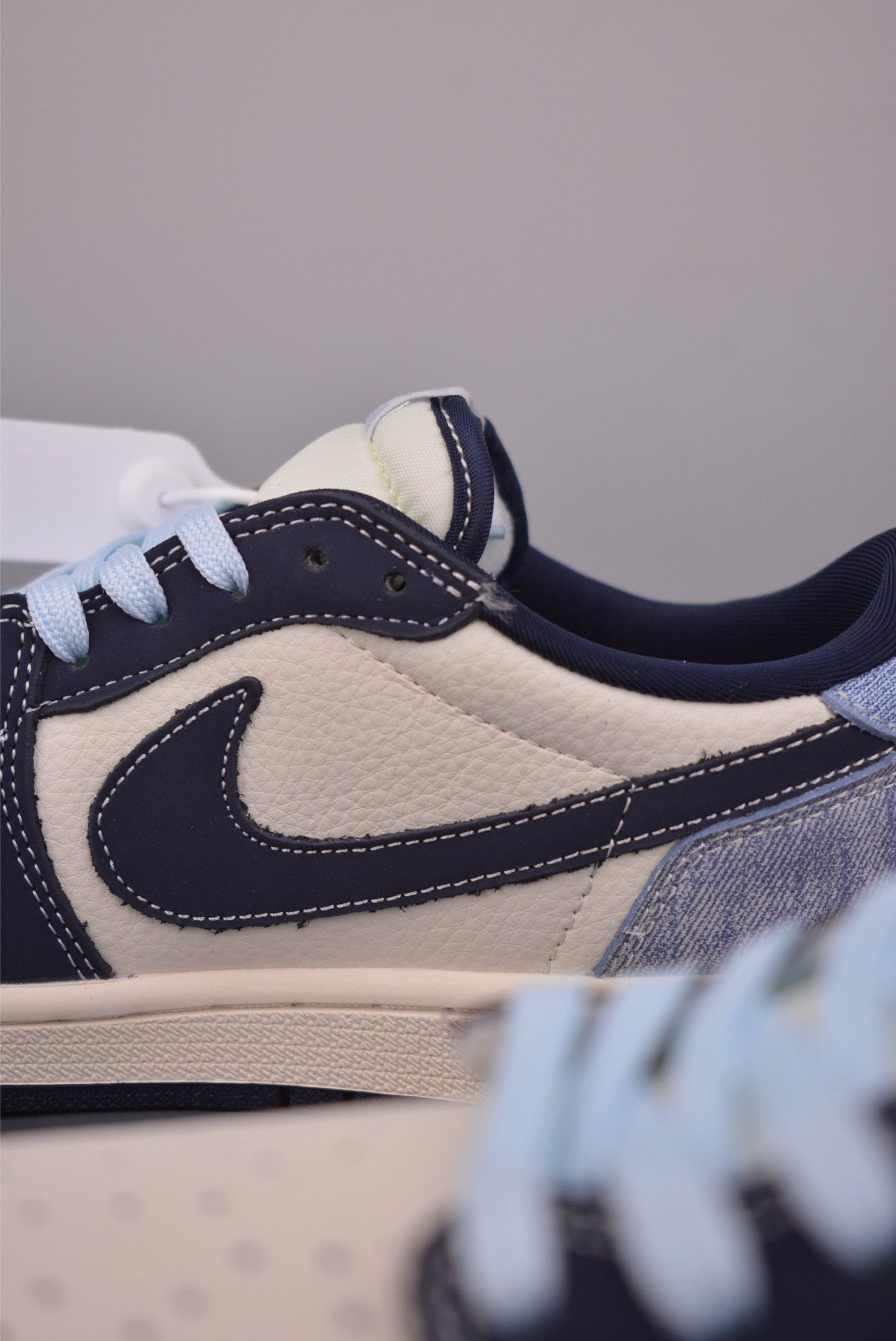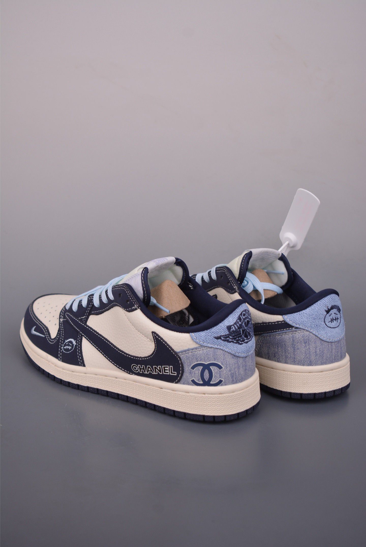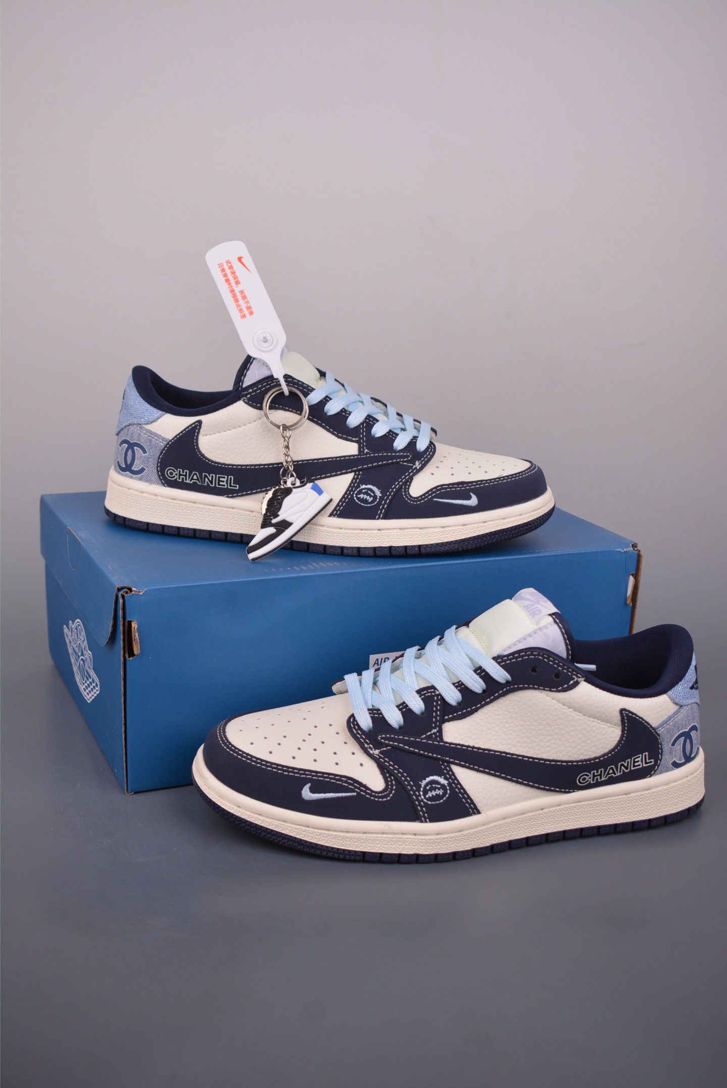 🔥【Nike x Chanel 深度测评】这双鞋根本是奢侈品圈「降维打击」! 开箱瞬间被高级感暴击——钴蓝鞋盒像块迷你香奈儿浮雕艺术品,钥匙扣里嵌着会呼吸的小鞋模型(细节控直接尖叫!)。重点看鞋身:灰调背景里,乳白皮革鞋面被浅蓝鞋带勾勒出冰川纹路,Nike Swoosh与经典双C金属标碰撞出银河既视感。 上脚实测更绝!鞋舌暗藏CHANEL压纹,橡胶底却藏着Nike祖传缓震基因——踩着云...