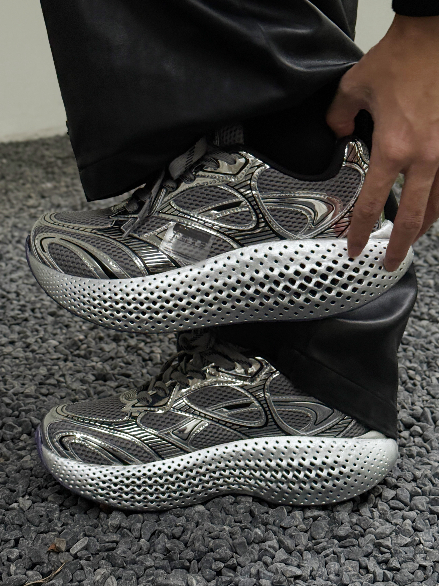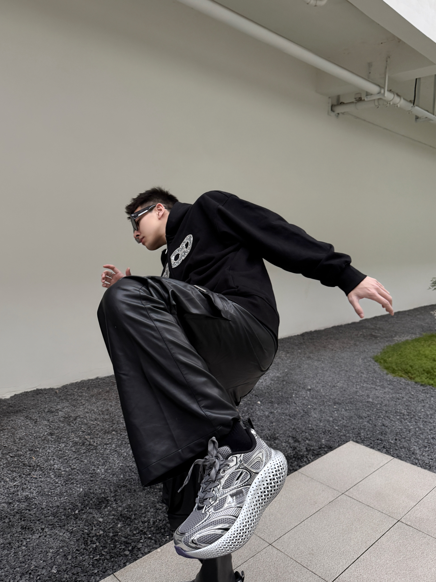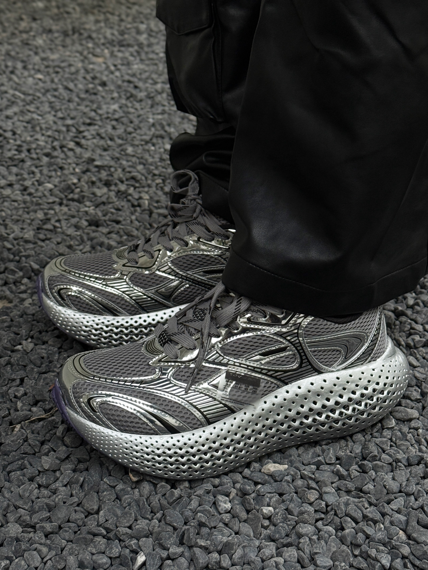空山基×xVESSEL联名鞋:把未来机械美学踩在脚下 空山基和xVESSEL的这款联名鞋太戳未来感了——银白色的镂空鞋身揉着机械肌理,金属质感的线条像科幻片里的机甲部件,镂空设计还藏着透气的小心思;搭全黑钻绣卫衣+亮面皮裤时,冷银色鞋身直接成了整套穿搭的视觉锚点,暗黑街头风里瞬间跳出未来机械的酷感。 这种把艺术联名和街头穿搭结合的设计,随便一套就是行走的“未来机械美学”。 #空山基xVESS...