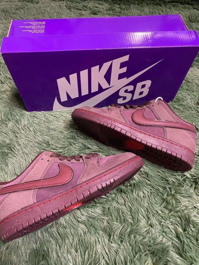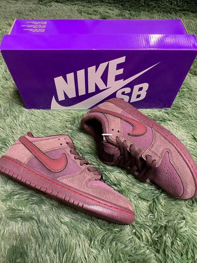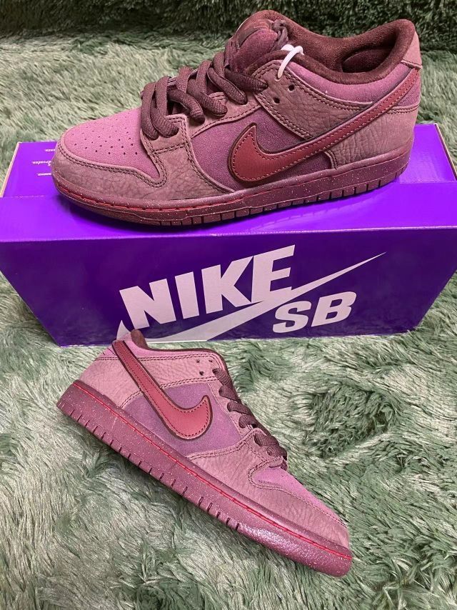 Nike Dunk SB "BurgundyCrush"Valentines "love found" 货号:FN0619-600 这款Nike SB Dunk 采用别致的酒红色调,鞋面以不同材质的拼接为主,结合了柔软的麂皮与皮革质感,增添了层次感。深浅不一的酒红色搭配精致的红色Swoosh,整体设计优雅而低调。鞋底的泼墨细节更是点睛之笔,为这款鞋增添了独特的街头气息。 经典的Nike D...