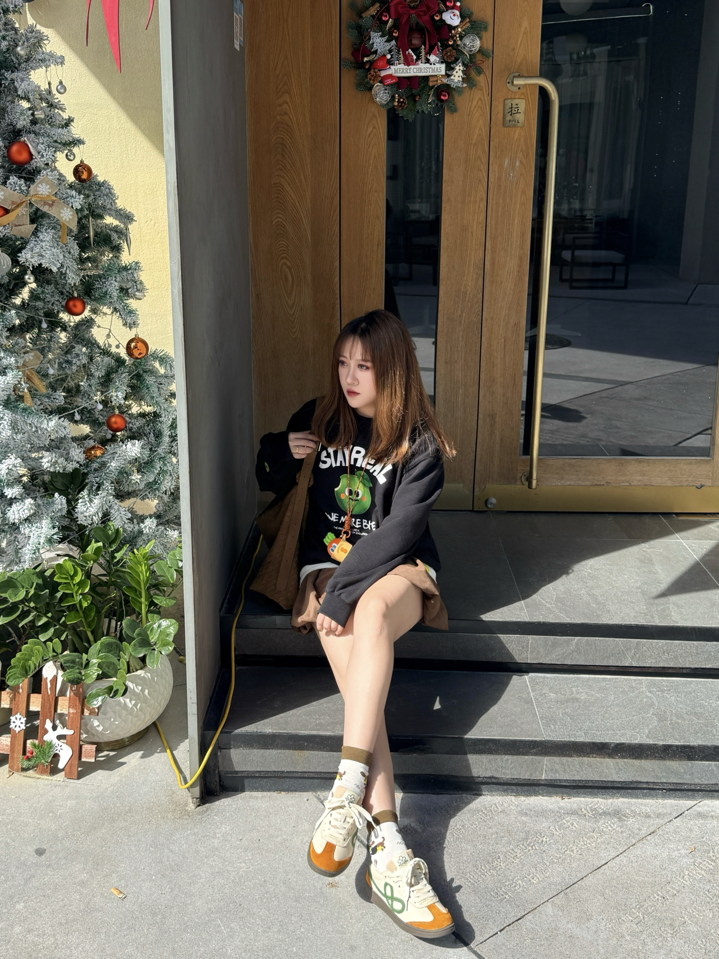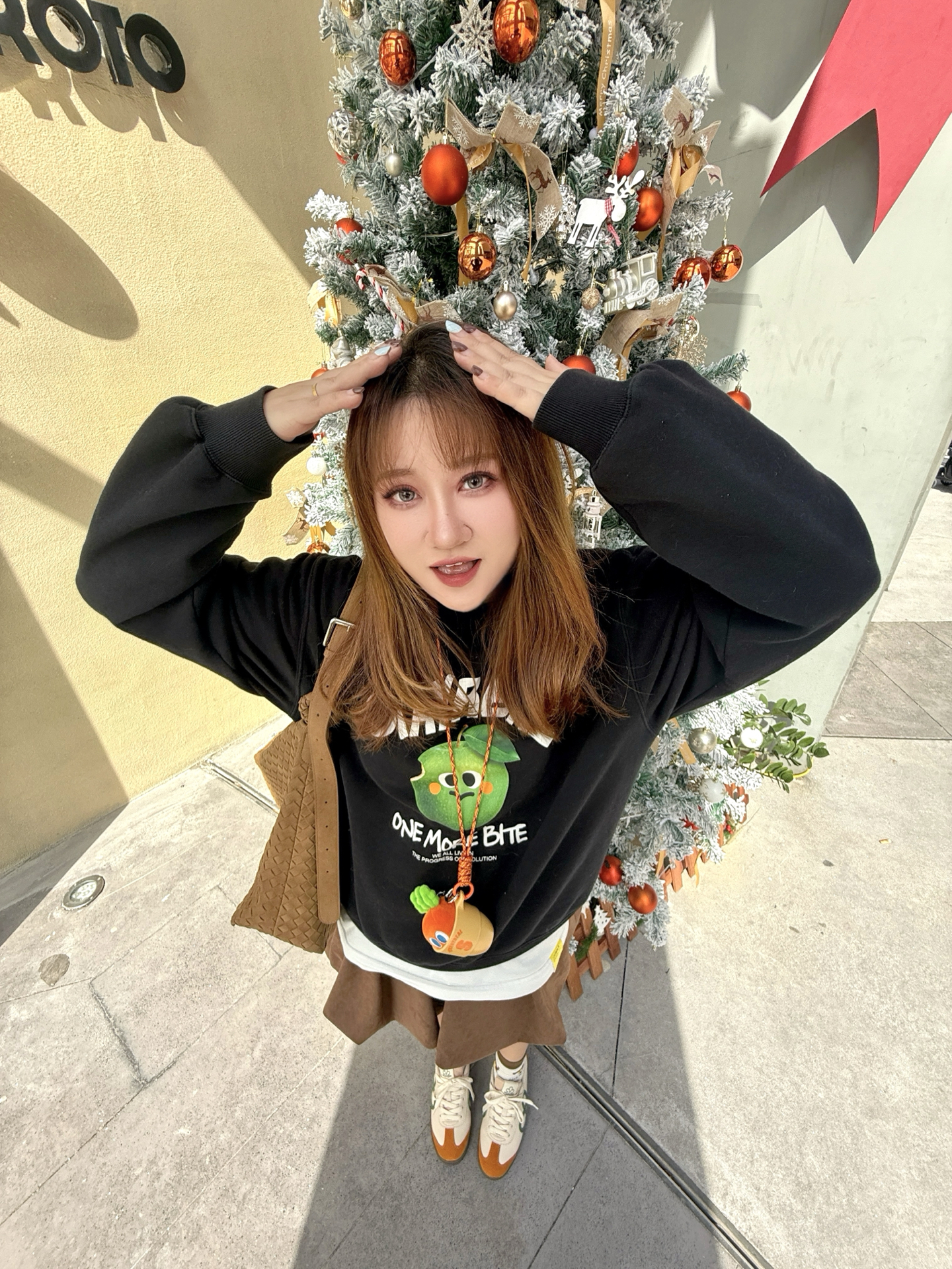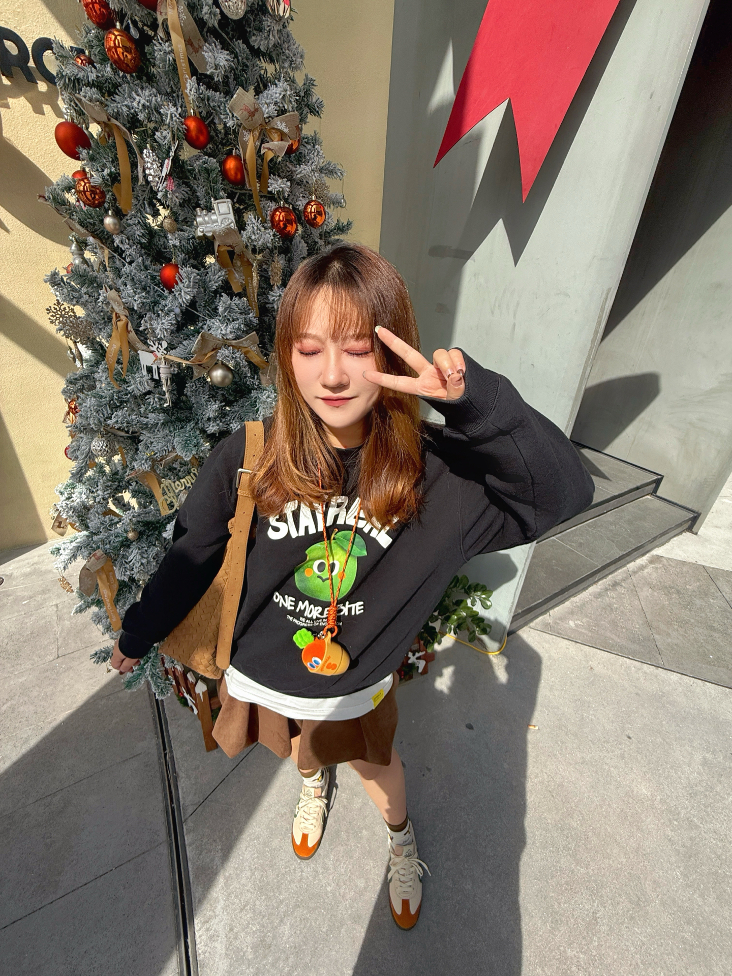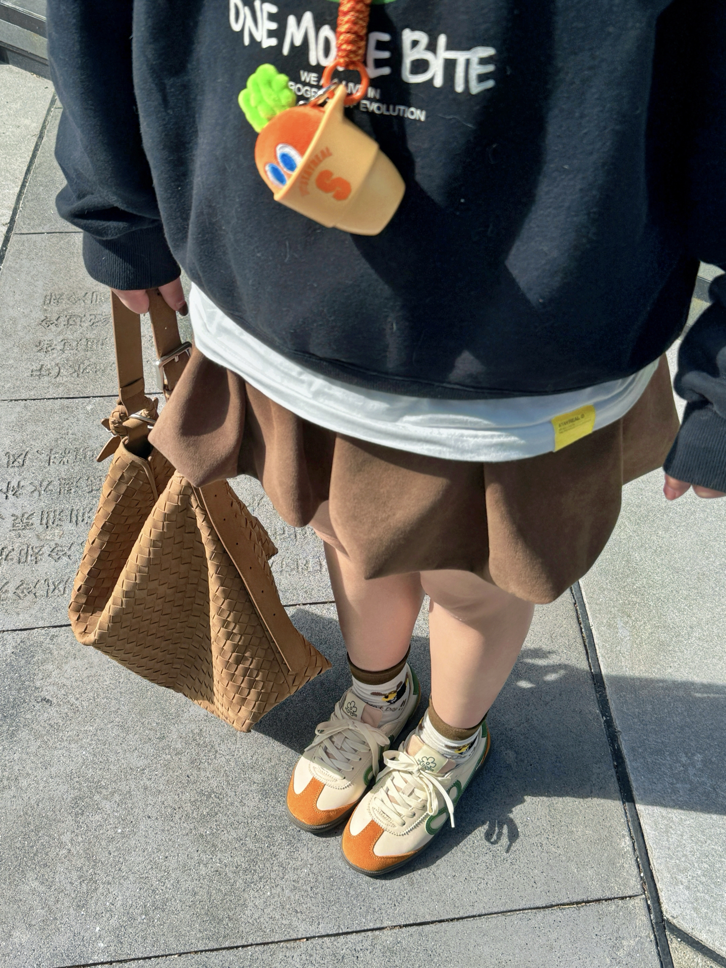 谁懂啊!有时候精心搭配一身 最后风头全被鞋子抢走👟 ▪️ 𝗔𝗽𝗽𝗹𝗲 𝗼𝗳 𝘁𝗵𝗲 𝗲𝘆𝗲 黑卫衣上的白色小苹果 是整套look的第一个呼吸感开关🍎 白T下摆和领口露出的那一道边是刻意的“不刻意” 个人感觉 这种叠穿的妙处就在于那份松驰 好像随便一套就出门了 但镜子前的五分钟只有自己知道👌 ▪️ 𝗧𝗵𝗲 𝗖-𝗦𝗹𝗼𝘁 𝗦𝗻𝗲𝗮𝗸𝗲𝗿𝘀 重点来了!今天的鞋真的有点东西 棕黄鞋身像是被秋阳晒透的枫...