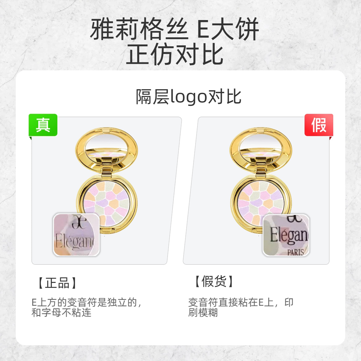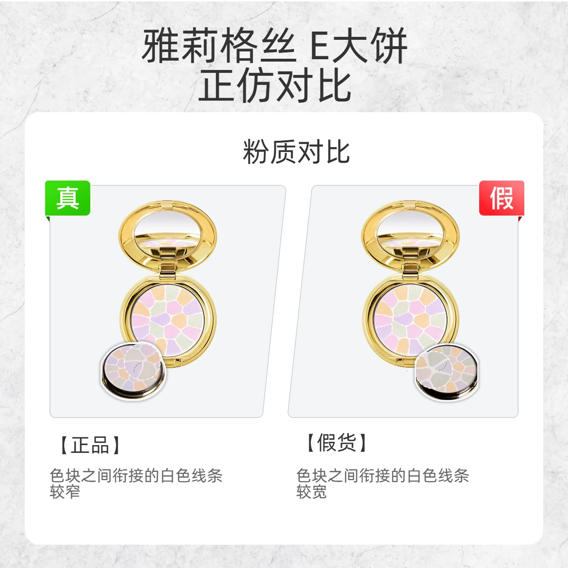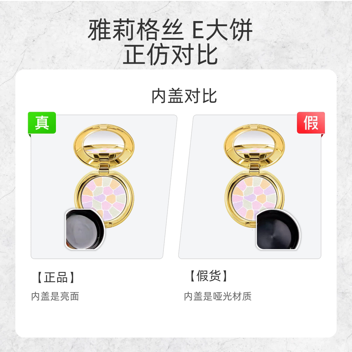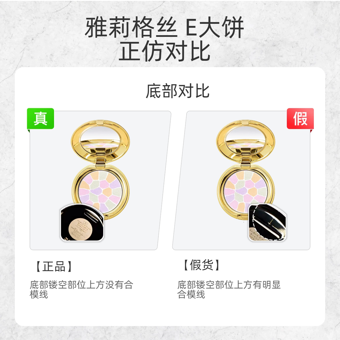 雅莉格丝这块贵妇级别的E大饼可谓假货泛滥,但细节真的藏不住!4个点教你快速区分👇 1️⃣ 隔层logo ✅ 正品:E上方的变音符是独立的,和字母不粘连 ❌ 假货:变音符直接粘在E上,印刷模糊 2️⃣ 内盖 ✅ 正品:内盖是亮面 ❌ 假货:内盖是哑光材质 3️⃣ 底部 ✅ 正品:底部镂空部位上方没有合模线 ❌ 假货:底部镂空部位上方有明显合模线 4️⃣粉质 ✅ 正品:色块之间衔接的白色线条较...