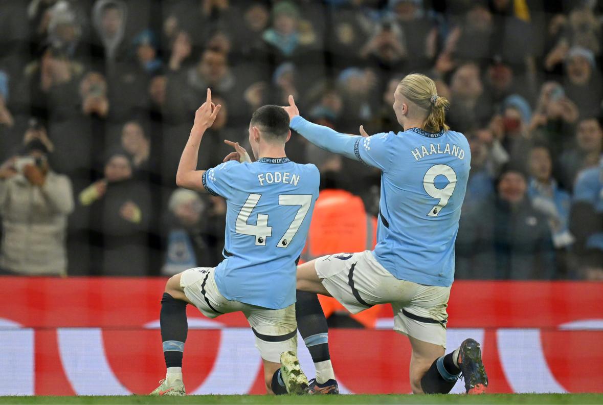 伊蒂哈德球场的绿茵之上,哈兰德成了曼城最锋利的进攻尖刀。身着天蓝战袍的他,射门时摆腿发力的瞬间尽显顶级射手的脚法,皮球破空的轨迹让对手防线无力招架;错失机会时盘腿坐地的遗憾神情,与进球后和福登并肩比心、和队友相拥庆祝的狂喜形成鲜明反差。天蓝战袍在赛场灯光下熠熠生辉,哈兰德用一个个进球,续写着“进球机器”的赛场传奇~#曼城 #哈兰德 #英超锋霸
