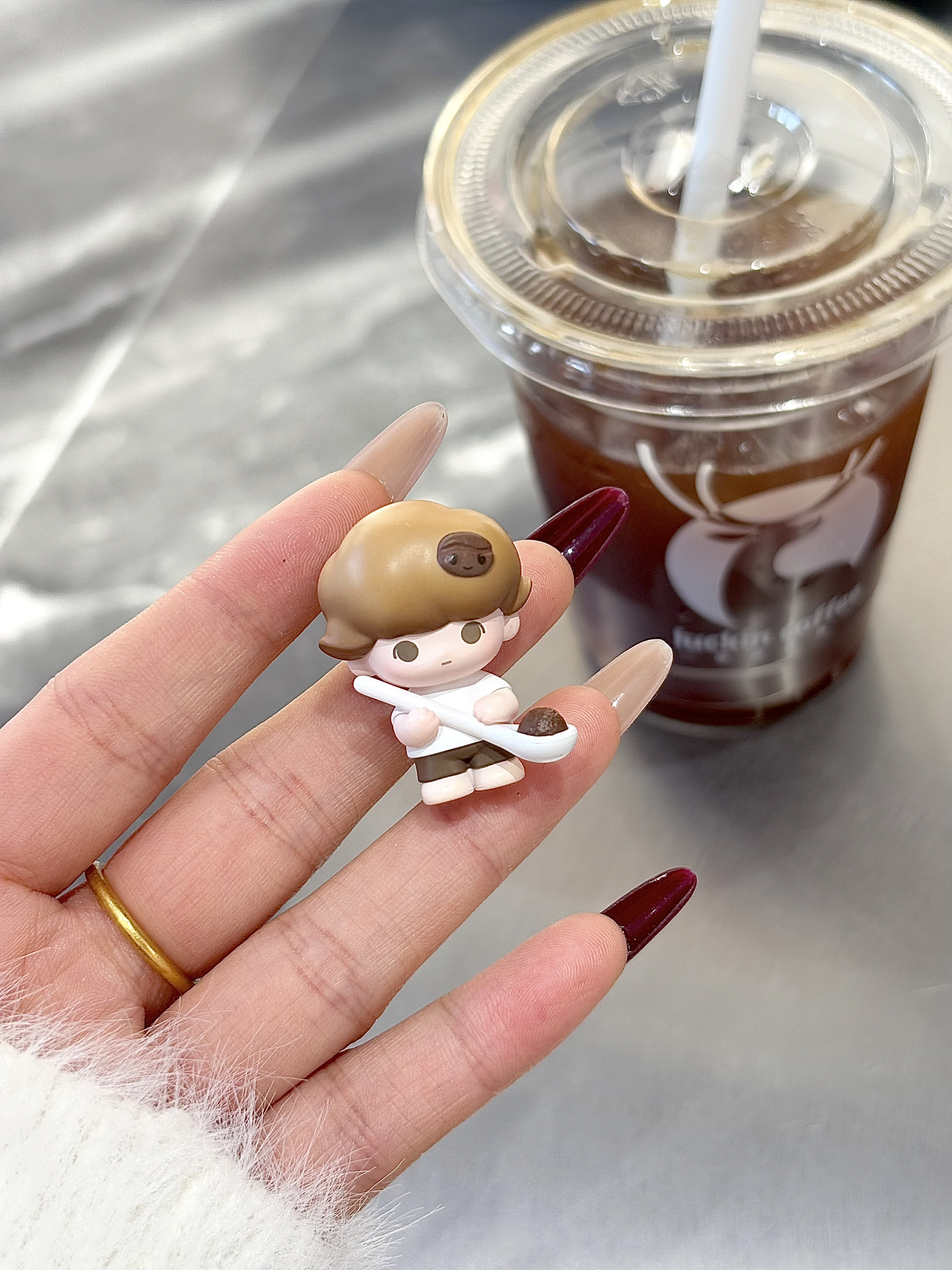 其实是泡泡玛特咖啡系列的萌粒 这次抽到的是举着勺子的dimoo