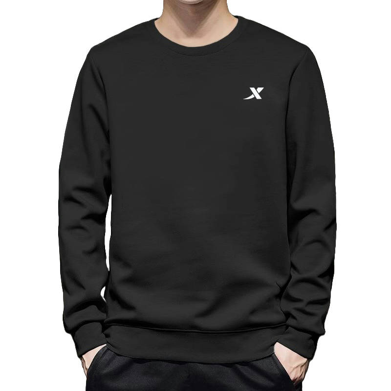 这款黑色圆领卫衣是基础款版型,面料柔软度适中,单穿不闷汗,初冬内搭在棉马甲里也不会显厚。