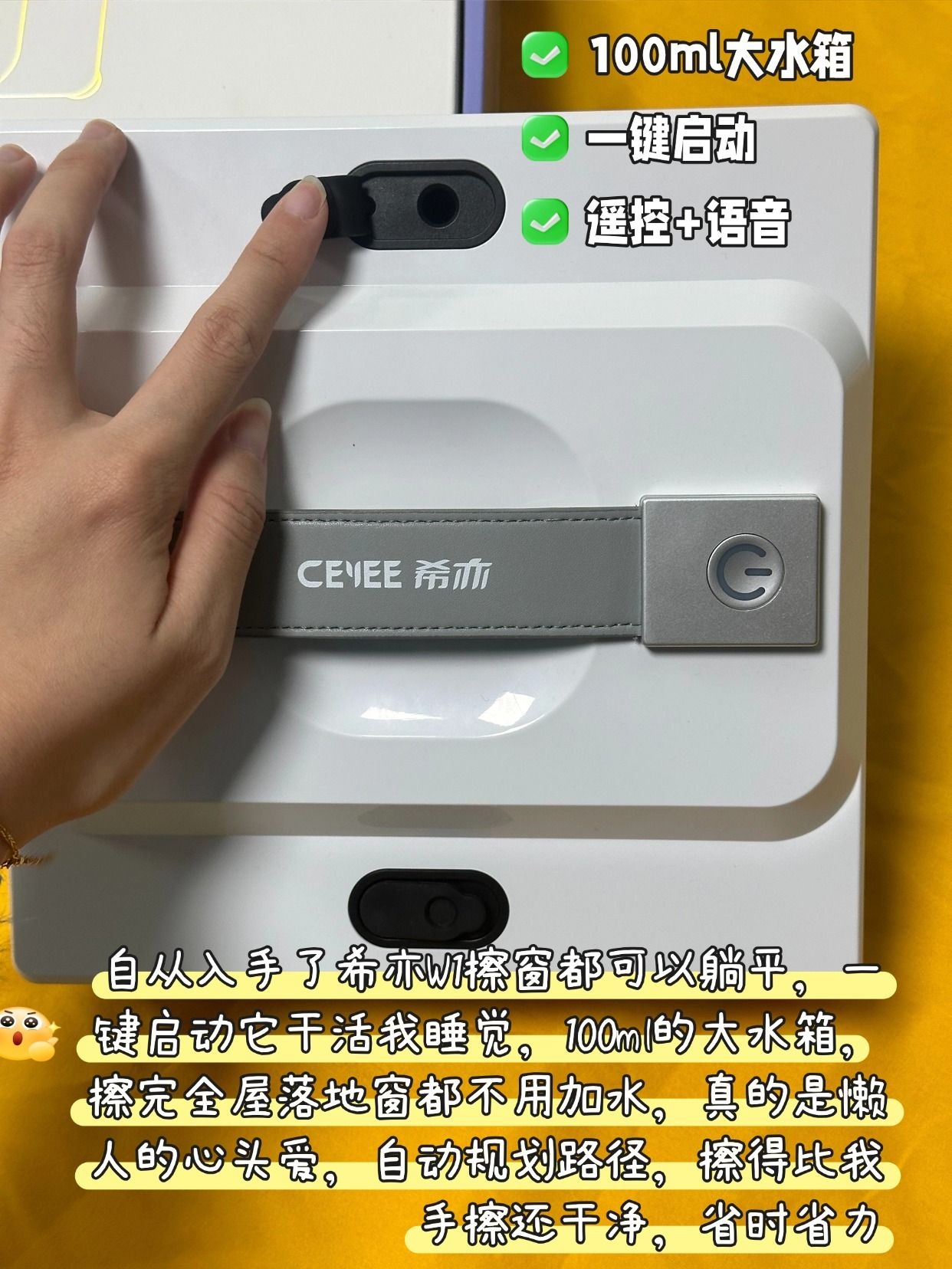 有没有姐妹跟我一样,住高层最烦的就是擦窗!站在窗边往外探身子,手心全是汗,就怕脚下一滑出事儿;自己蹲那擦一下午,胳膊酸到抬不起来,结果玻璃上全是水痕,越擦越脏! 年前请保洁又坐地起价,大扫除光擦窗就得花大几百,真的肉疼!直到我在网上入了希亦W1擦窗机器人,直接把我从擦窗苦海⾥捞出来了!才799块,性价比直接拉满,用一次就封神! 安全感这块直接焊死!2500Pa大吸力牢牢吸在玻璃上,就算断电也能...