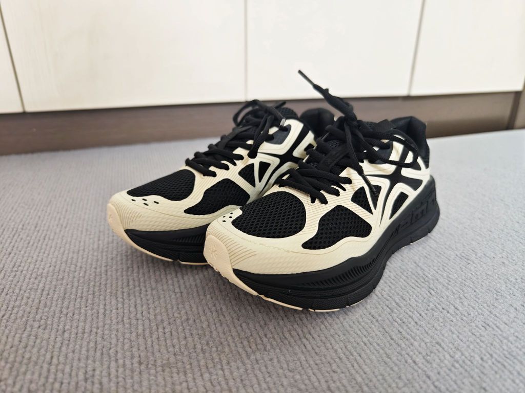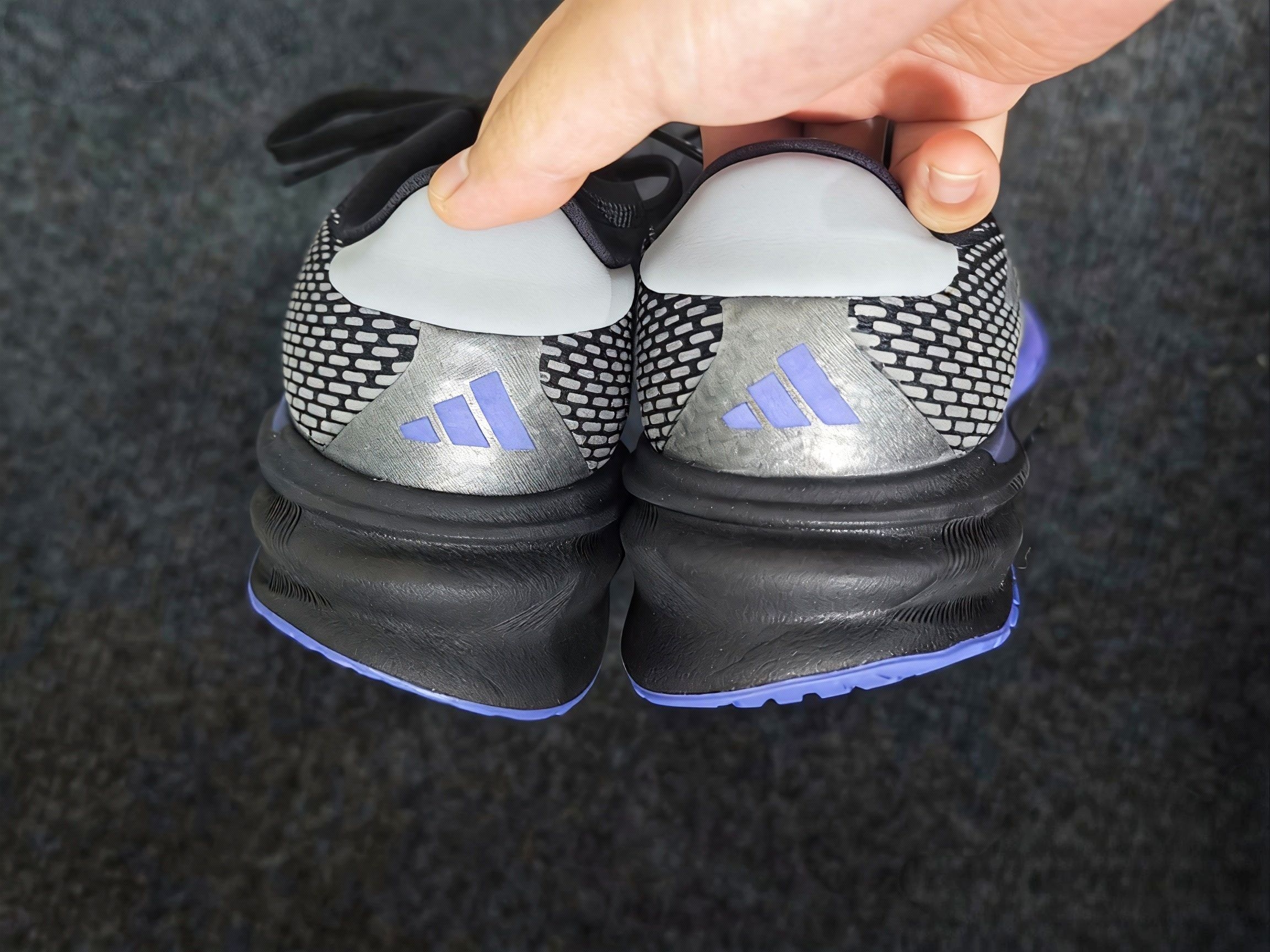 外观上采用蓝紫和黑色相互衬托,鞋码偏小点,建议选大点的,穿上感觉很舒服😚 对于跑步不会用脚足外翻的,有一个正确步态引导的鞋型也是很对胃口🤩 这个设计稍微借点力力线就正了,图七能看这鞋设计的巧😻